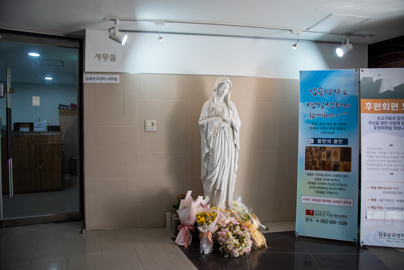 성당부터 들어가 뒷편 후문 주차장쪽으로 나오는 바람에 우측에 있는 성모상을 스치고 말았다.