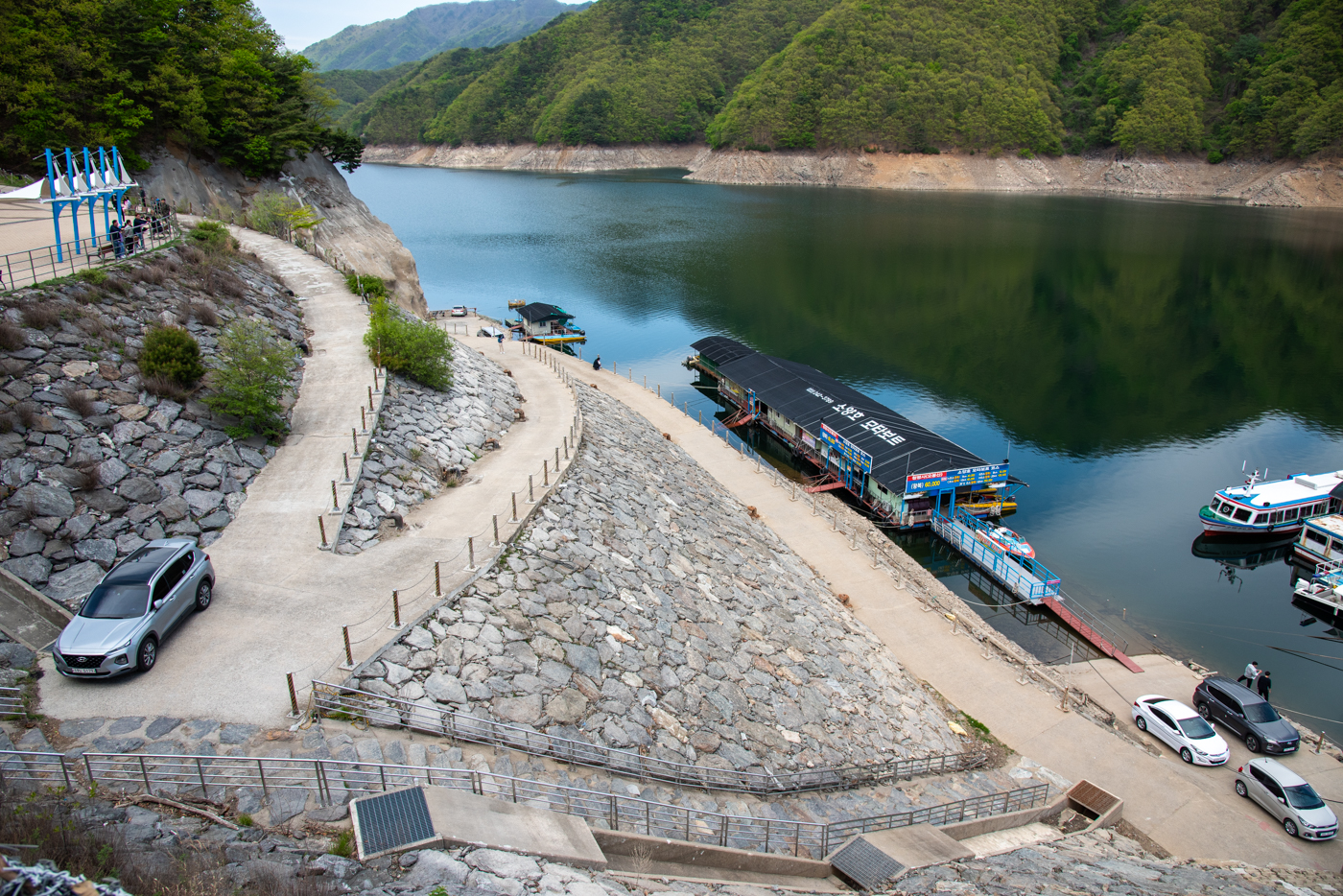 소양강댐까지 걸어내려오는 거리는 채 1km가 안된다. 주차장은 모두 무료다.