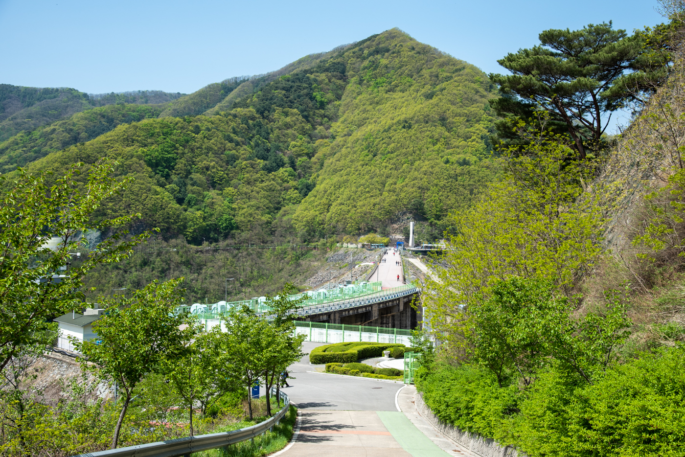 댐을 통과해 팔각정전망대를 올라가는 길이다.