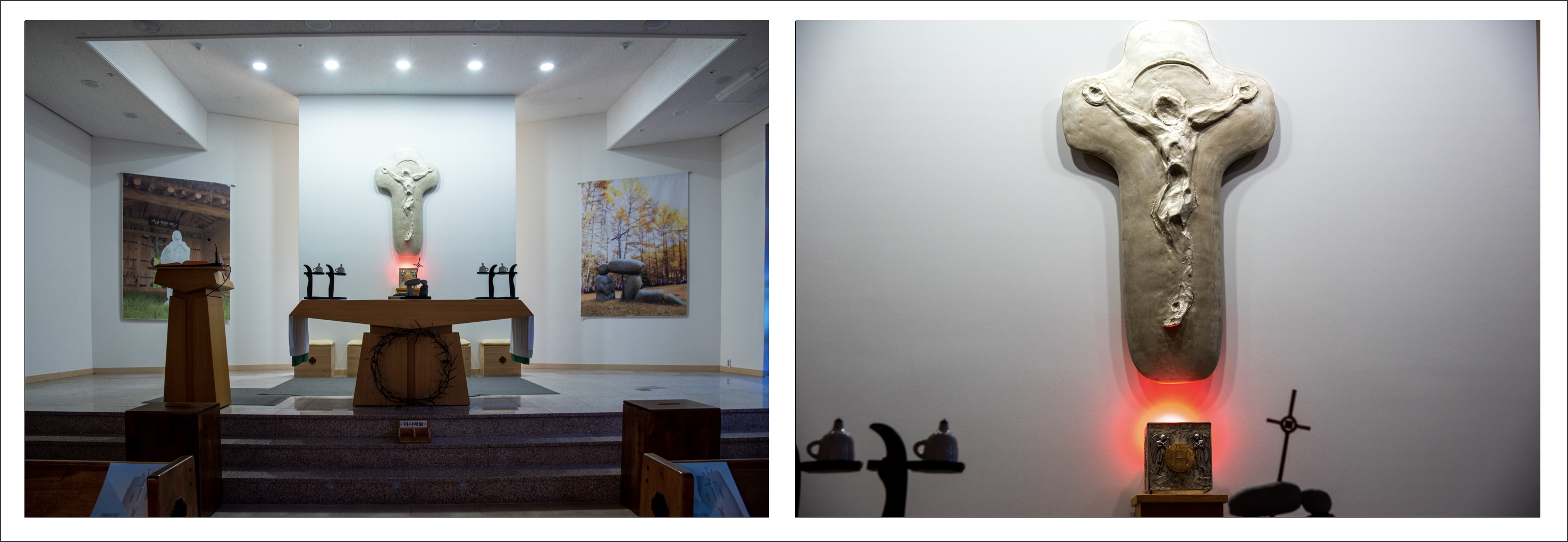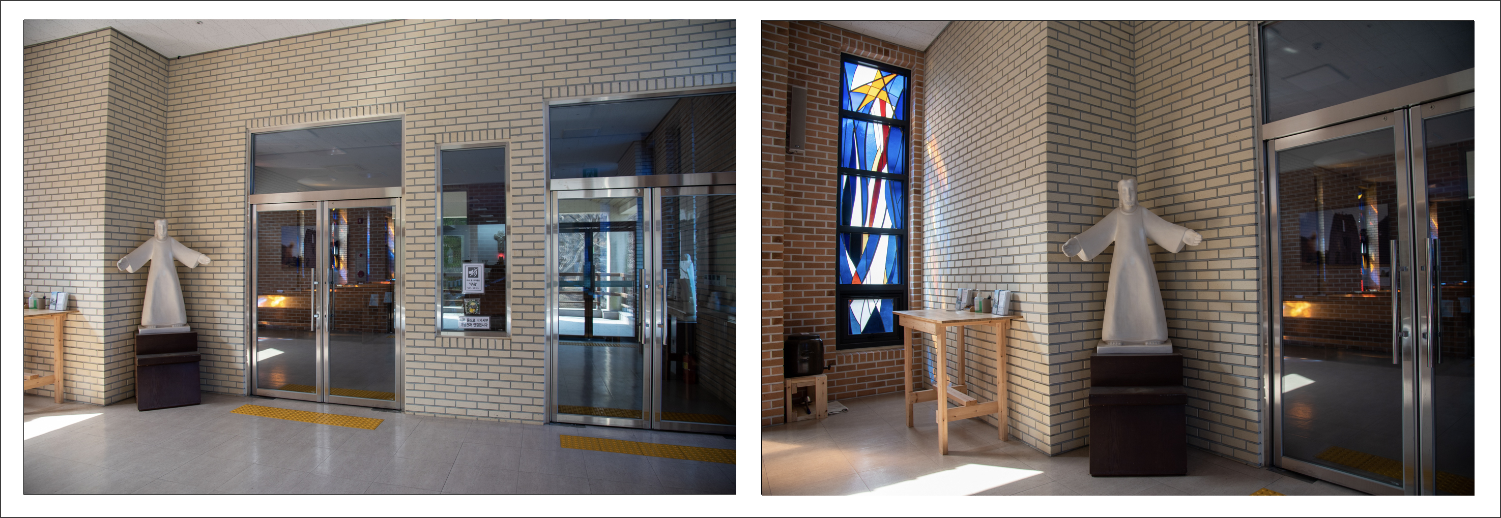 왼편의 조형물은 고 장동호 프란치스코 작가의 유작 '예수'라고 하는데