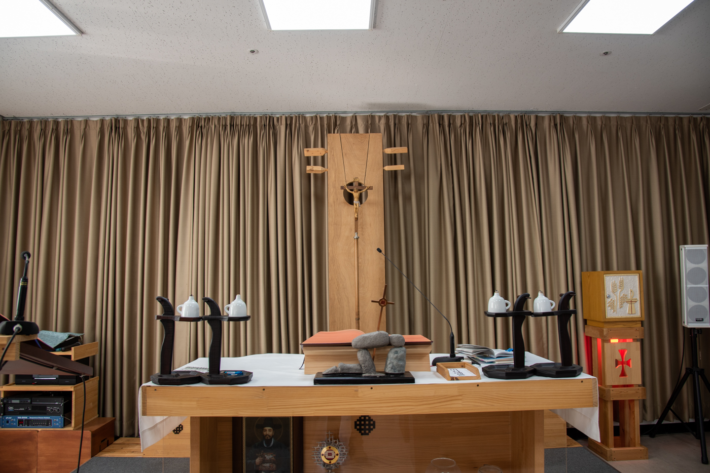 미사봉헌 장소 : 주일미사,대규모(성당), 평일미사,소규모(기념관)이다.