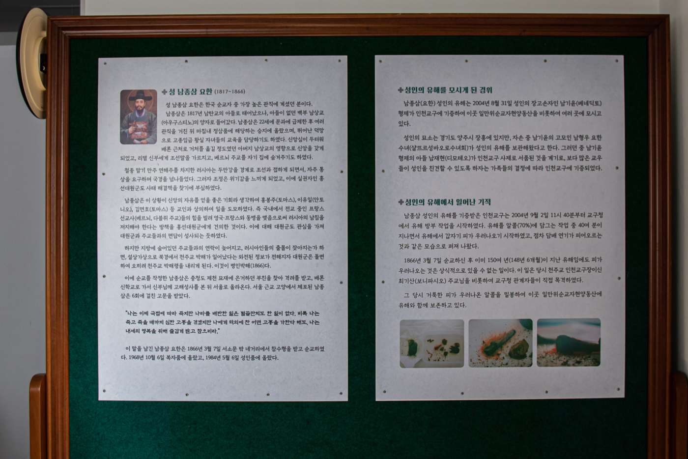 성전 안에 있는 좌측 문을 통하면 성 남종삼요한 기념관과 접한다.