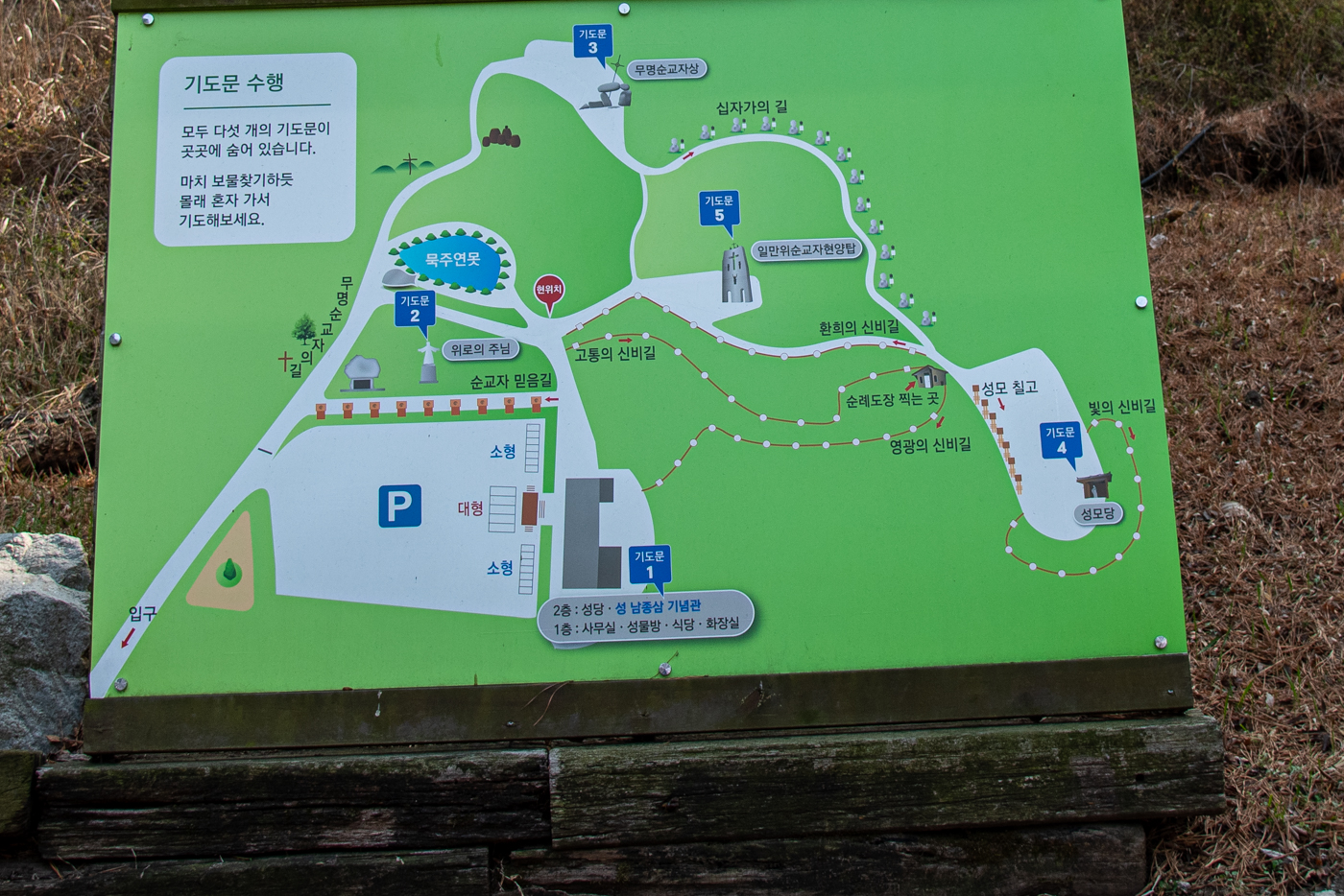 성당에서 나와 좌측에 있는 '순교자믿음길'부터 시작하여 시계방향으로