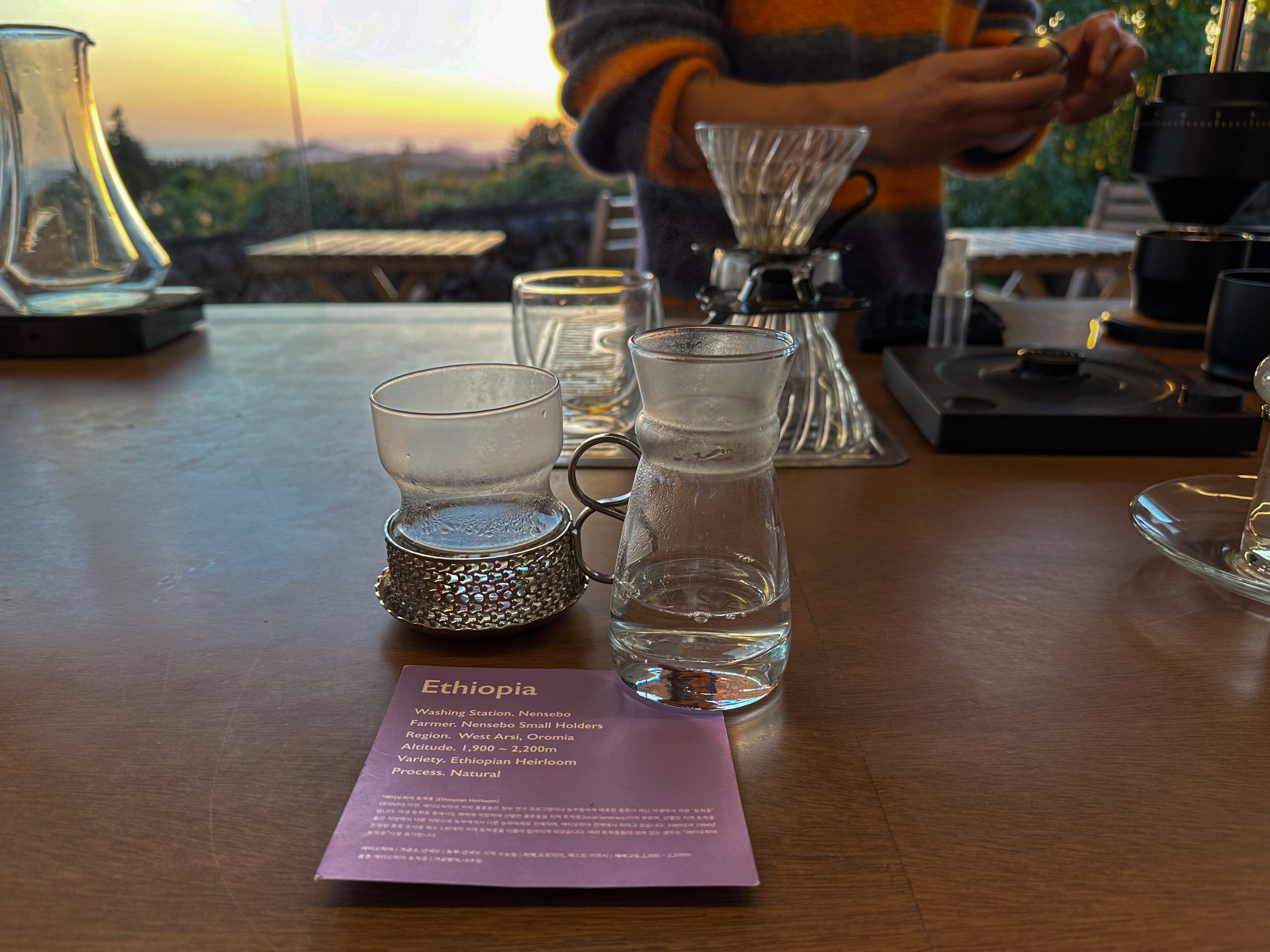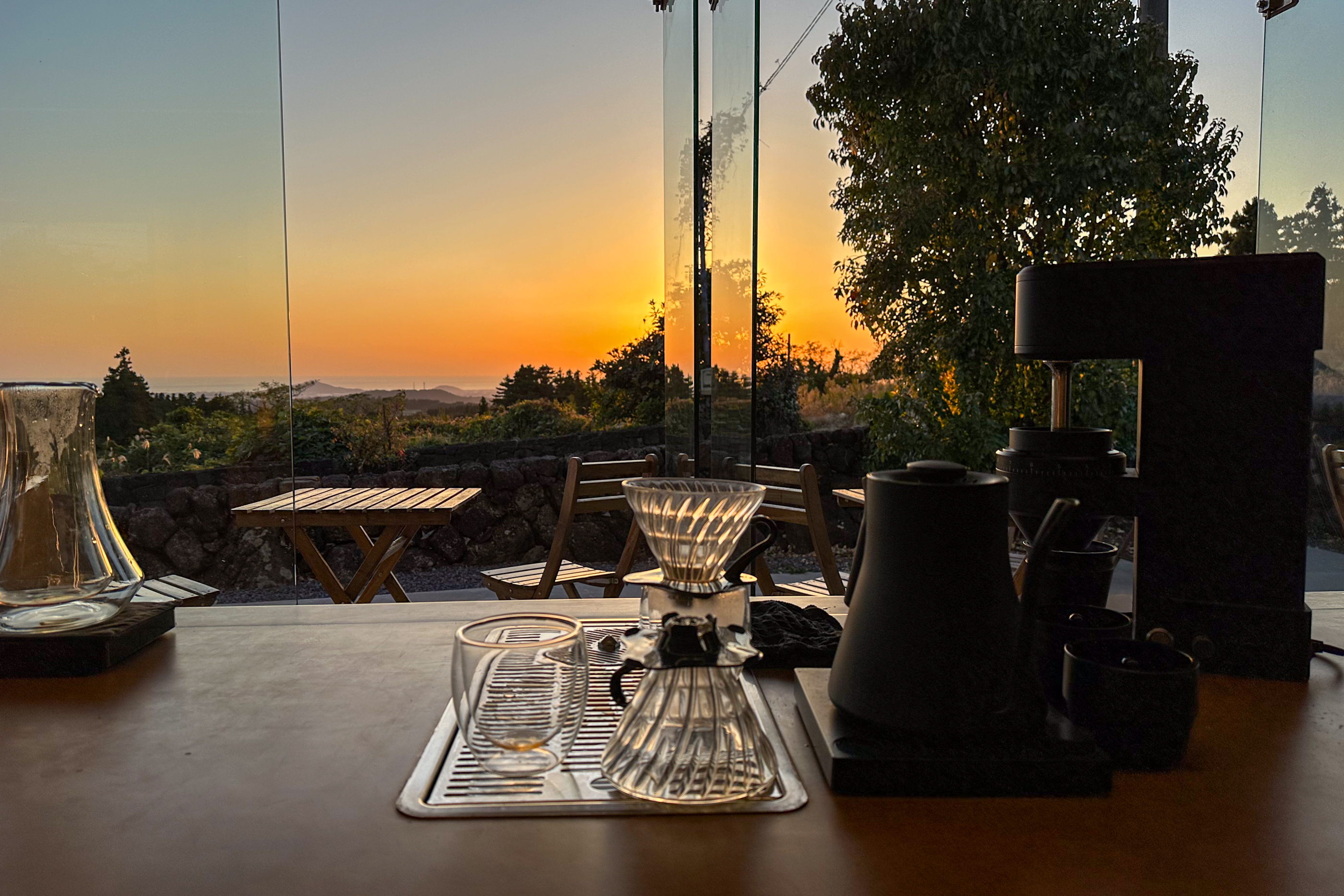일자형 테이블을 마주하고 내가 주문한 커피를 직접 브루잉(Brewing)하는