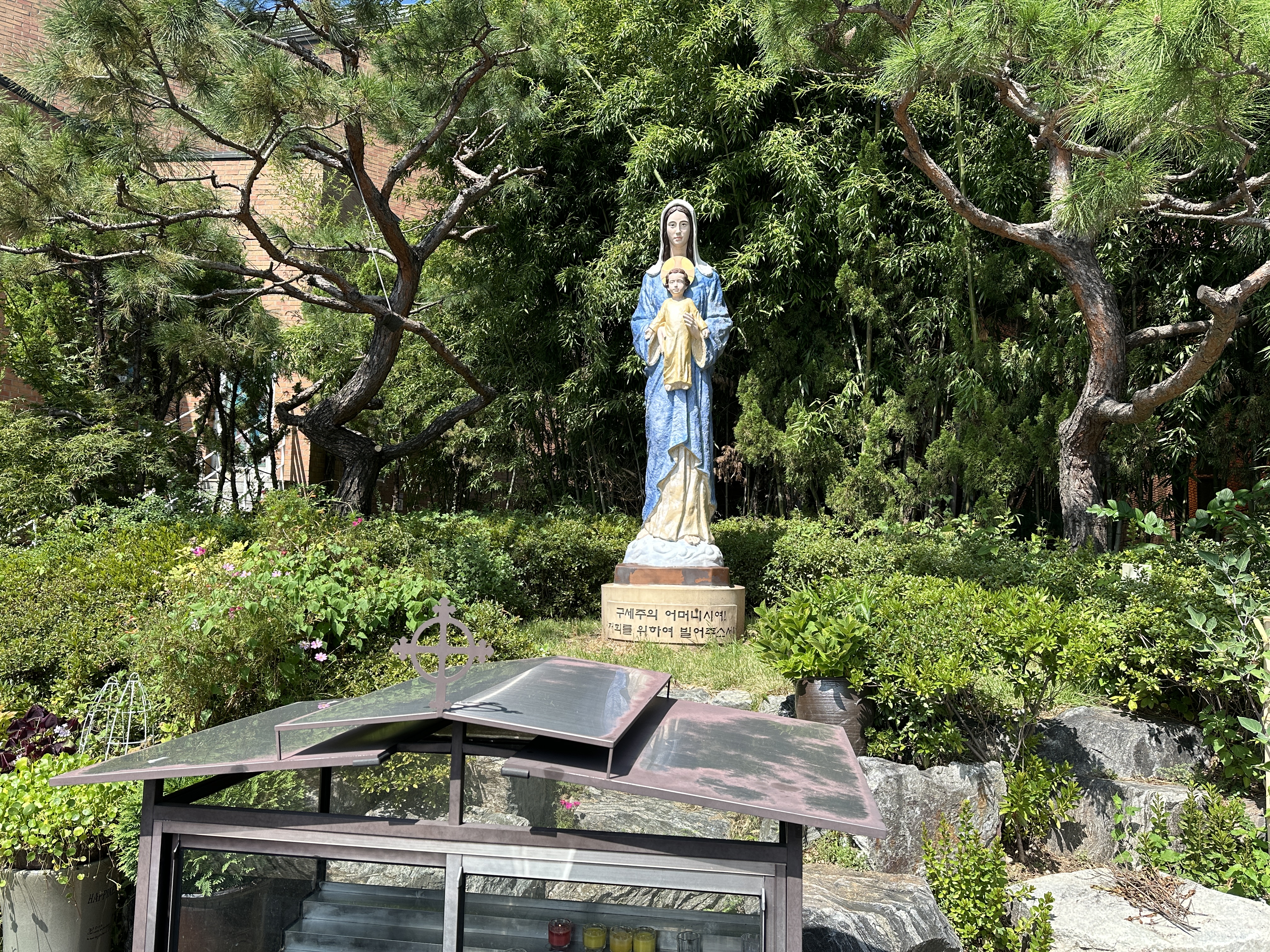한가위 미사를 드린 병점성당 성모자상과 미사