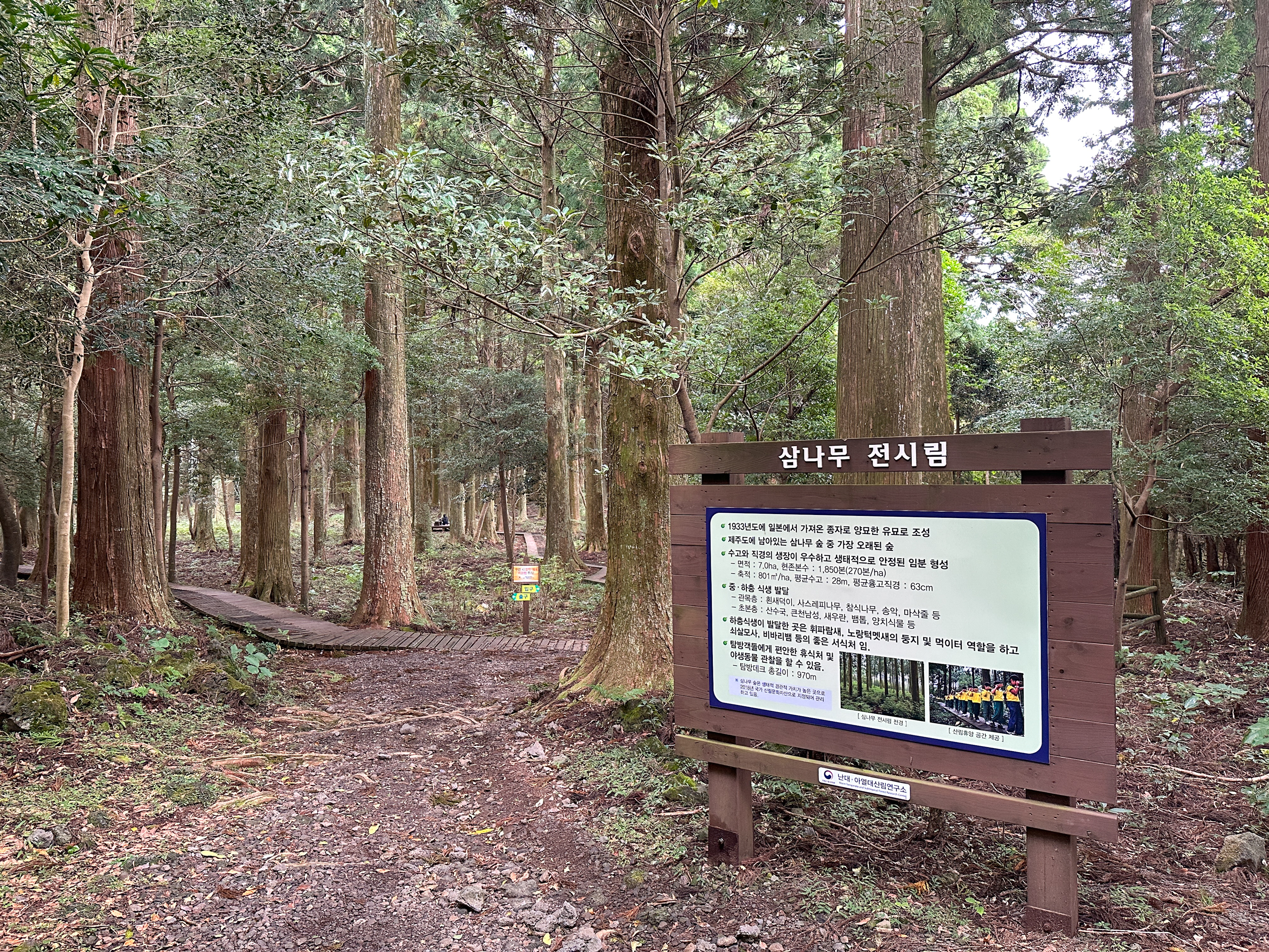 삼나무전시림은 1933년도에 일본에서 가져온 종자로 양묘한 유모로 조성되어 있는데