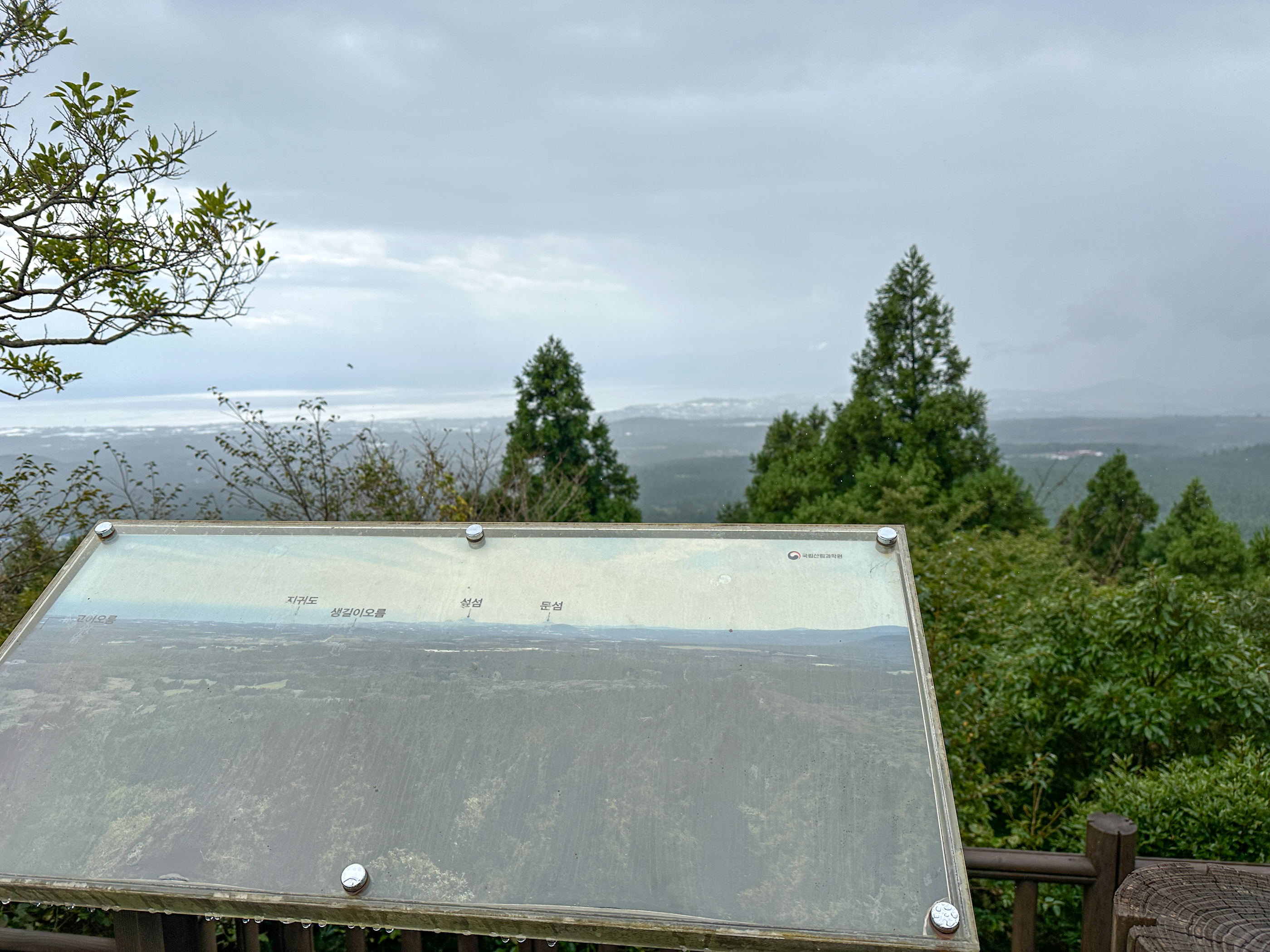 '사려니오름' 정상이다. 비가 내리고 있어 시야는 흐렸다.