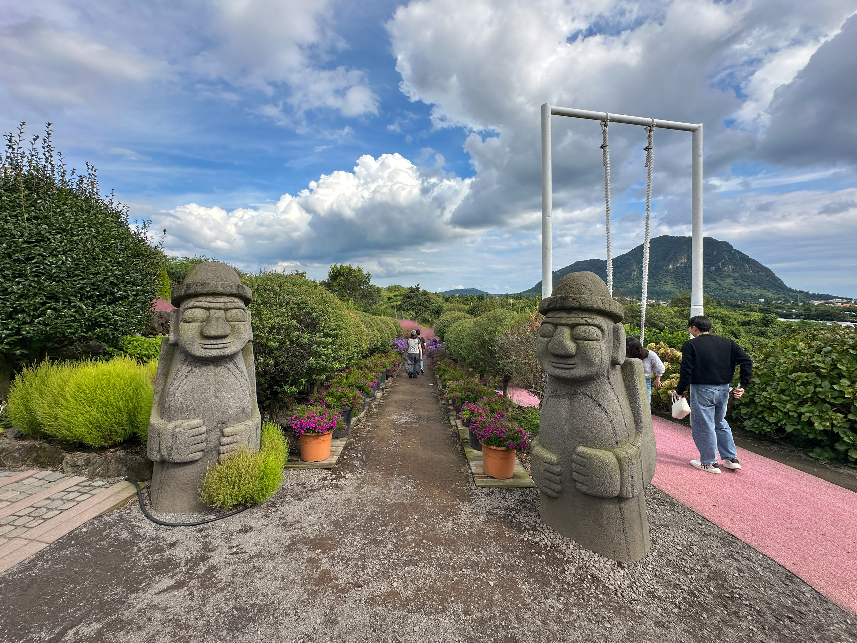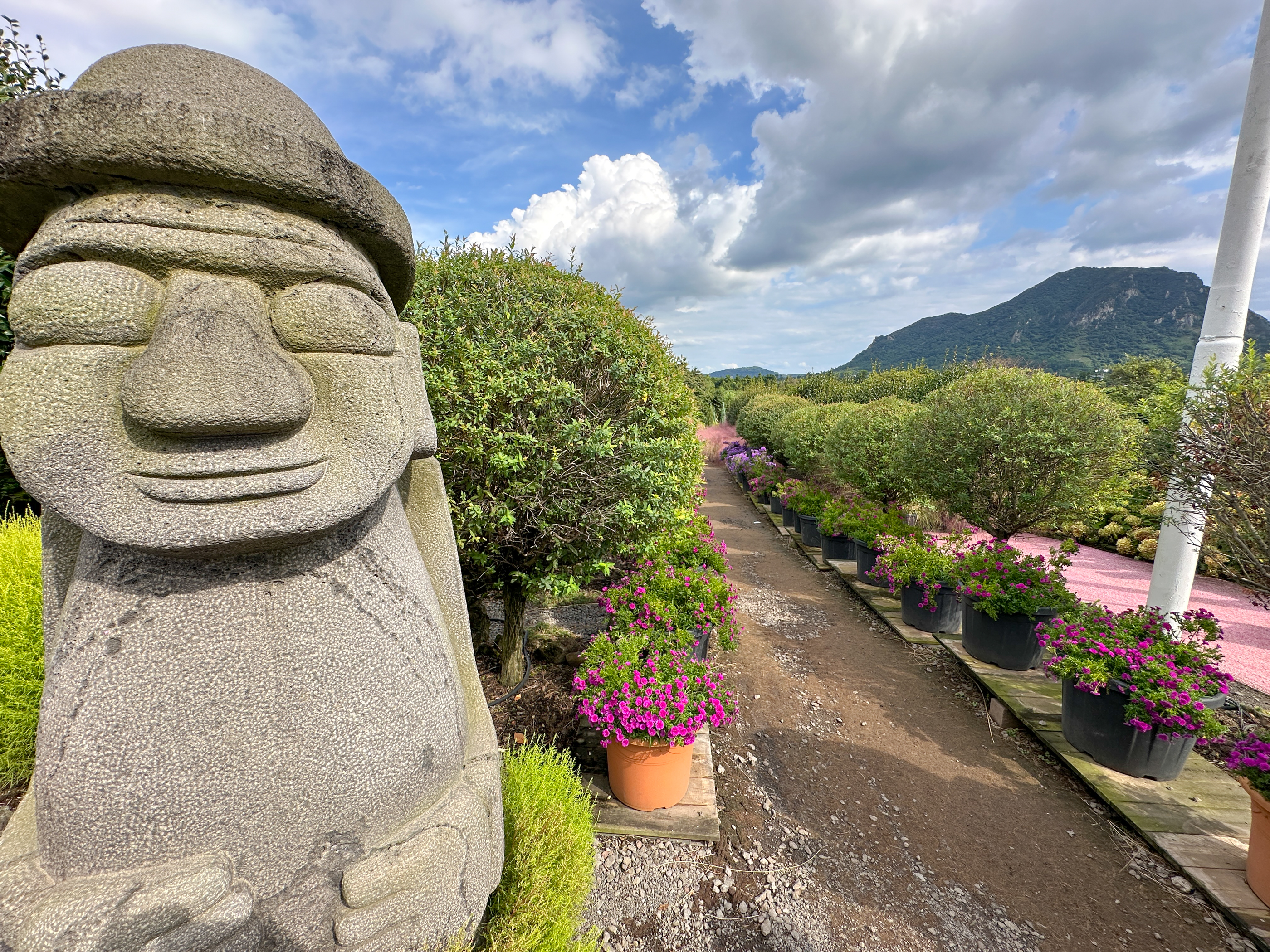'산방산'은 이 지역의 랜드마크다. 정원과도 잘 어울린다.