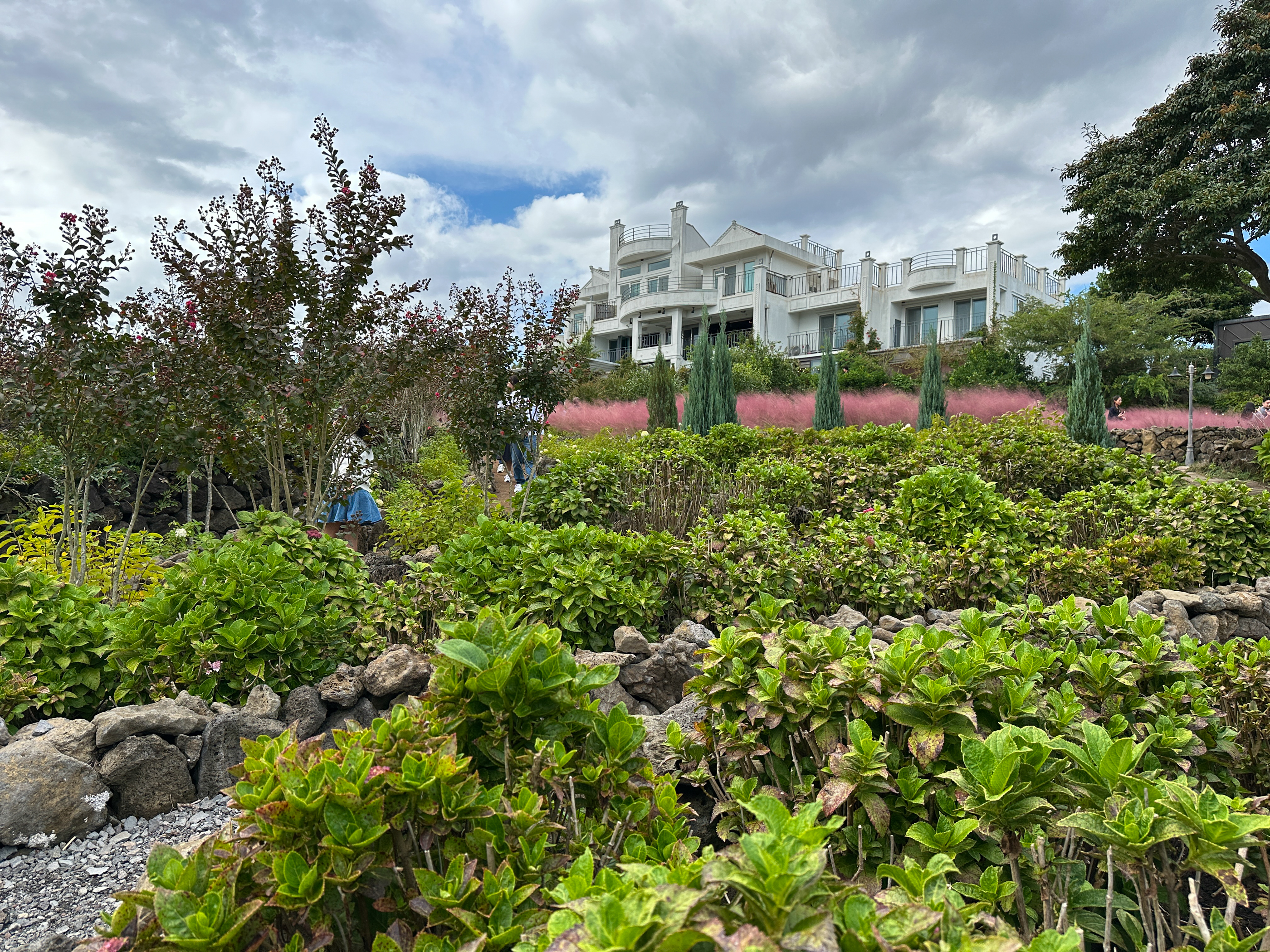 바다가 보이는 산방산배경 2천여평 정원 7000여본에 유럽수국과 장미 그리고 동백으로 꾸며진