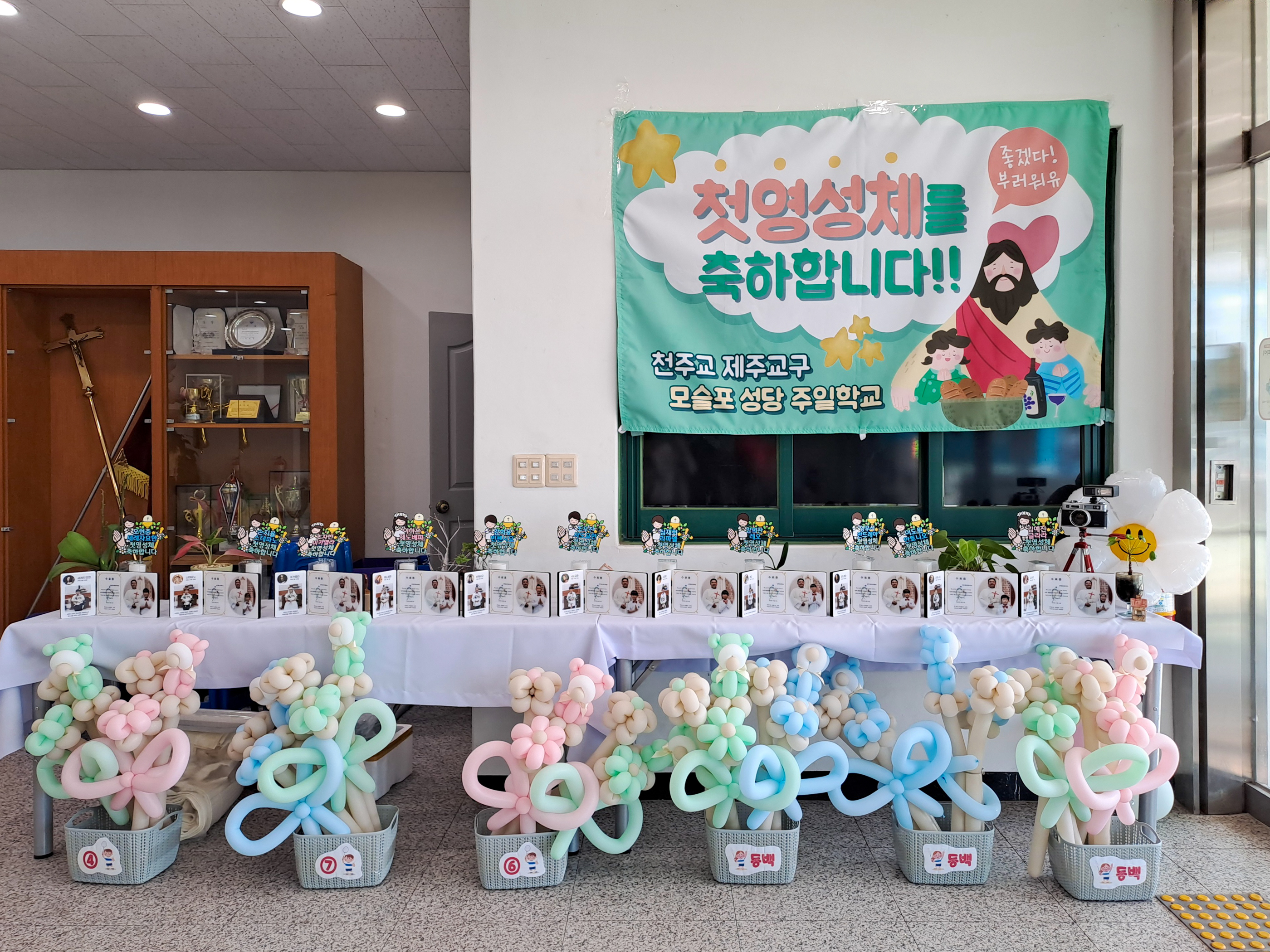 미사중 11명의 어린이가 첫영성체를 한다.