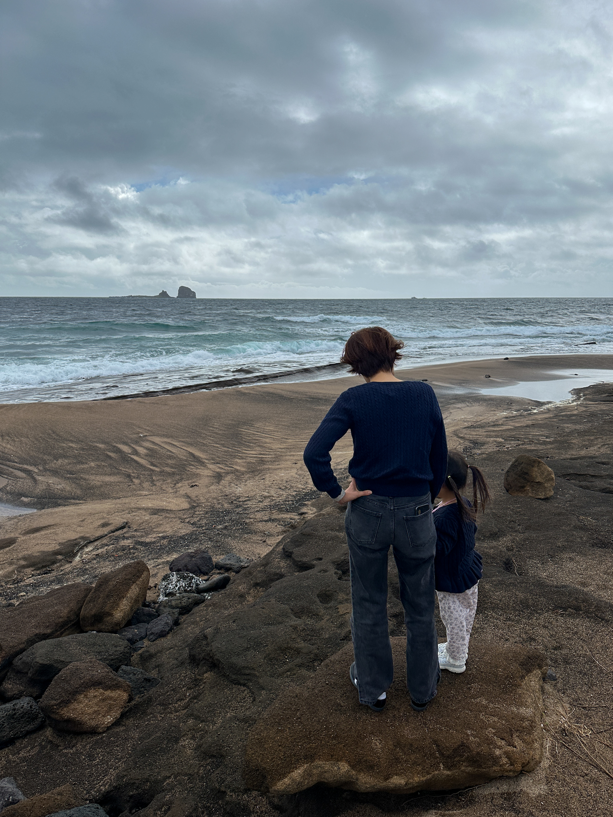 오후엔 채이에게 보여주려고 돌고래가 나오는 해안가를 나갔지만 파도가 거세서 인 지 보지는 못했다.