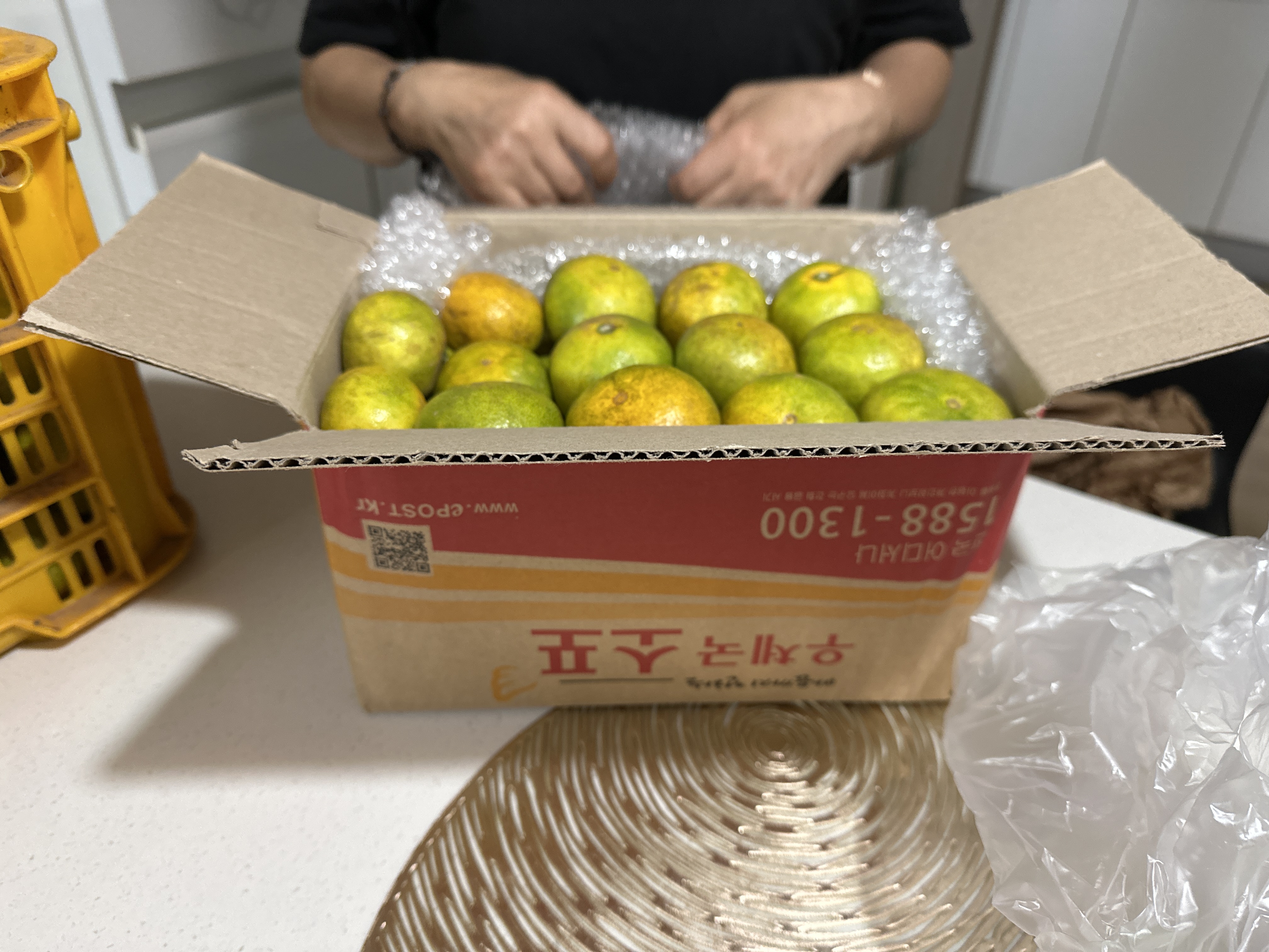 2, 평협 총무님께 집사람이 귤 구매 문의를 드렸었는데 판매용이 아니고 유기농으로 키워 가족,지인과 나누어 먹는다며, 맛있다고 하니 기분 좋다고 1박스를 그냥 드시라고 주신다. 극조생 품종인데 다음 주면 끝난다 한다. 너무 많아서 큰 딸에게 택배로 좀 보내야겠다.