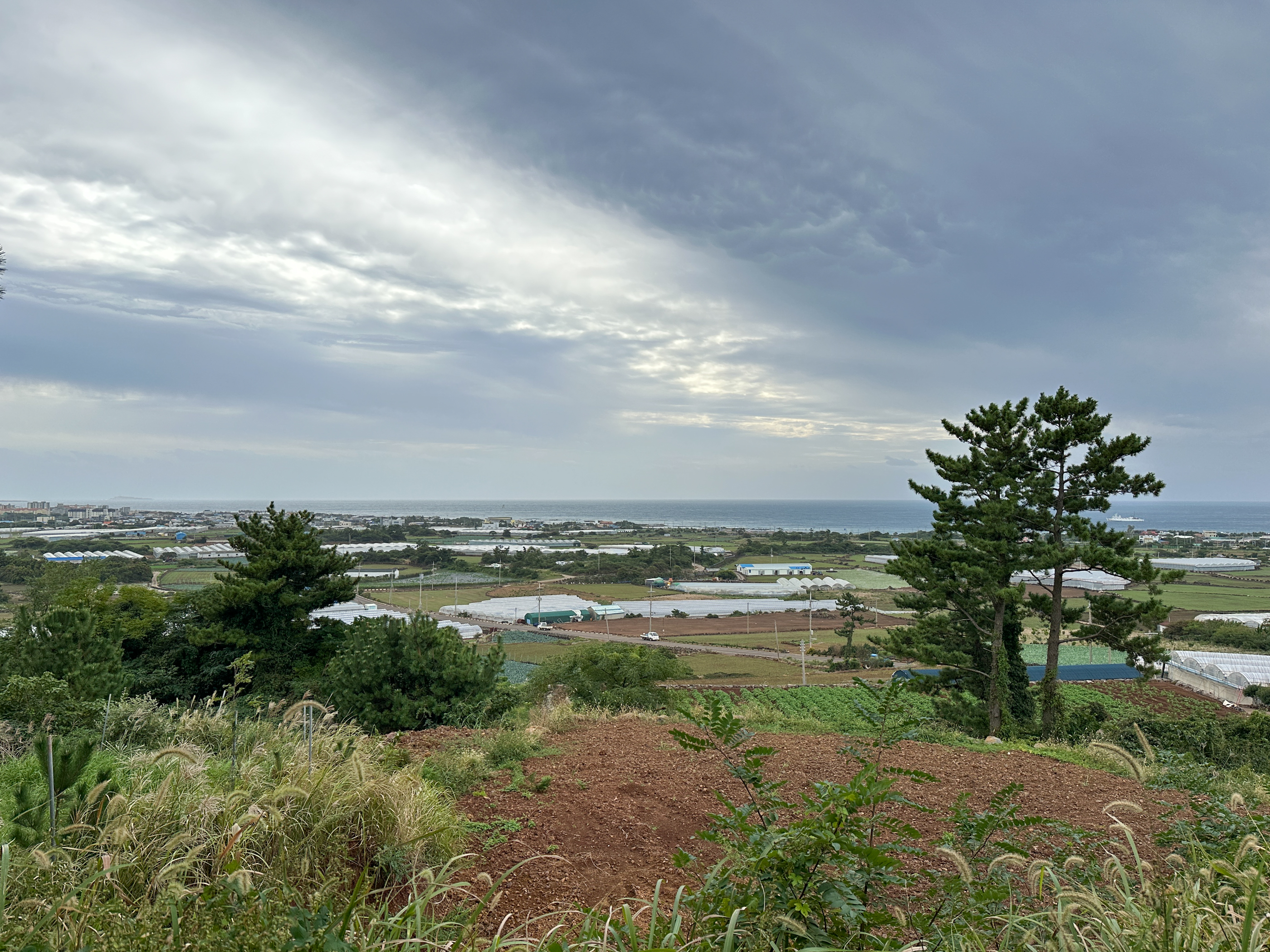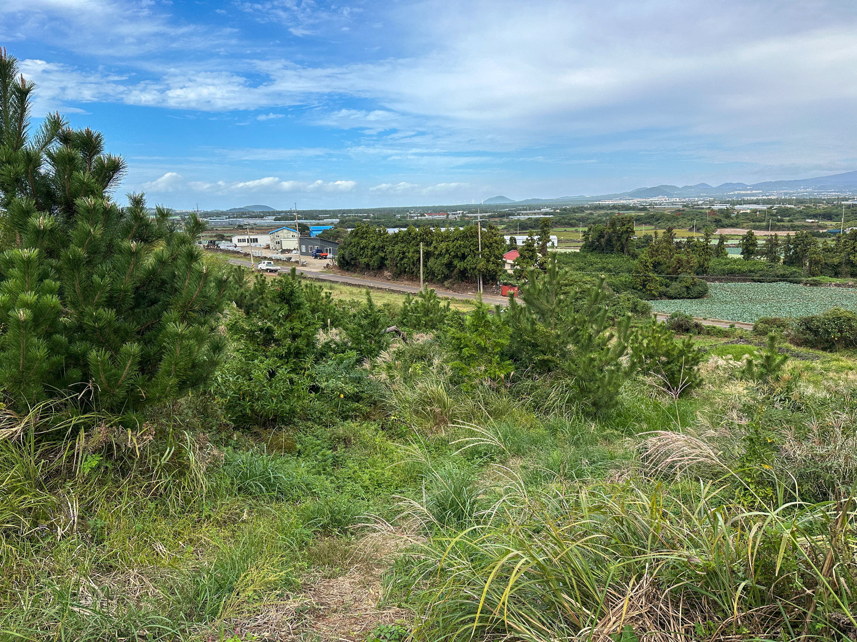 올라가면서 대정읍내쪽 해안과 모슬봉이 보인다.