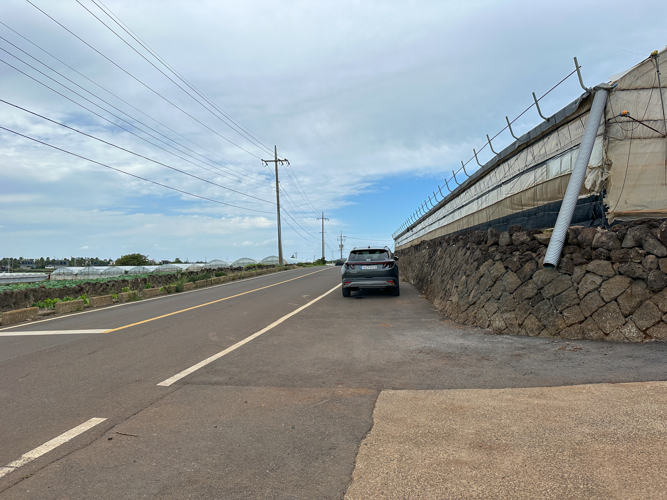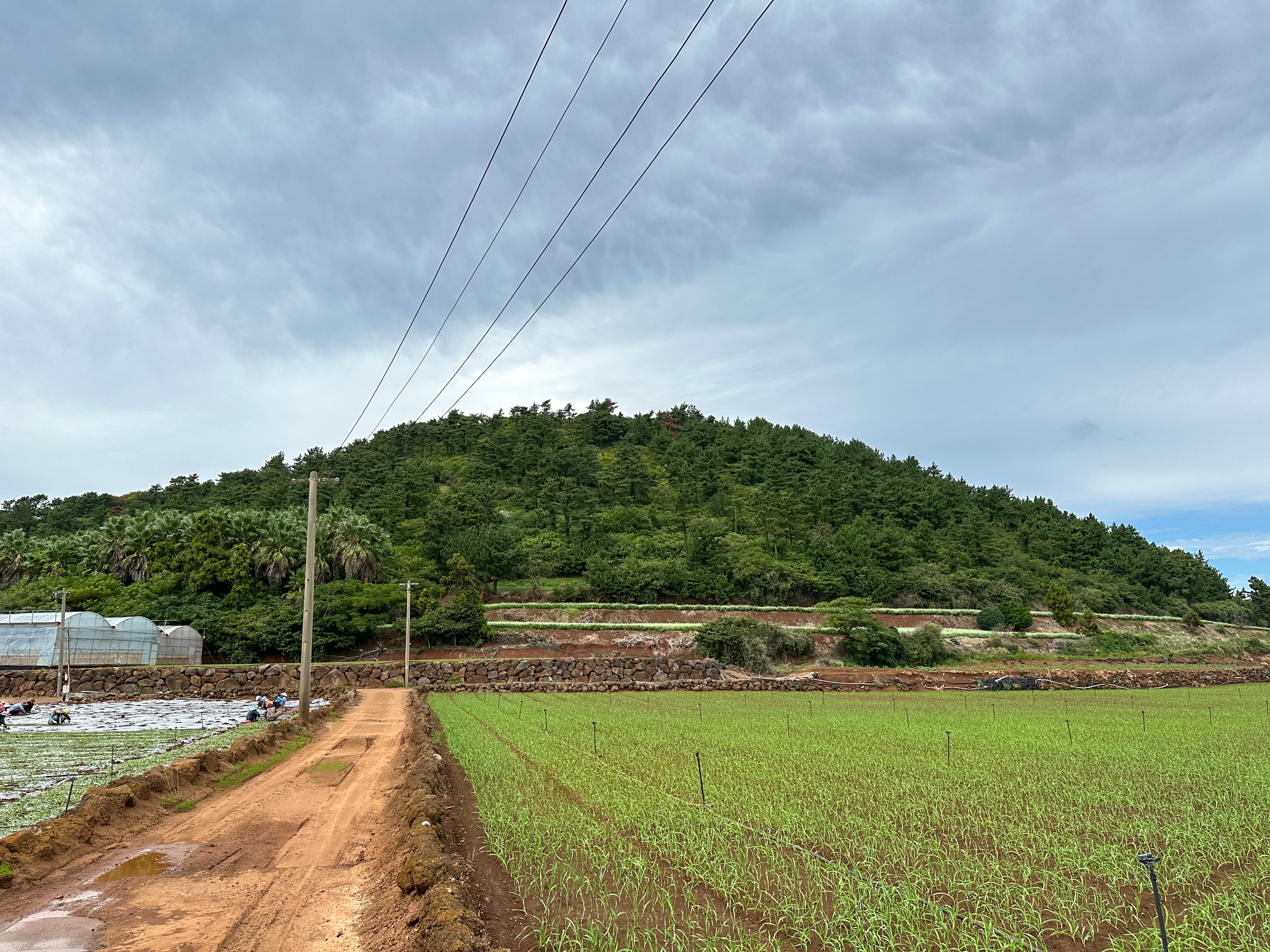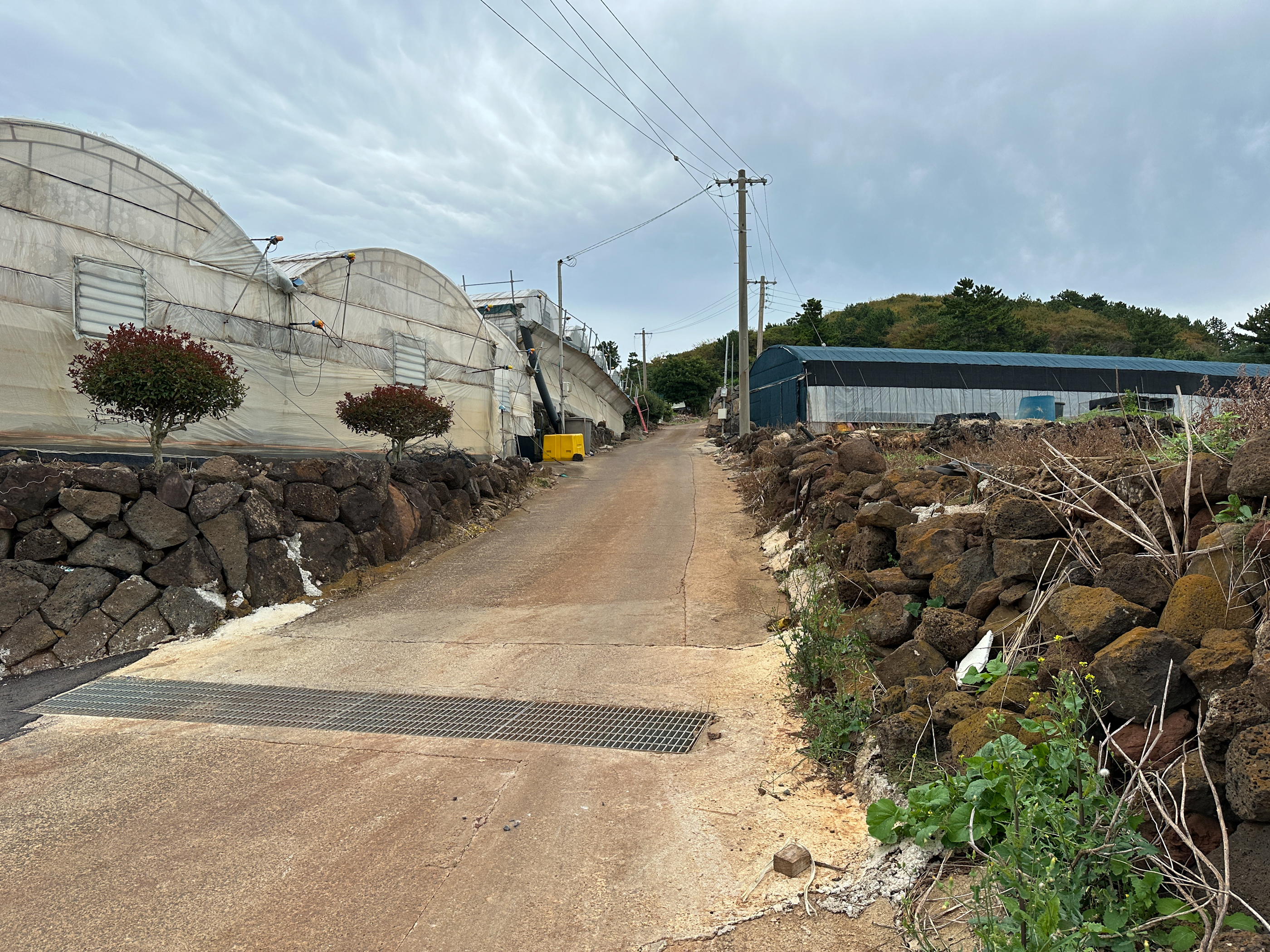 오름을 올라가는 초입의 비닐하우스