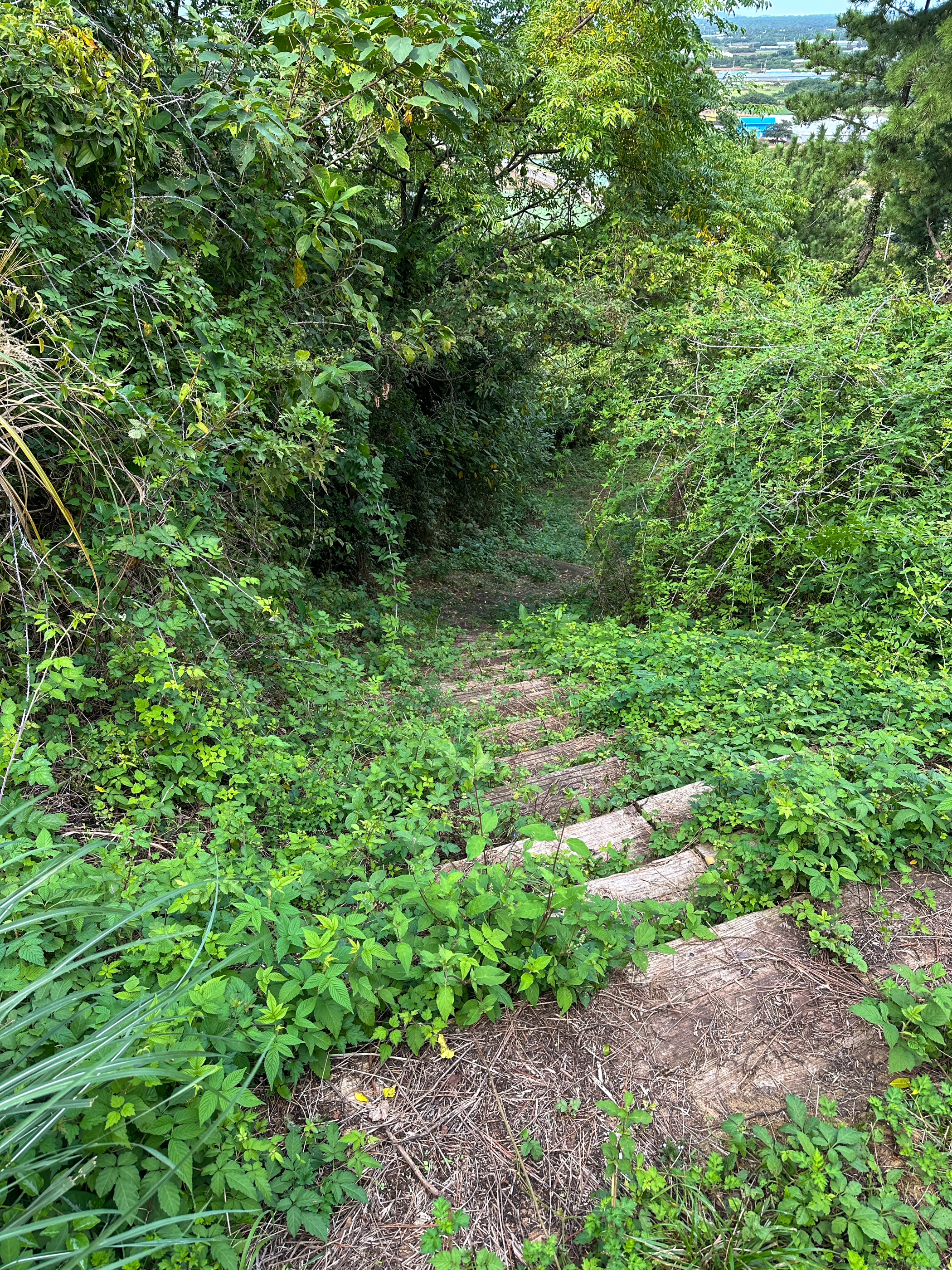 정상을 한바퀴 돌고 올라온 길(임도)와 다른 길(숲 계단길)로 내려가 봤다.