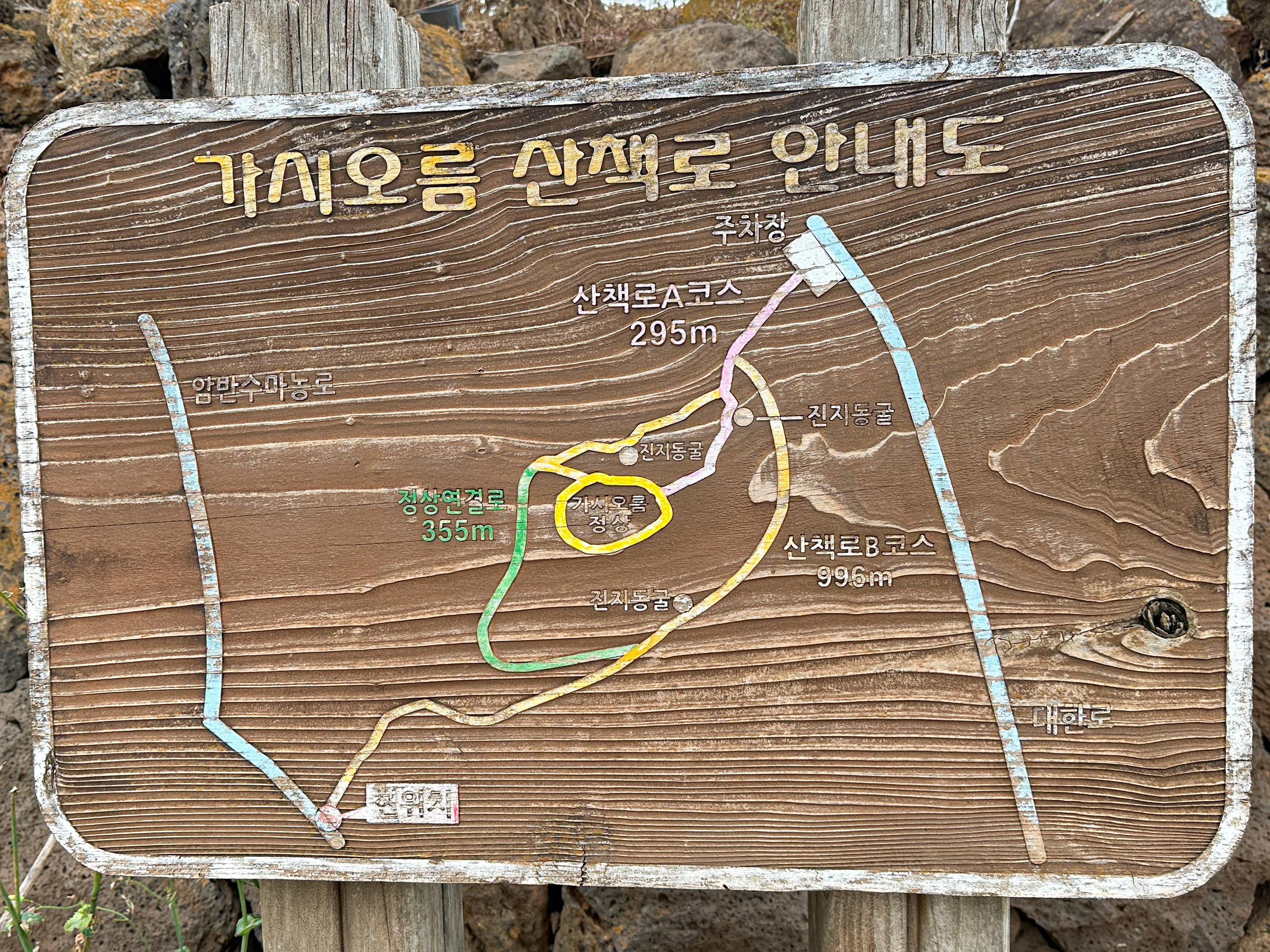 안내판에는 A,B코스로 거리도 표시되어 있긴한데 설명할 수 있을 만큼 이해를 못하겠다. 내가 걸었던 코스를 안내판에 표시했다.(파란색)