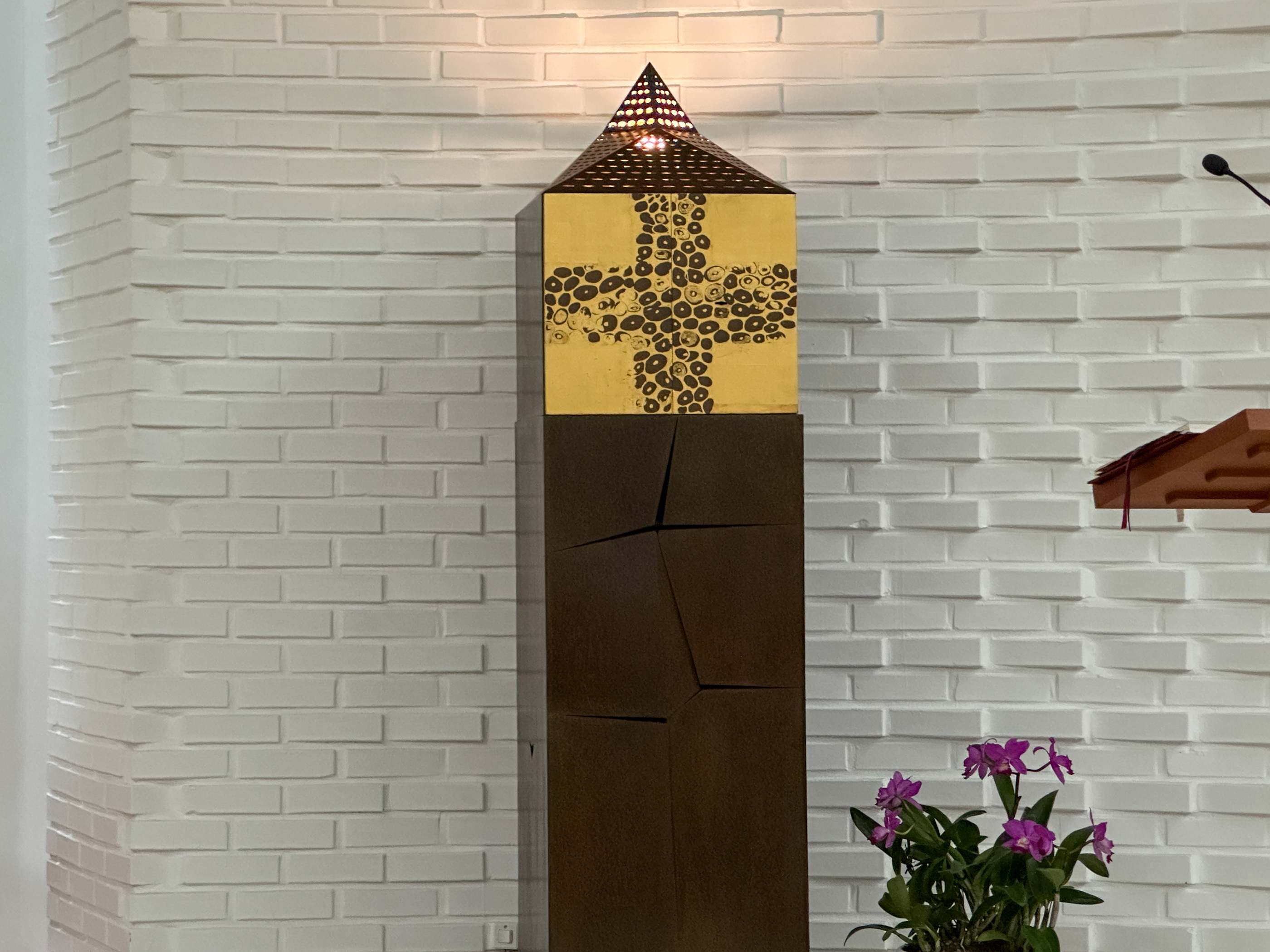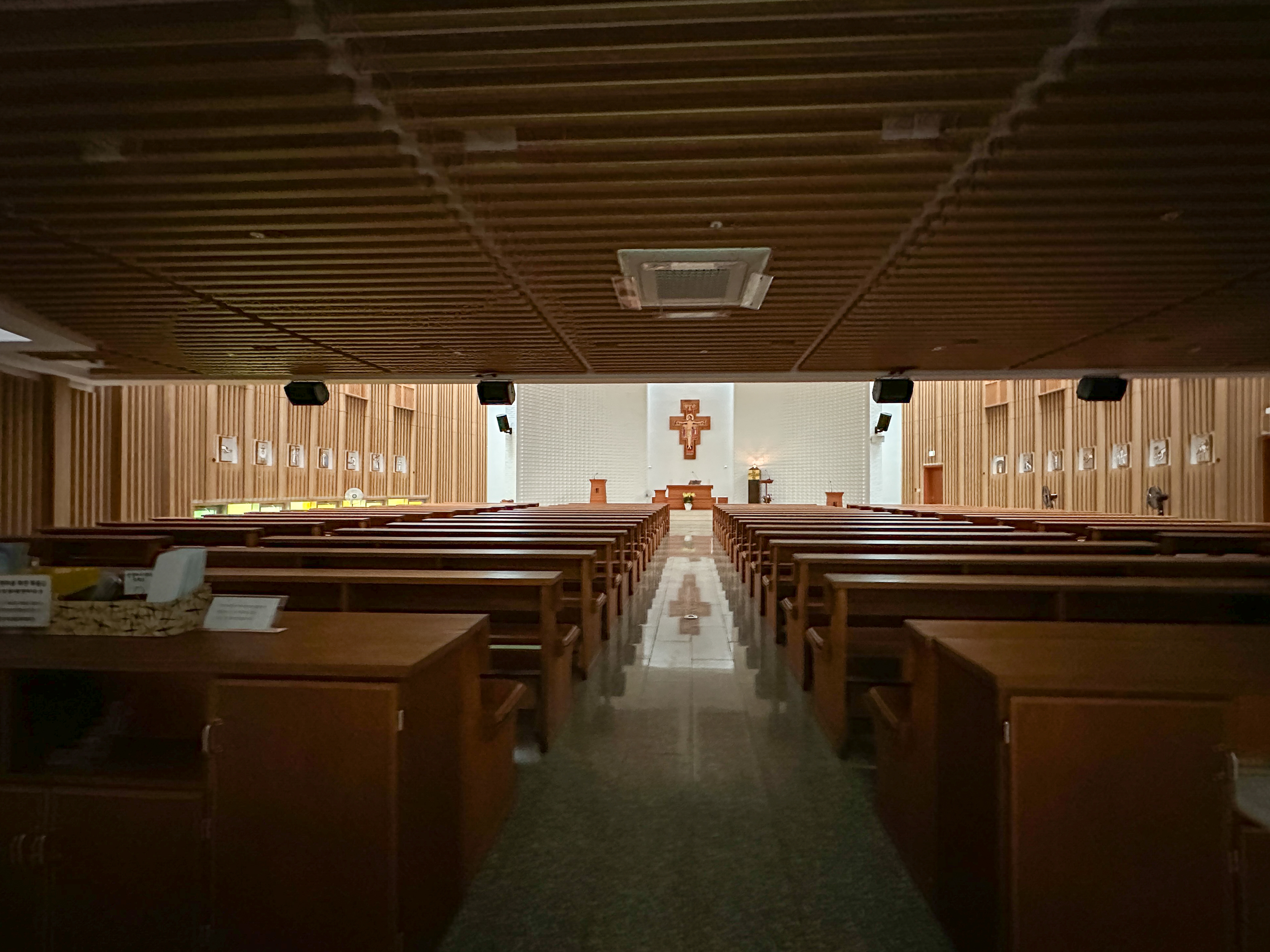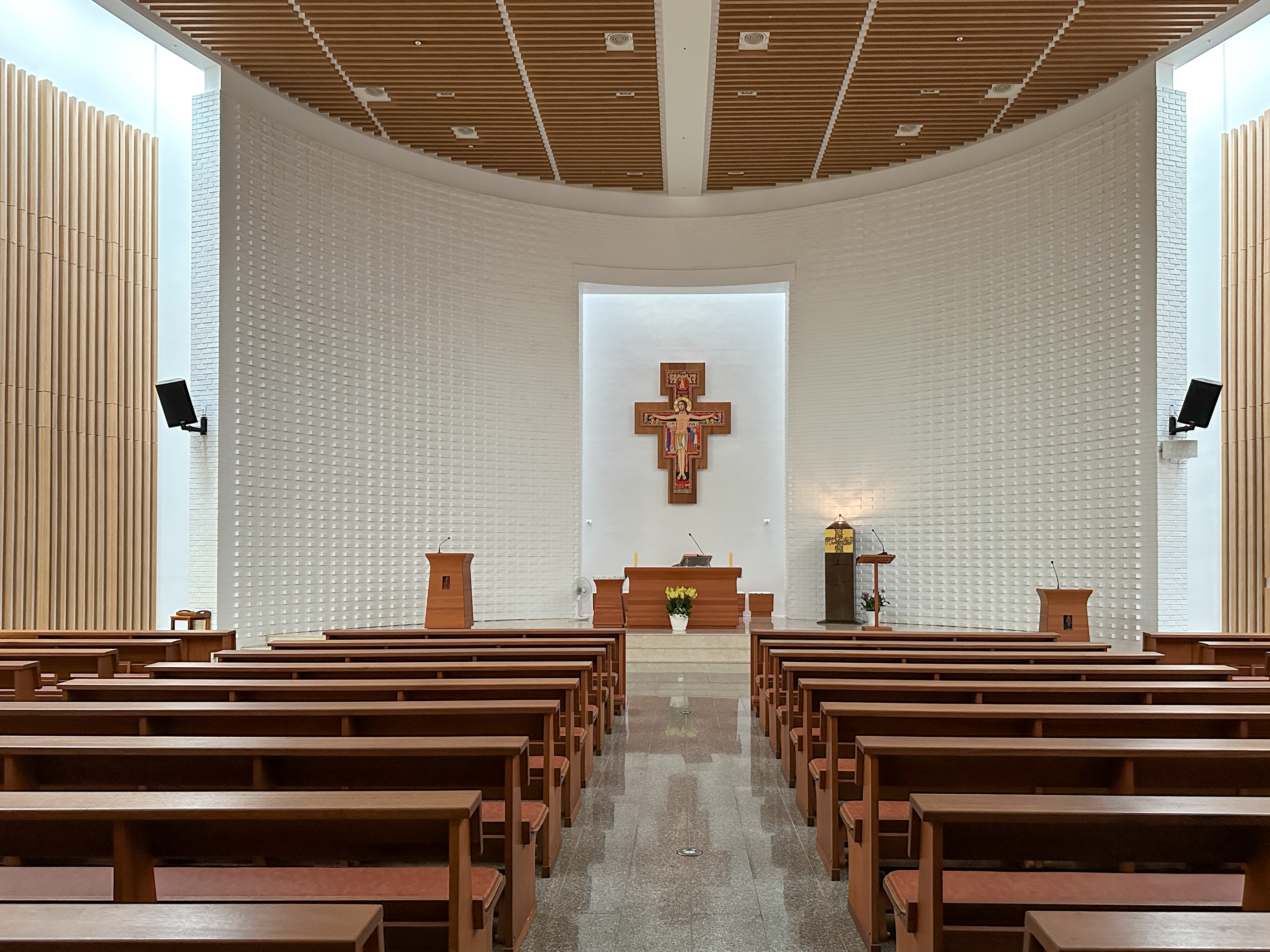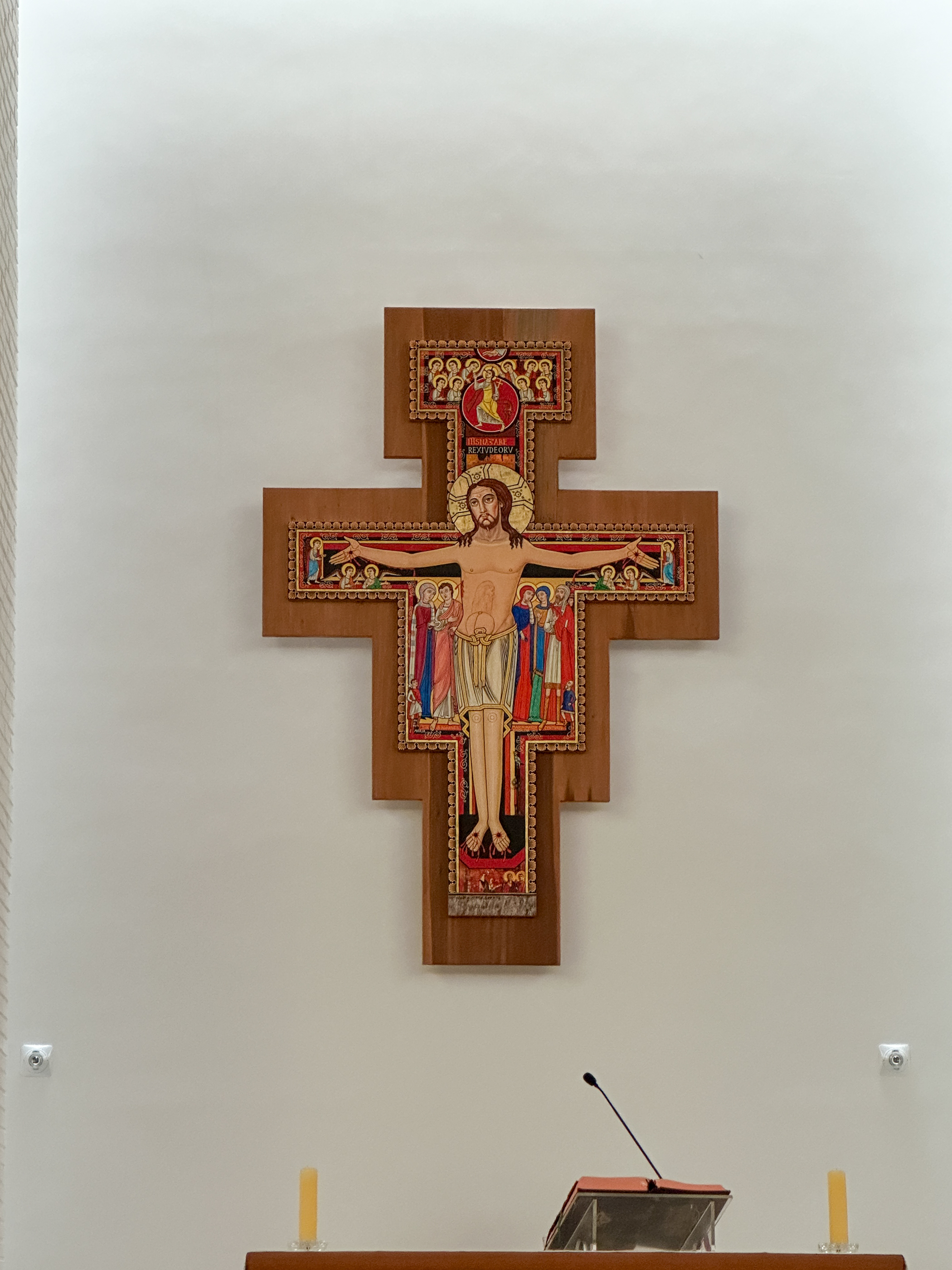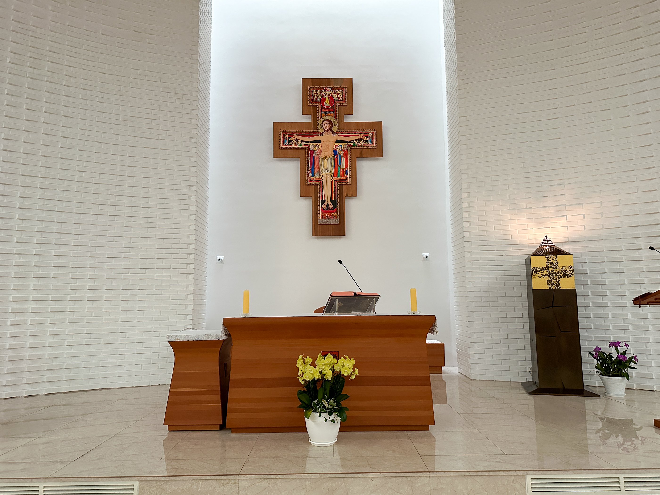 제대 위에는 그림으로 그려진' 다미아노십자가 이콘'이 모셔져 있다.