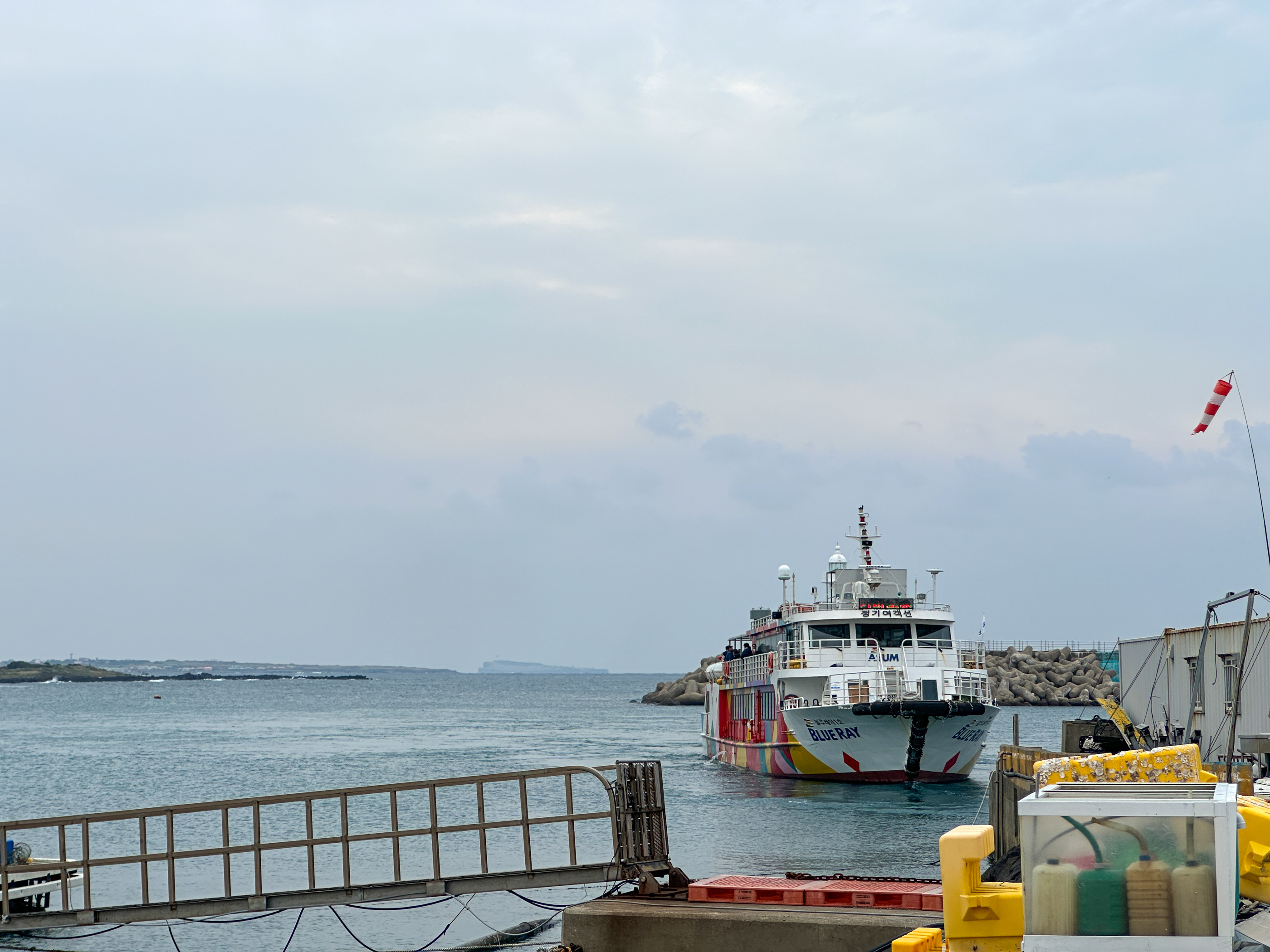 가파도 정기 여객선이 운진항에서 출항하는 모습