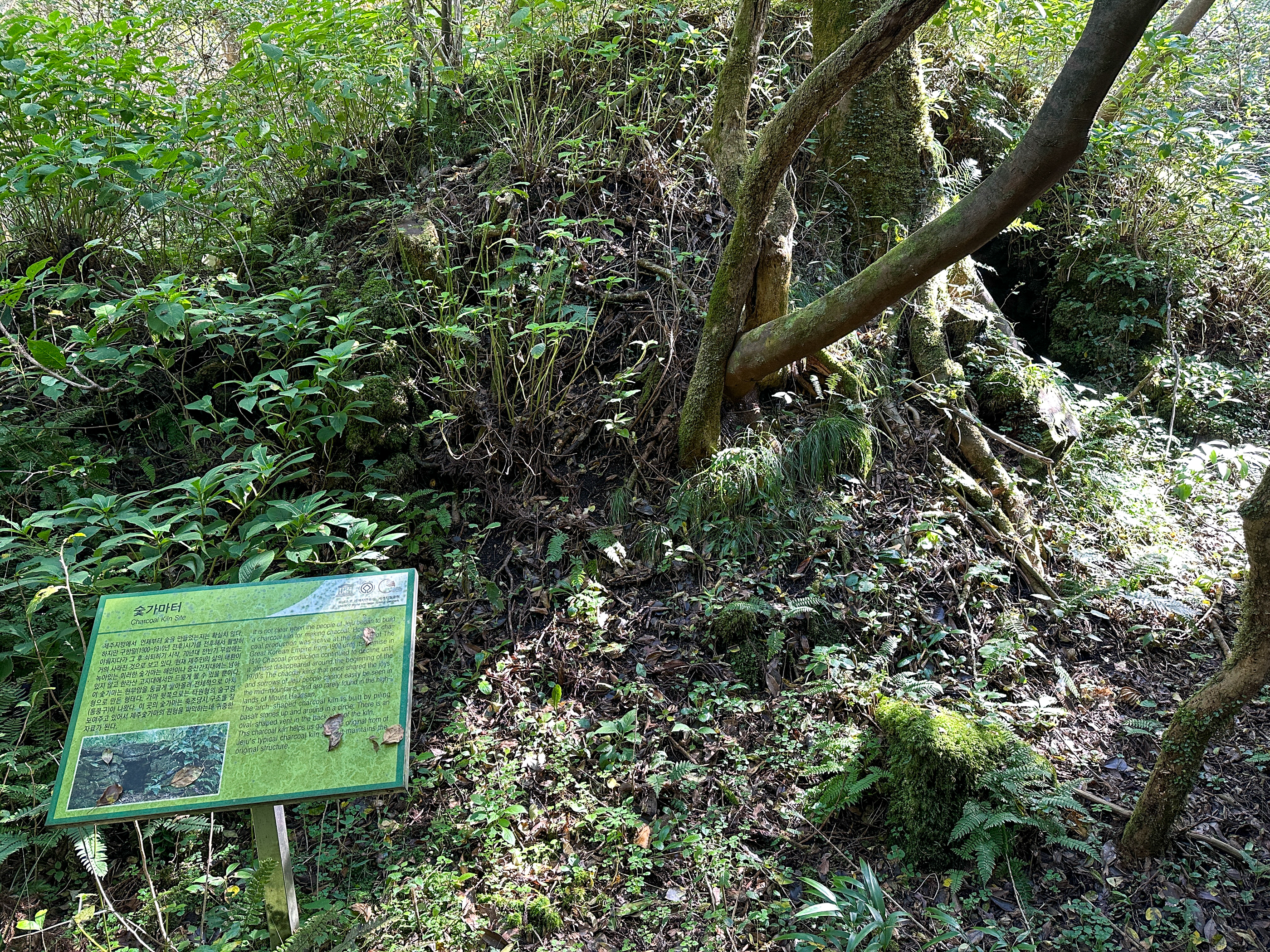 아래쪽이 분화구인데 수풀로 가려져 보이진 않는다.