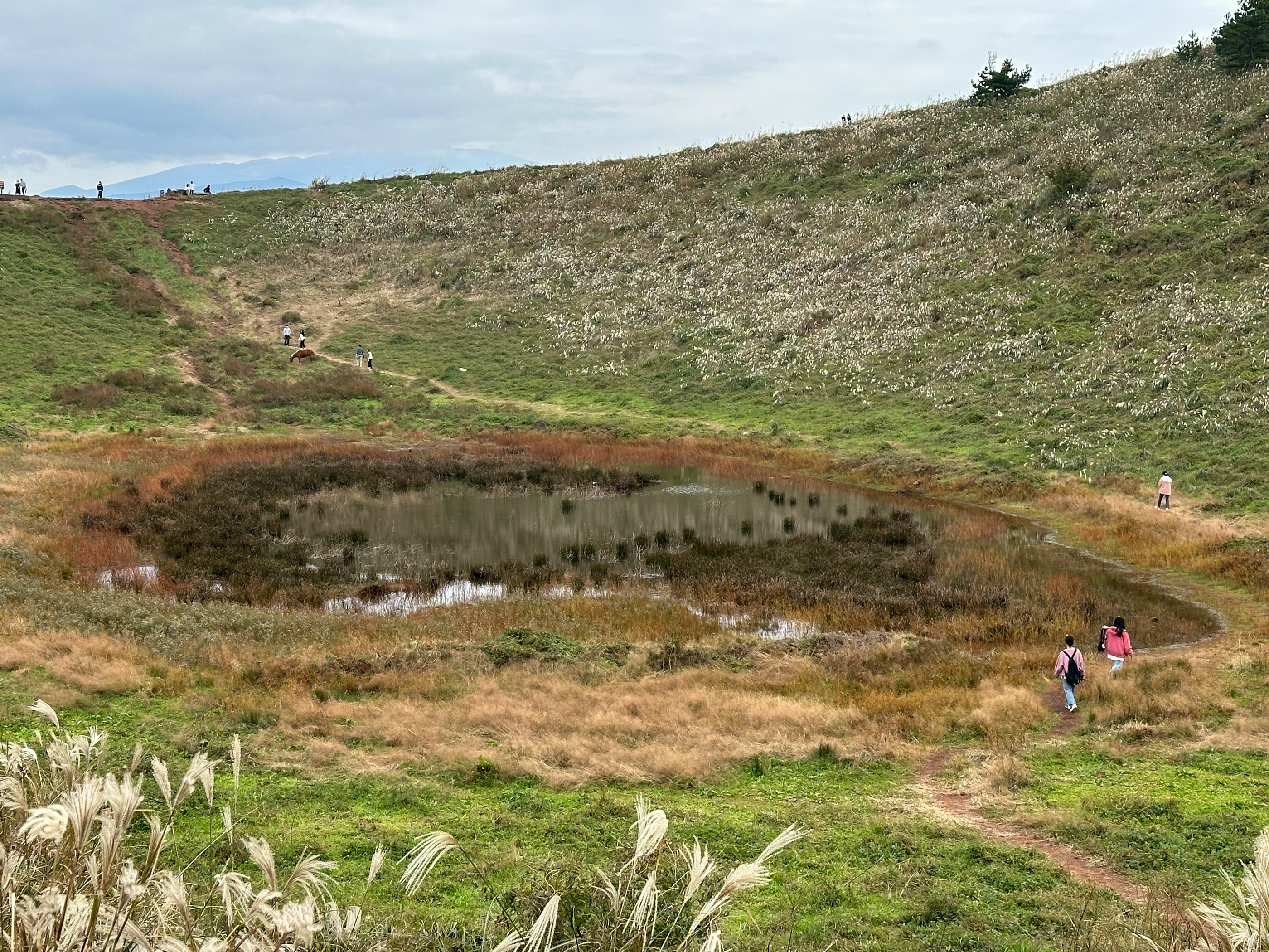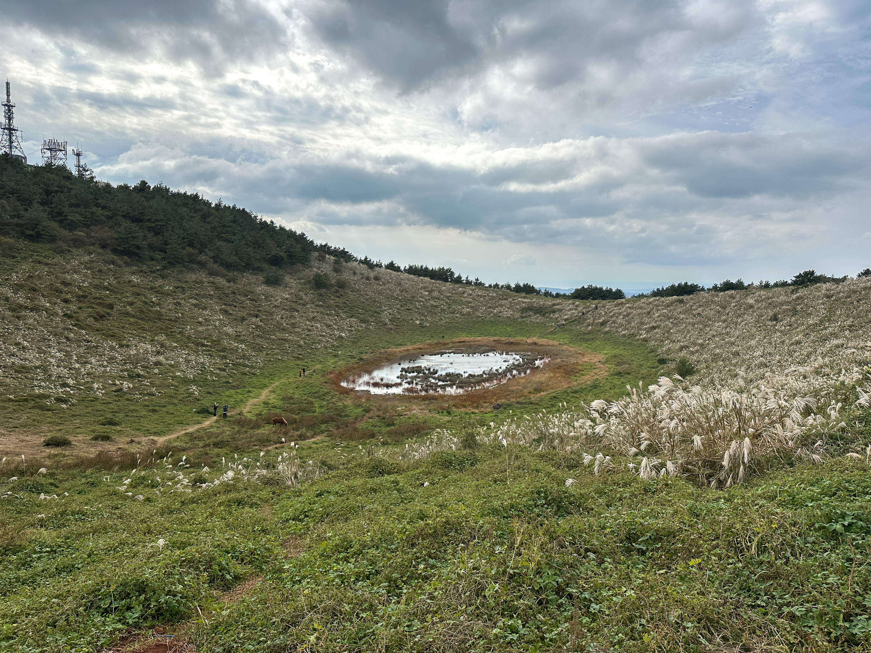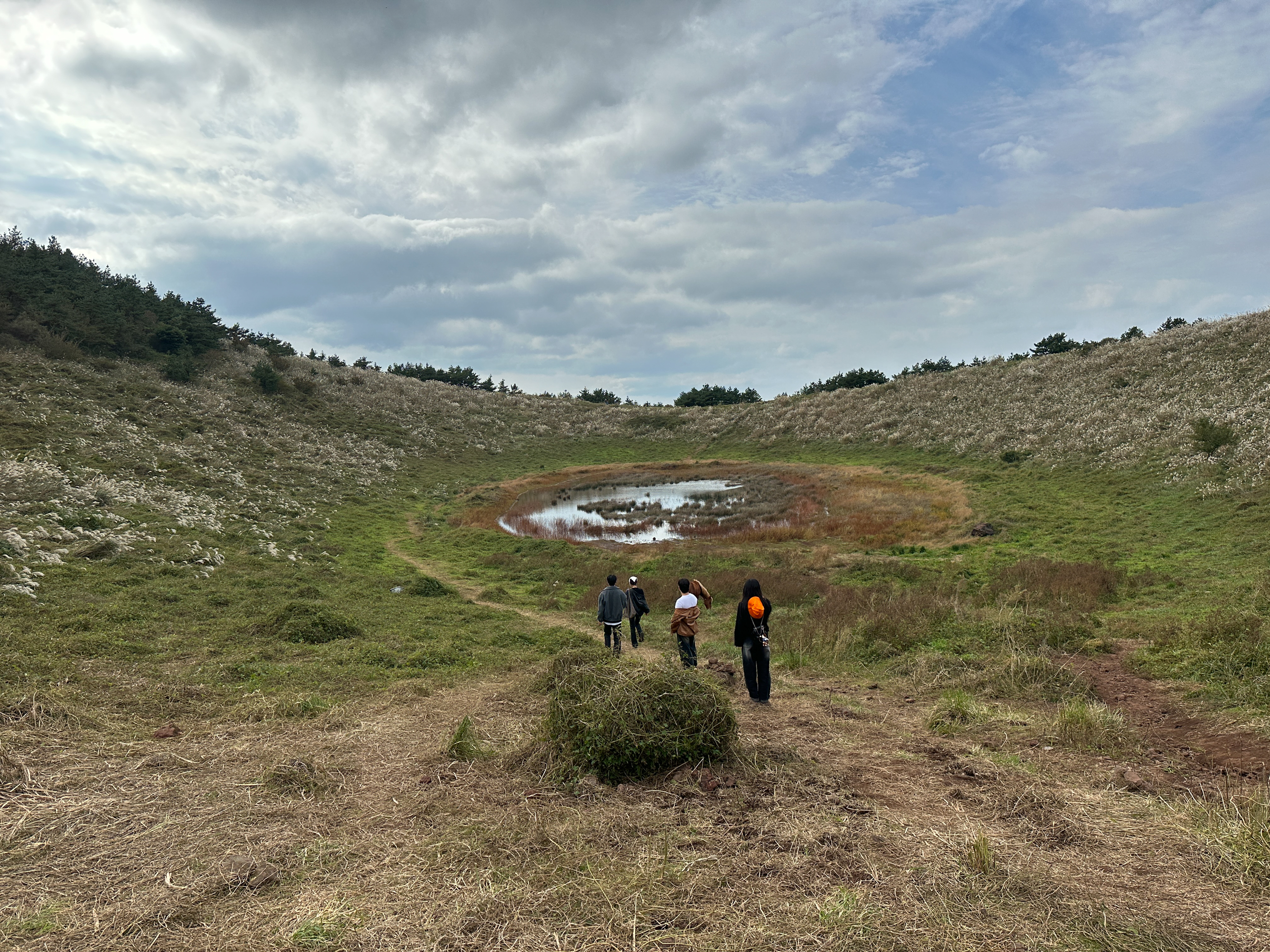아래로 내려가니 최근에 많은 비가 내려서 인지 분화구에 제법 많은 물이 고여 있다.