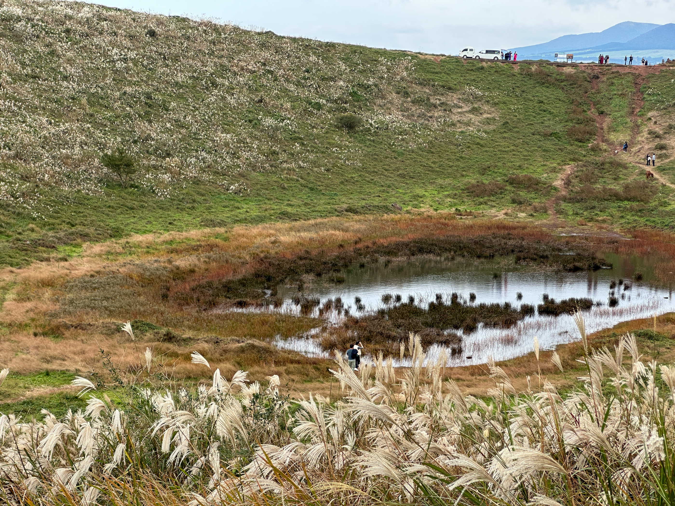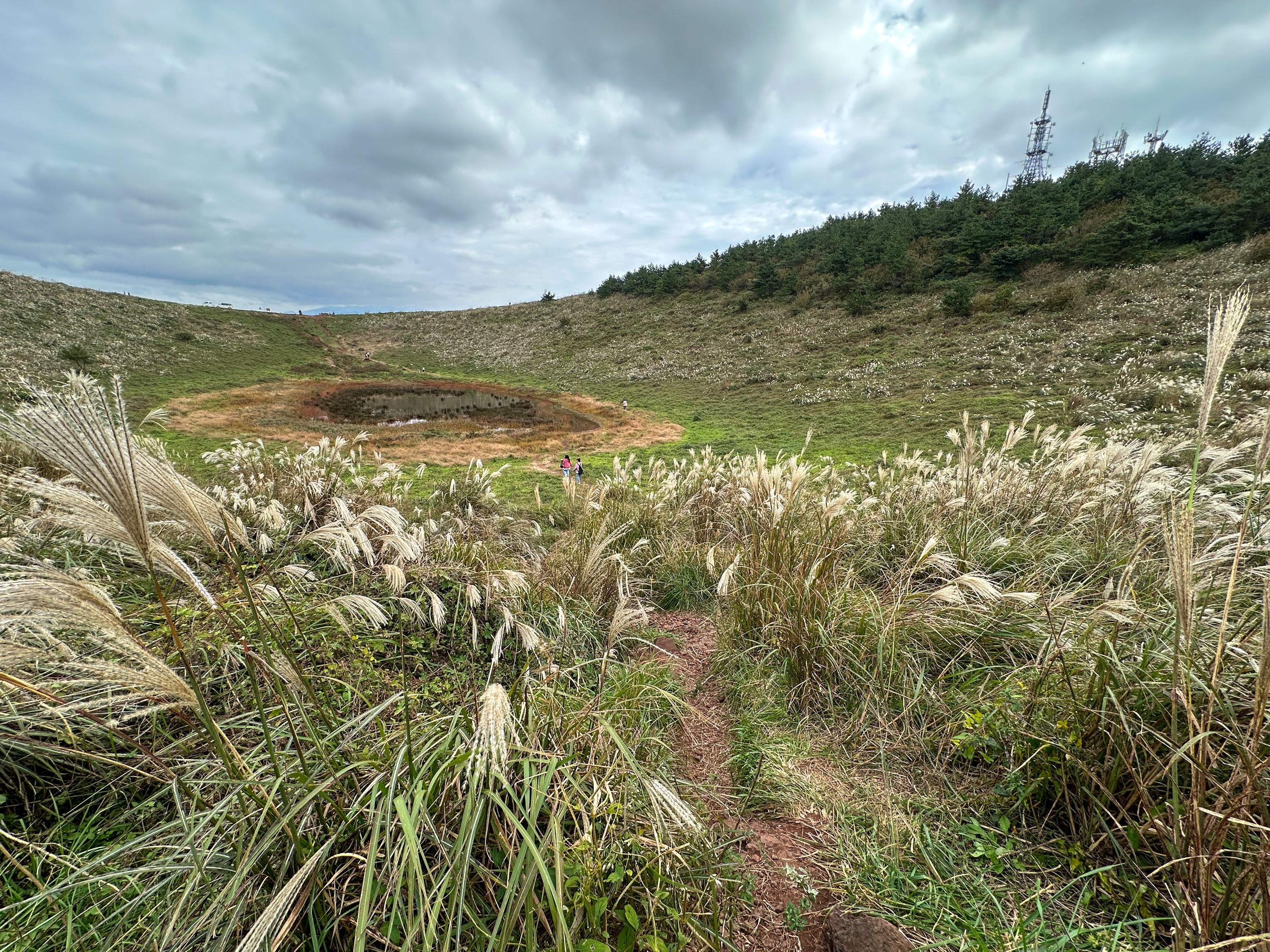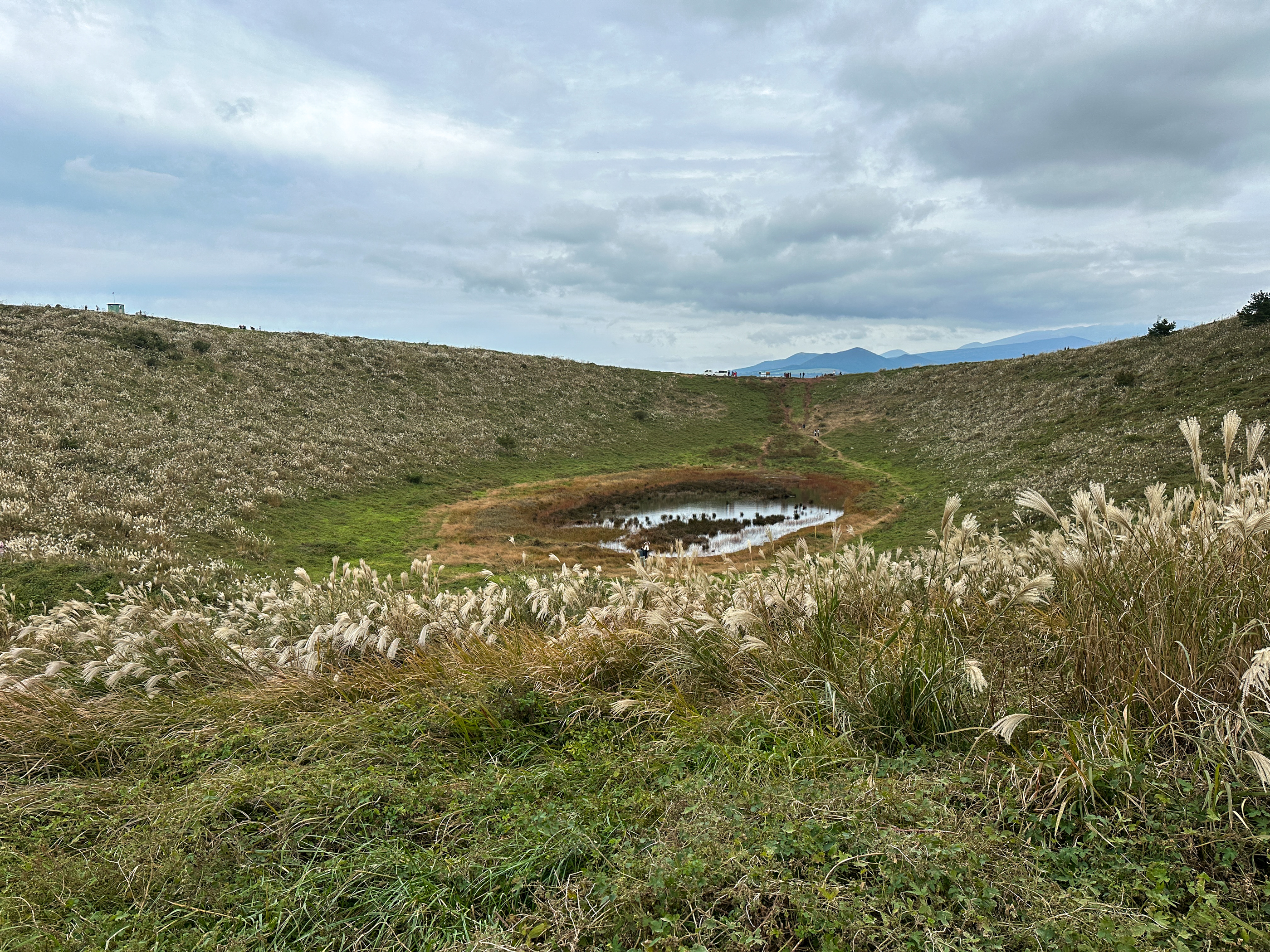 아래로 내려가니 최근에 많은 비가 내려서 인지 분화구에 제법 많은 물이 고여 있다.