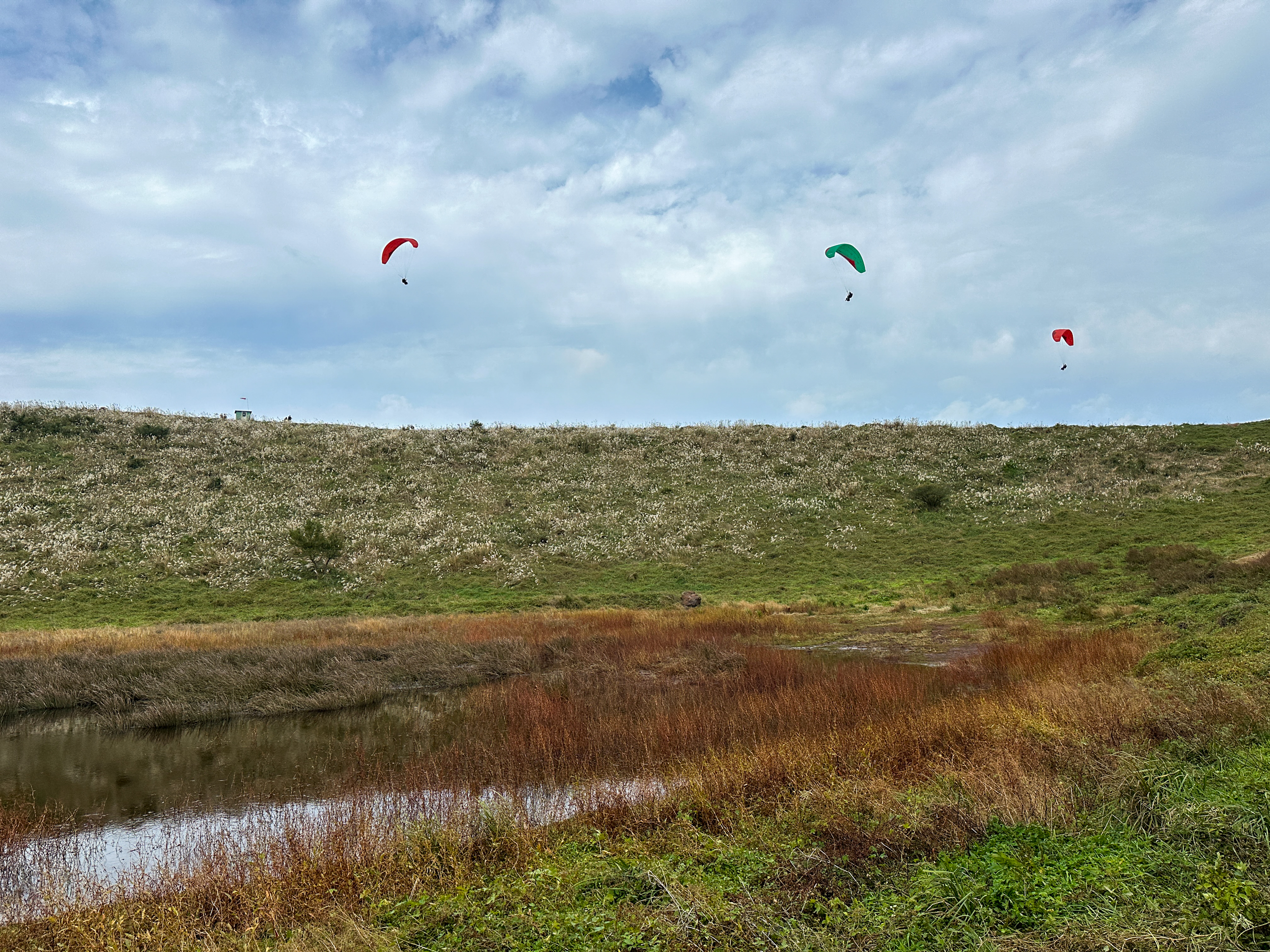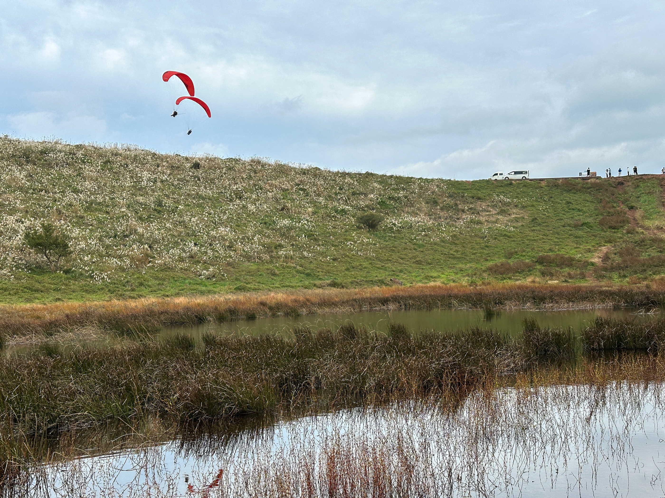 분화구 위에서는 제주행글라이딩 협회(?) 였던 것 같은데 행글라이딩이 펼쳐지고 있었다.