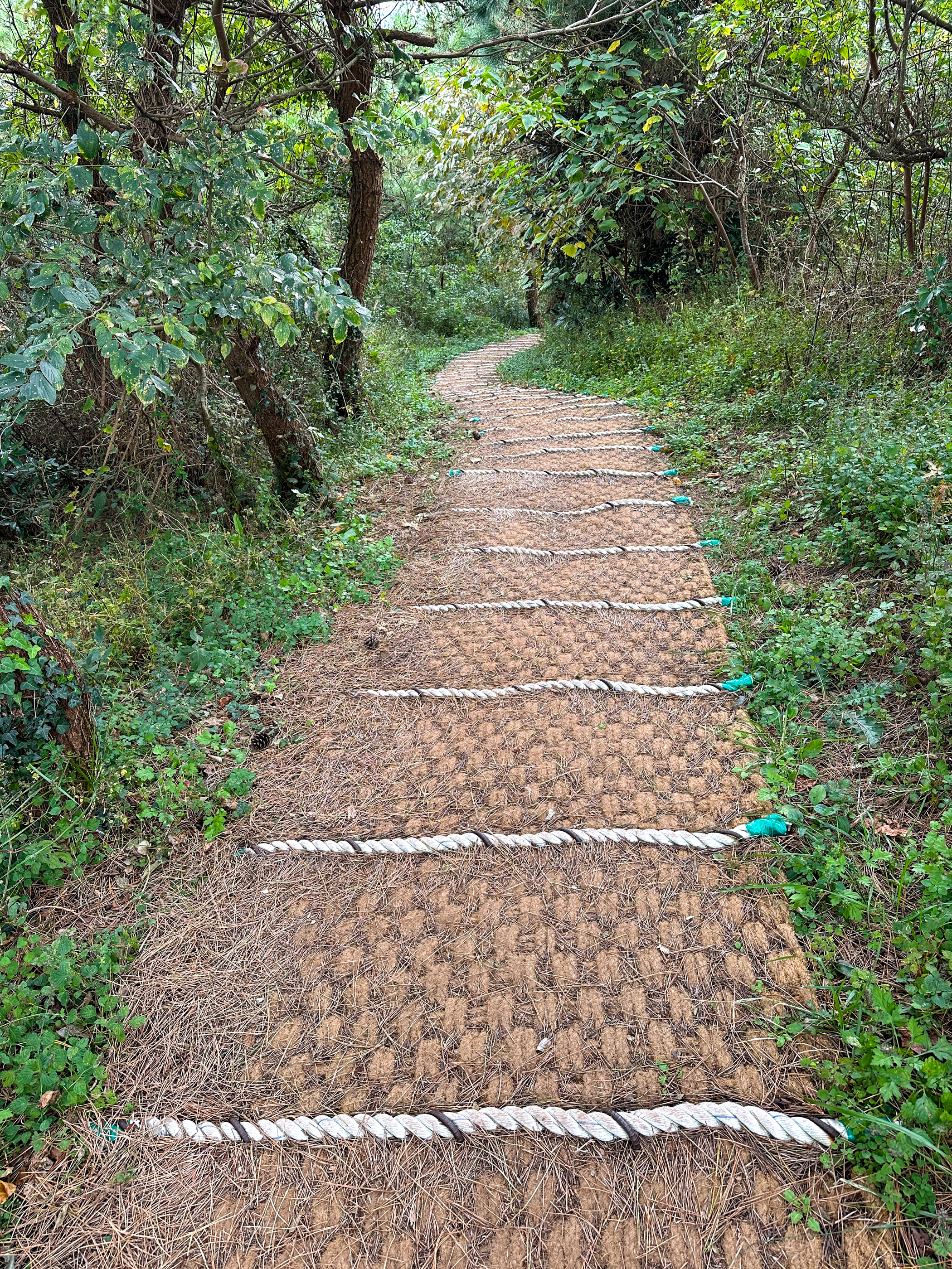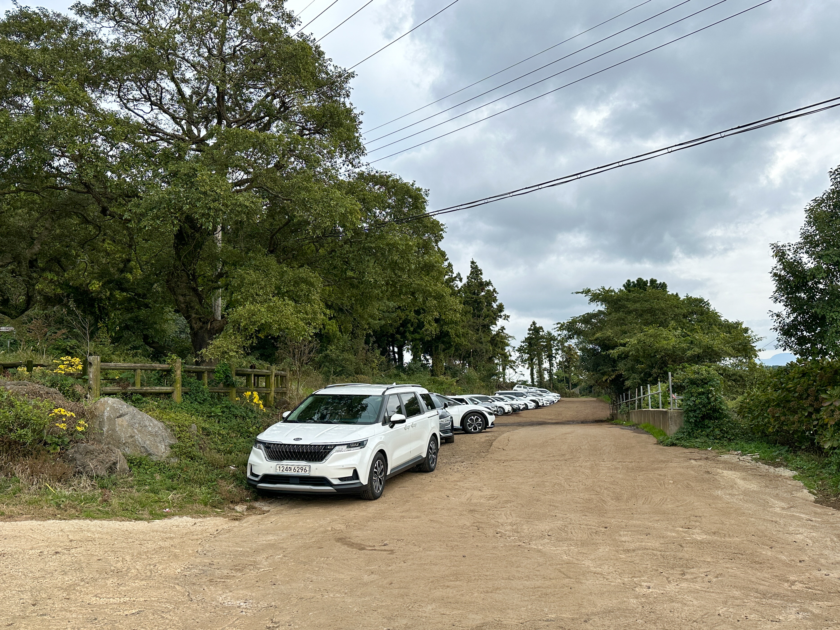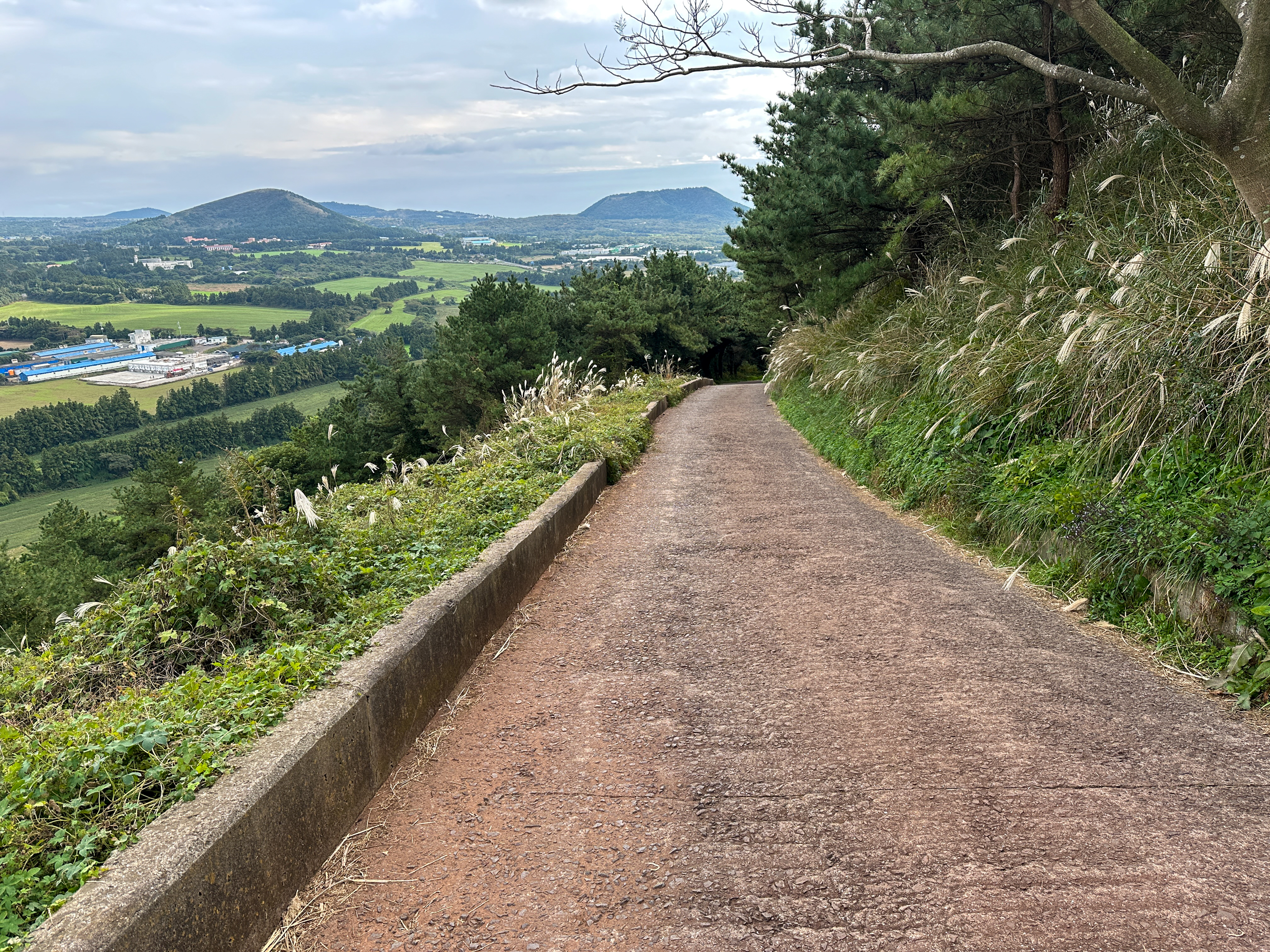 멀리 주차장 입구가 보인다. 시멘트 길로 유모차를 끌고 온 2명의 엄마(동행인 것 같았음)를 봤다. 유모차를 미는게 쉽지 않을텐데 대단하다는 생각을 했다 . 그만큼 맨 몸으로 오르기에는 쉬운 오름이다.. 숲길은 그에 비해 힘들다.