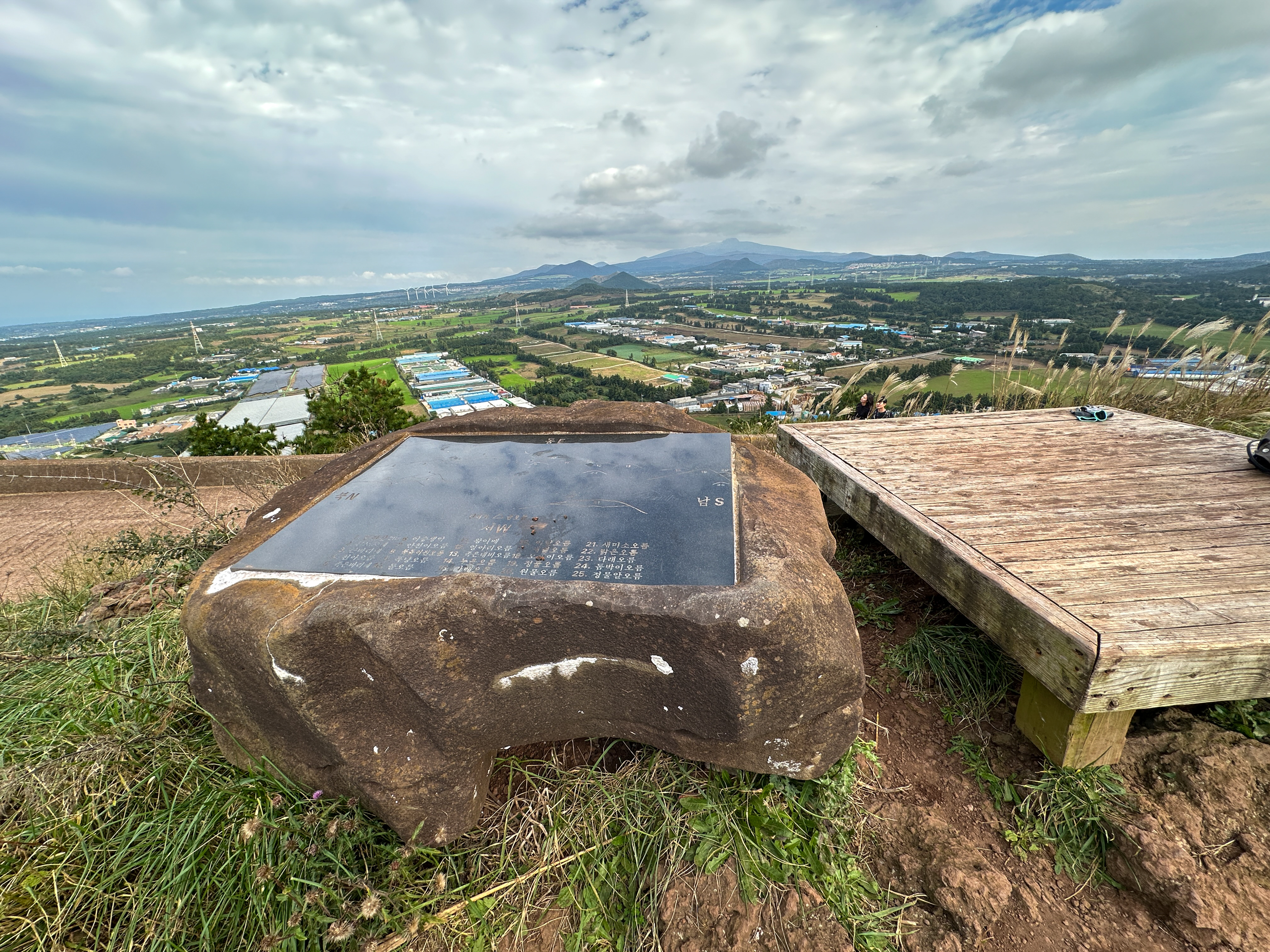 시멘트길로 올라오면 분화구 도착 지점 왼편으로 안내석과 평상도 있다.