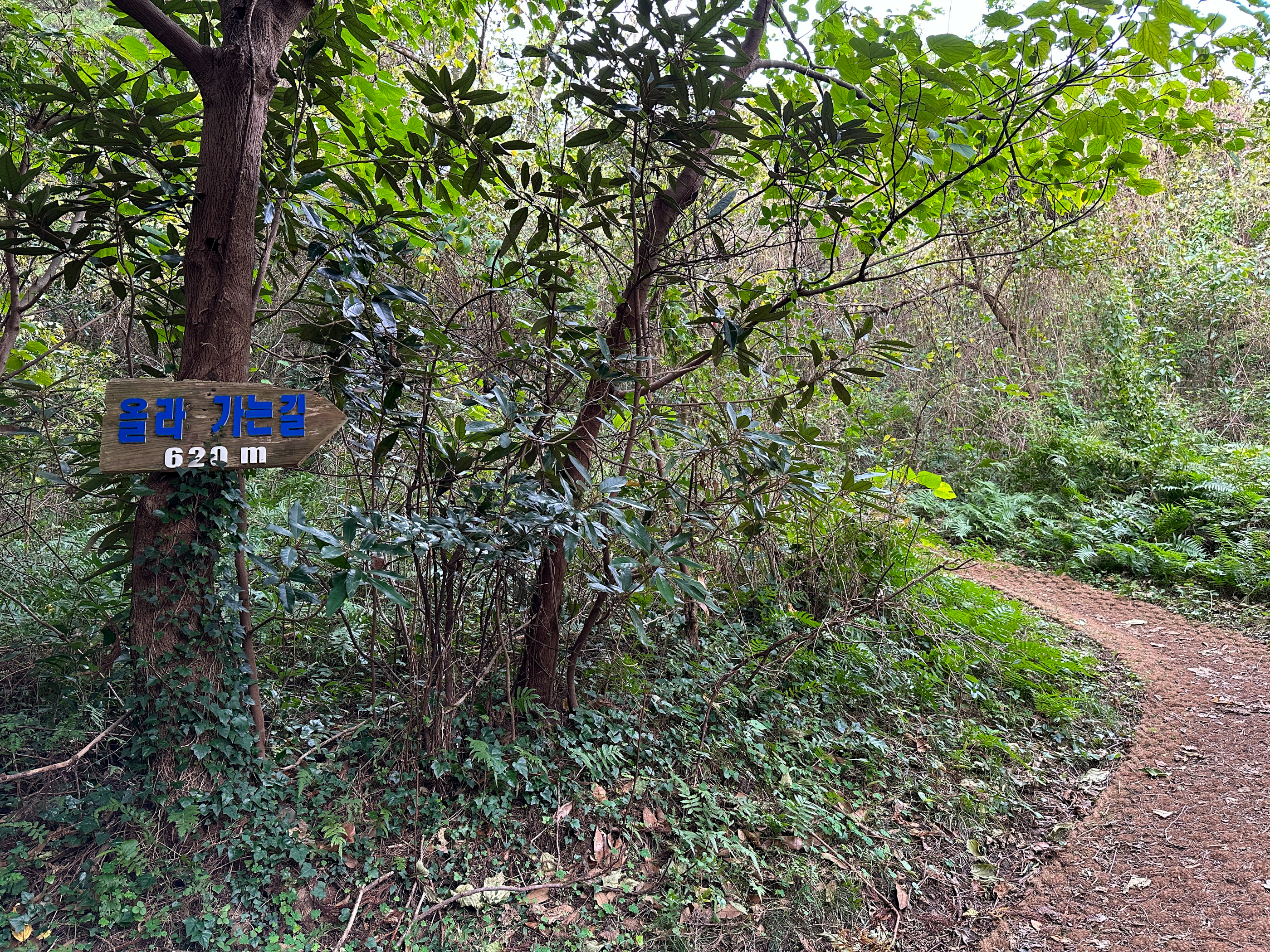 숲길로 정상부근까지 620m다