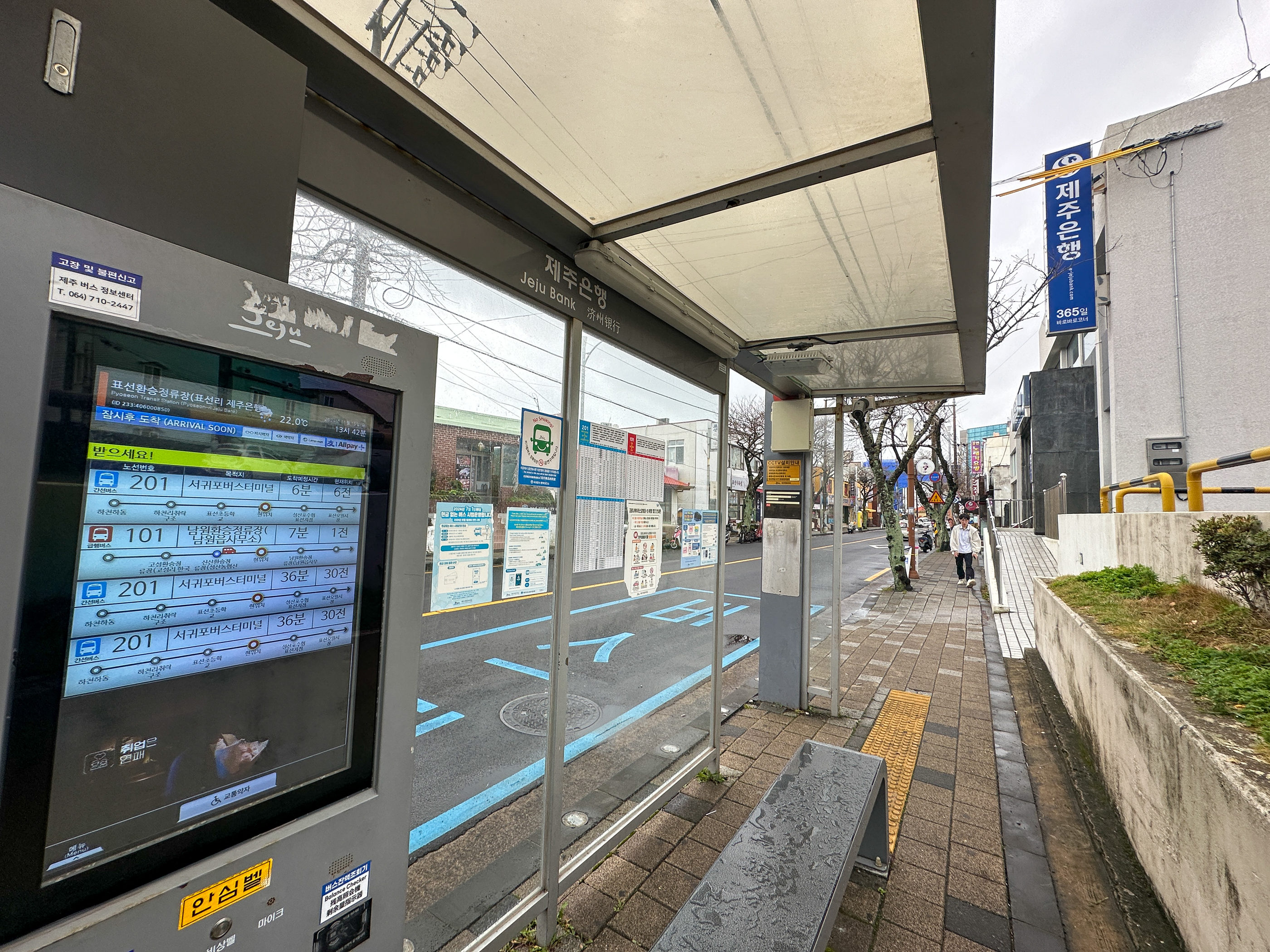 3코스를 완주한 후 '표선환승정류장(표선리 제주은행)'에서 201번버스를 타고 -6분대기-