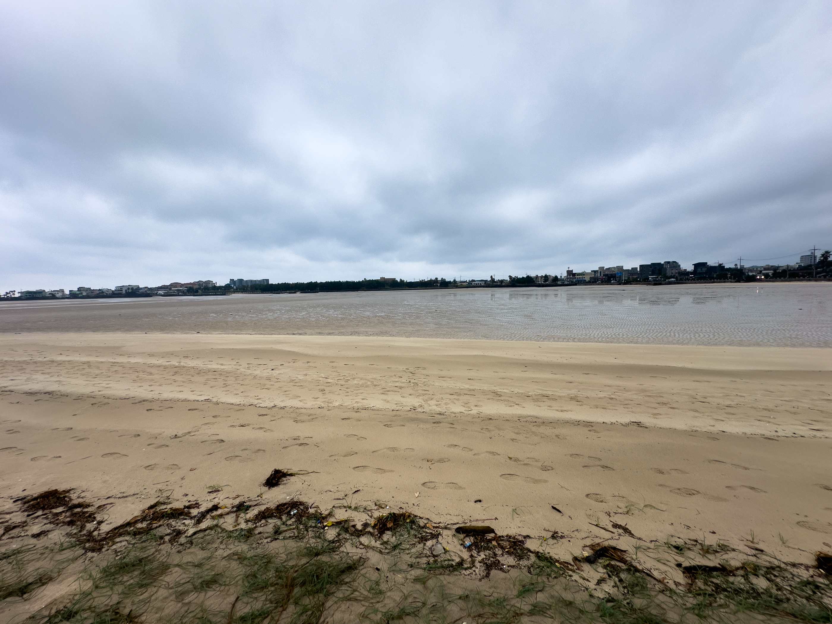 표선해수욕장의 넓은 백사장이 보이기 시작했다. 백사장 우측편에는 숲길도 있다.