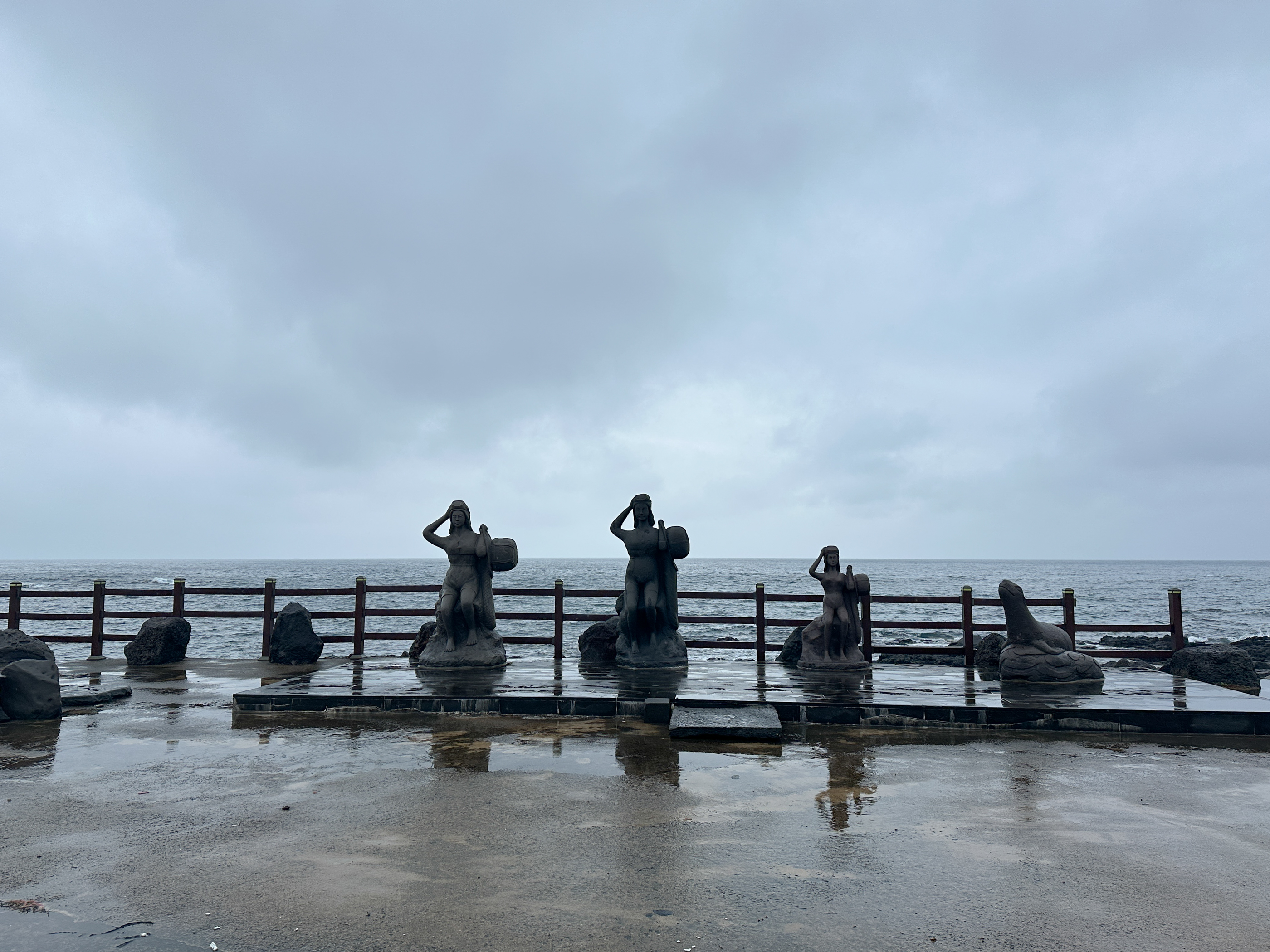 비가 오는데도 물질하는 해녀들의 모습이 보였다.