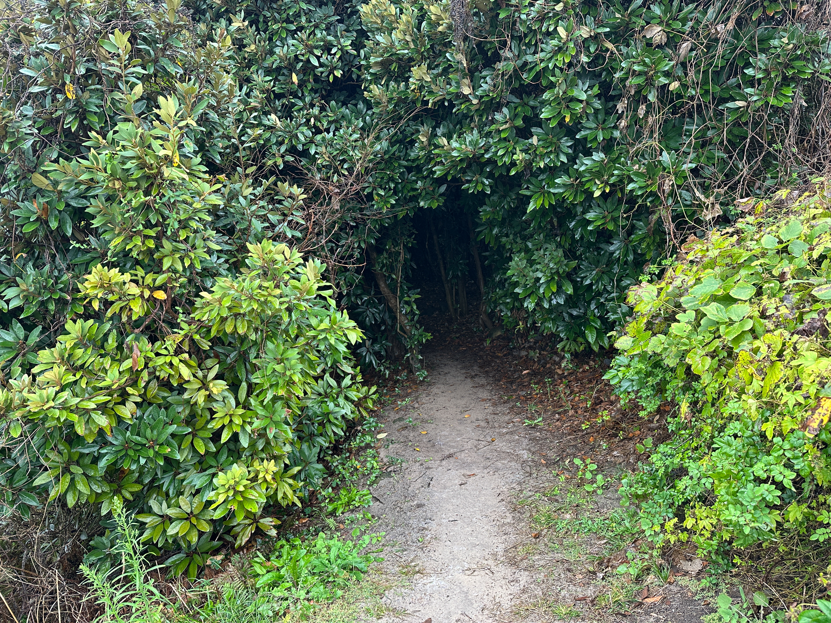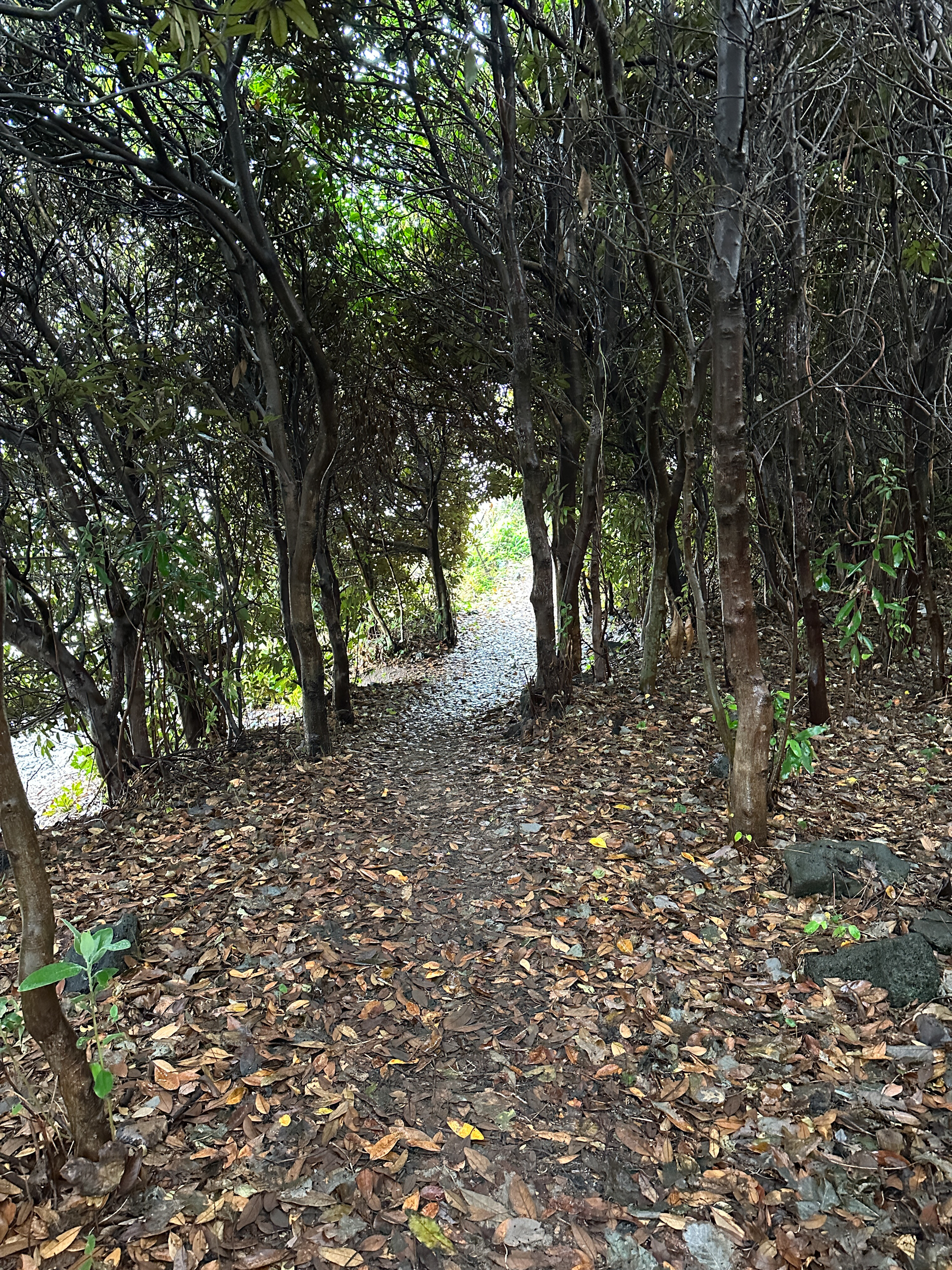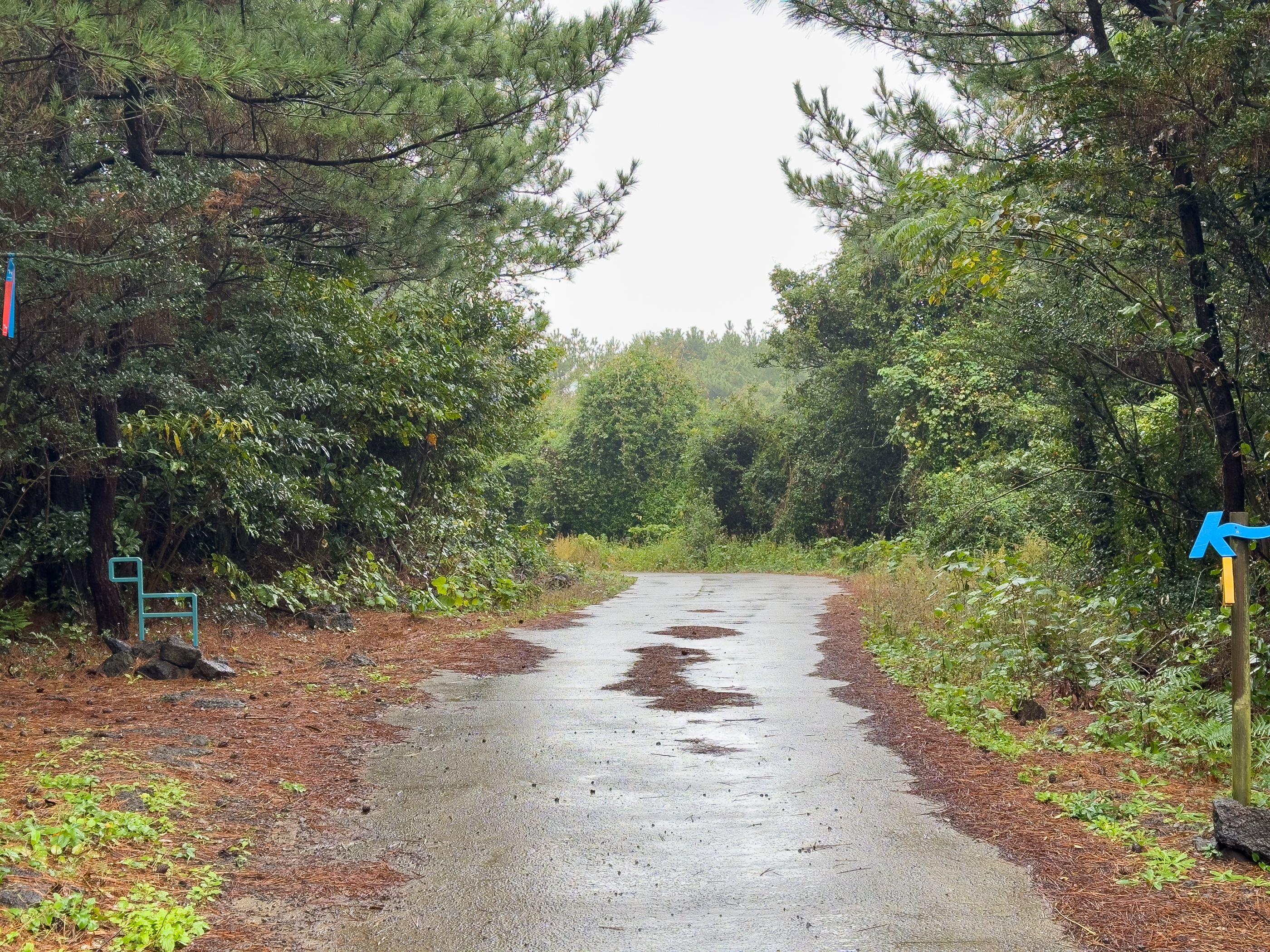 숲속으로 방향을 틀었다. 나뭇가지들이 방해가 되어 우산을 쓰고 가기아 어려웠다.