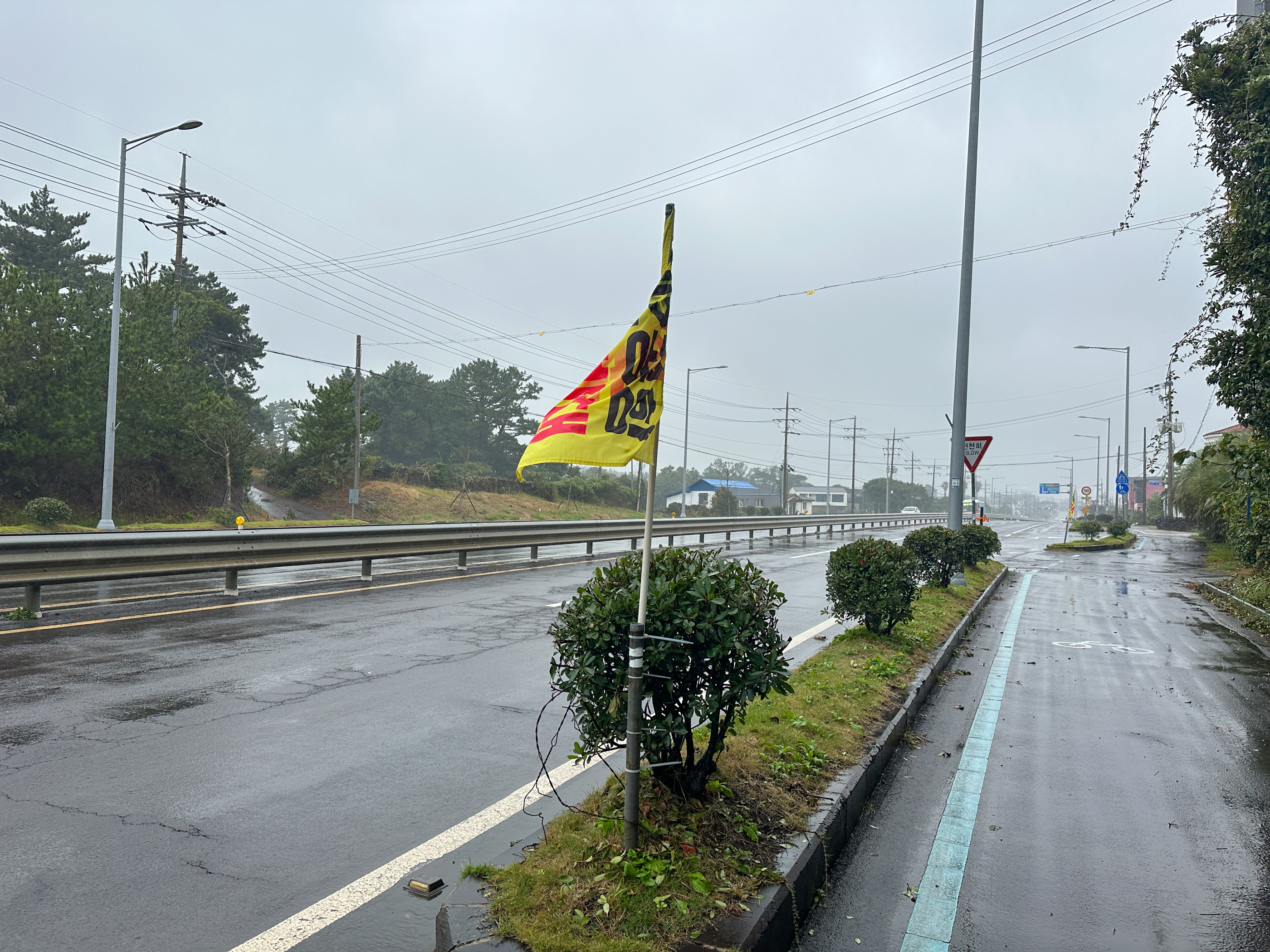비에 젖어 축 쳐진 제2공항 반대를 외치는 깃발들이 다. 버스를 타고 오면서도 현수막을 많이 봤다.