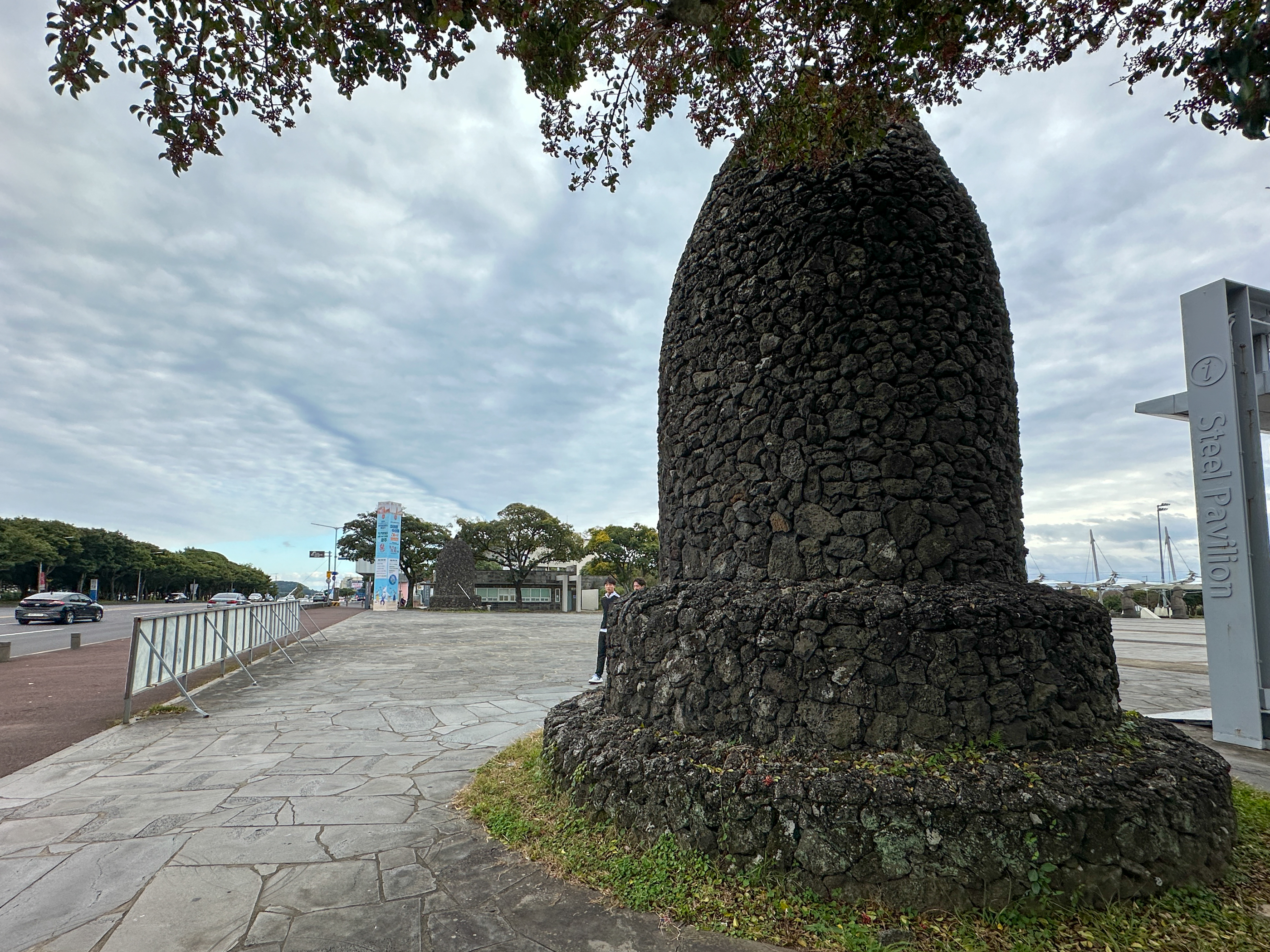광장 옆의 하루방들은 방문하는 사람들을 환영하는 듯 도열해 있다.