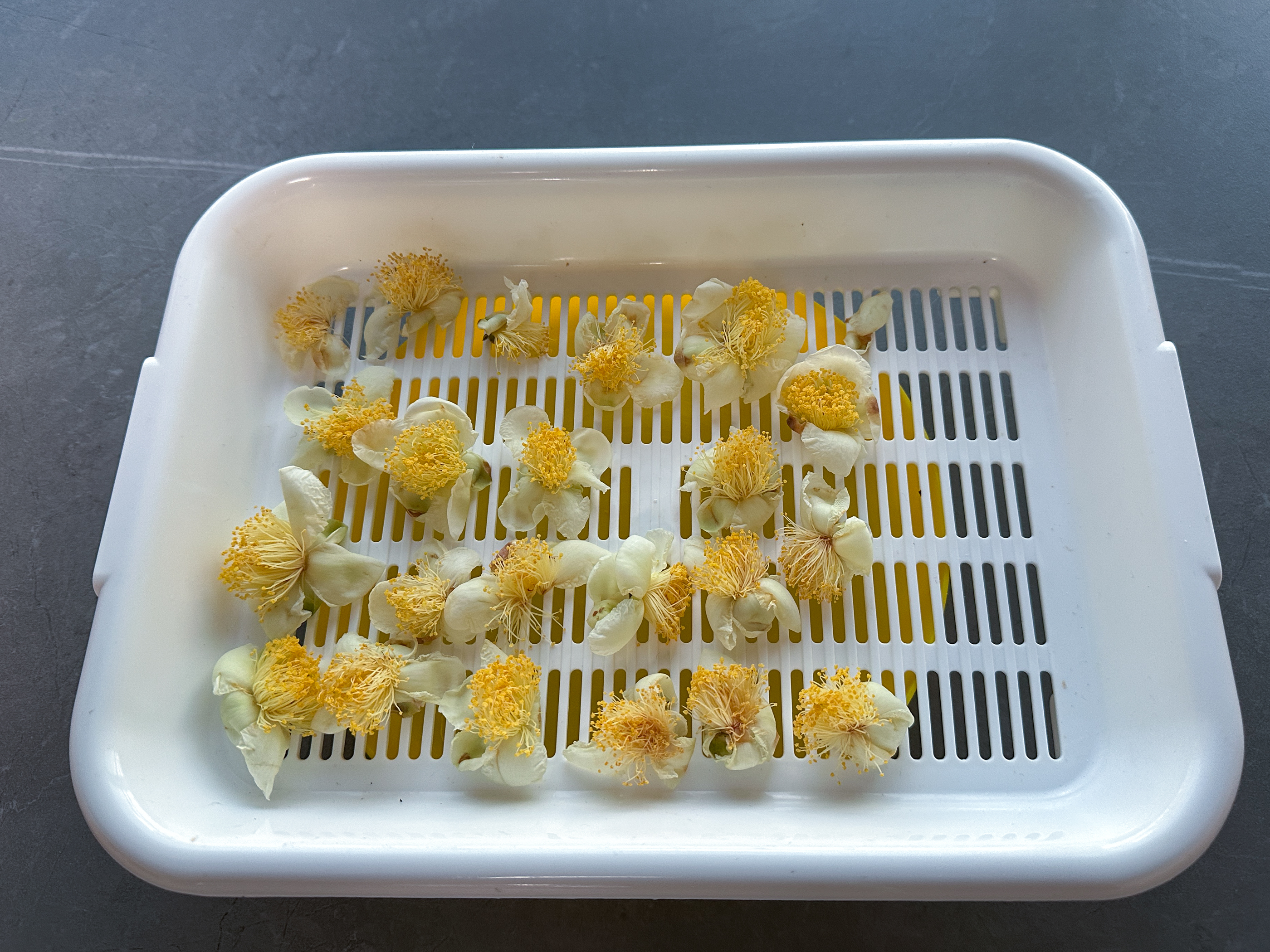 떨어진 꽃을 몇개 주어와 햇볕에 말려본다.
