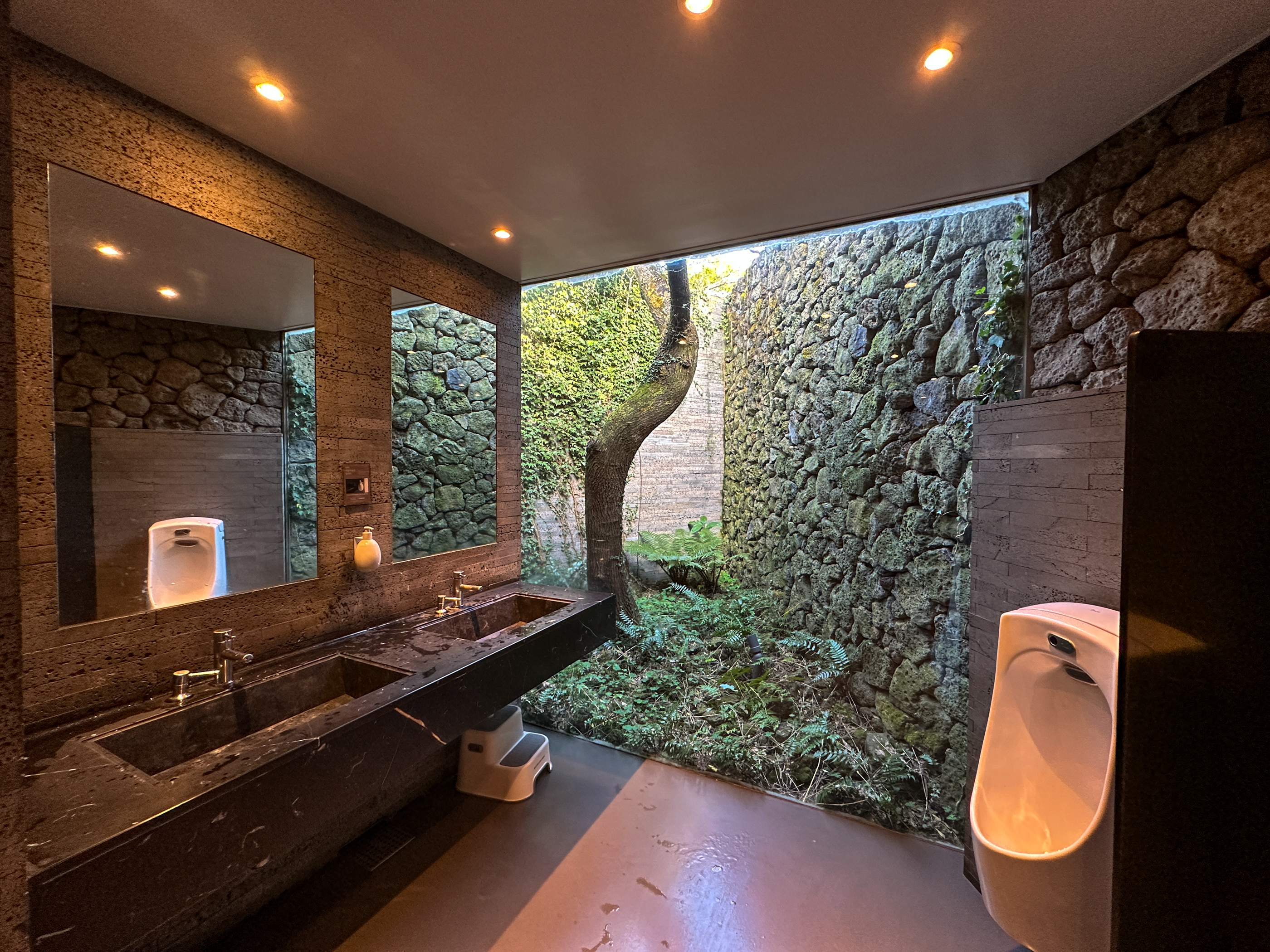 오설록에서 인상 깊었던 야외 화장실 가는 길과 남자화장실 내부