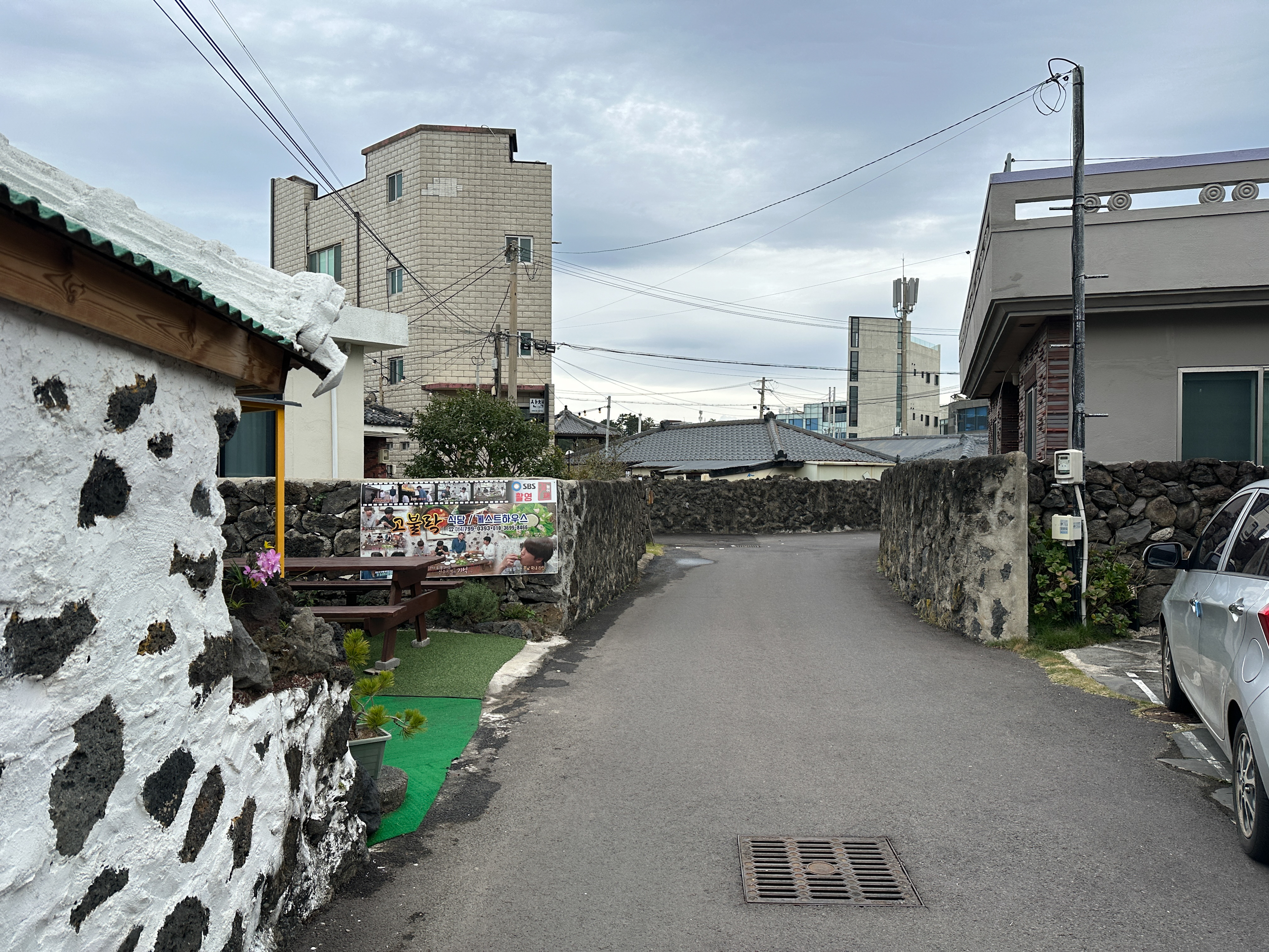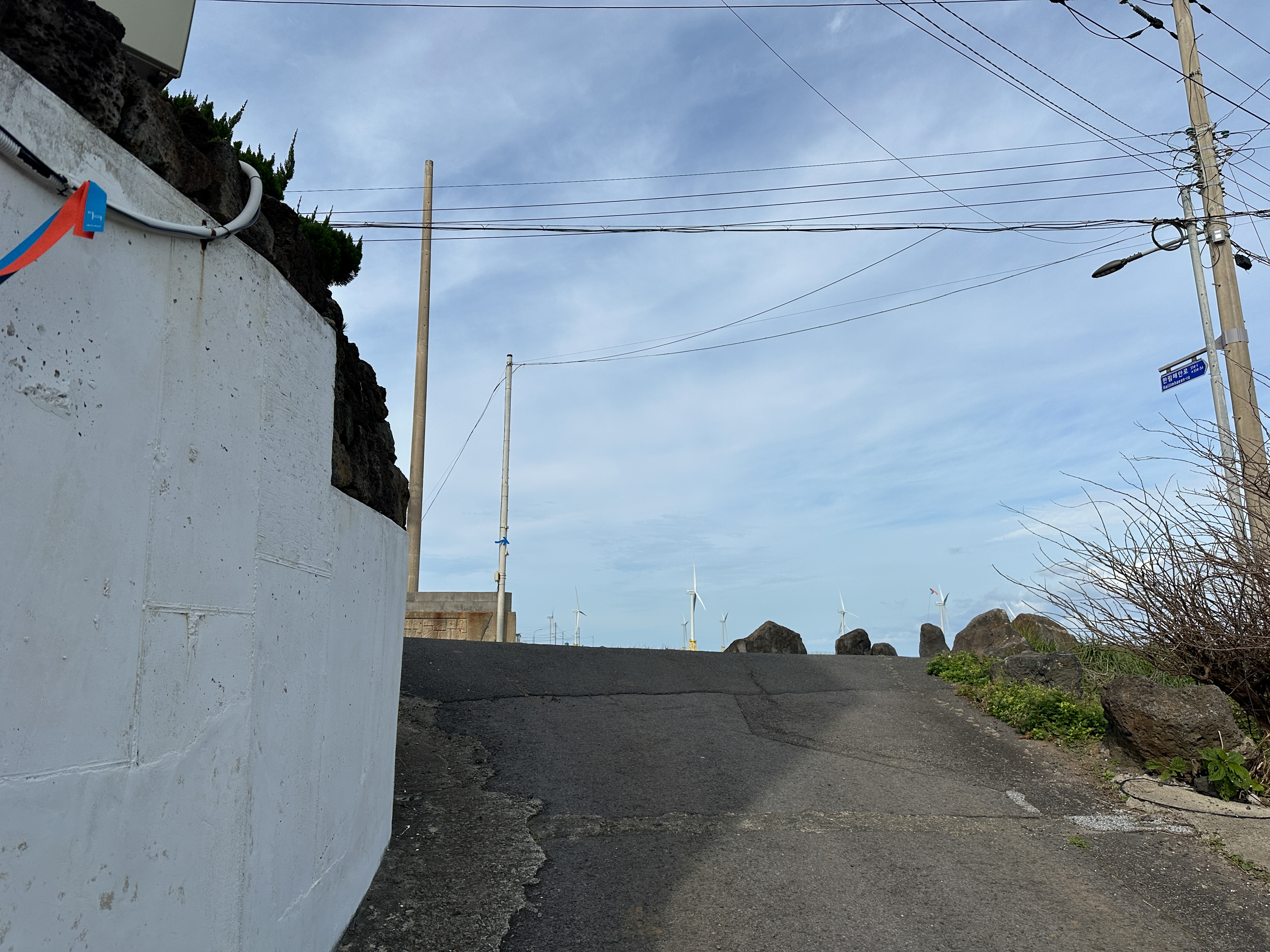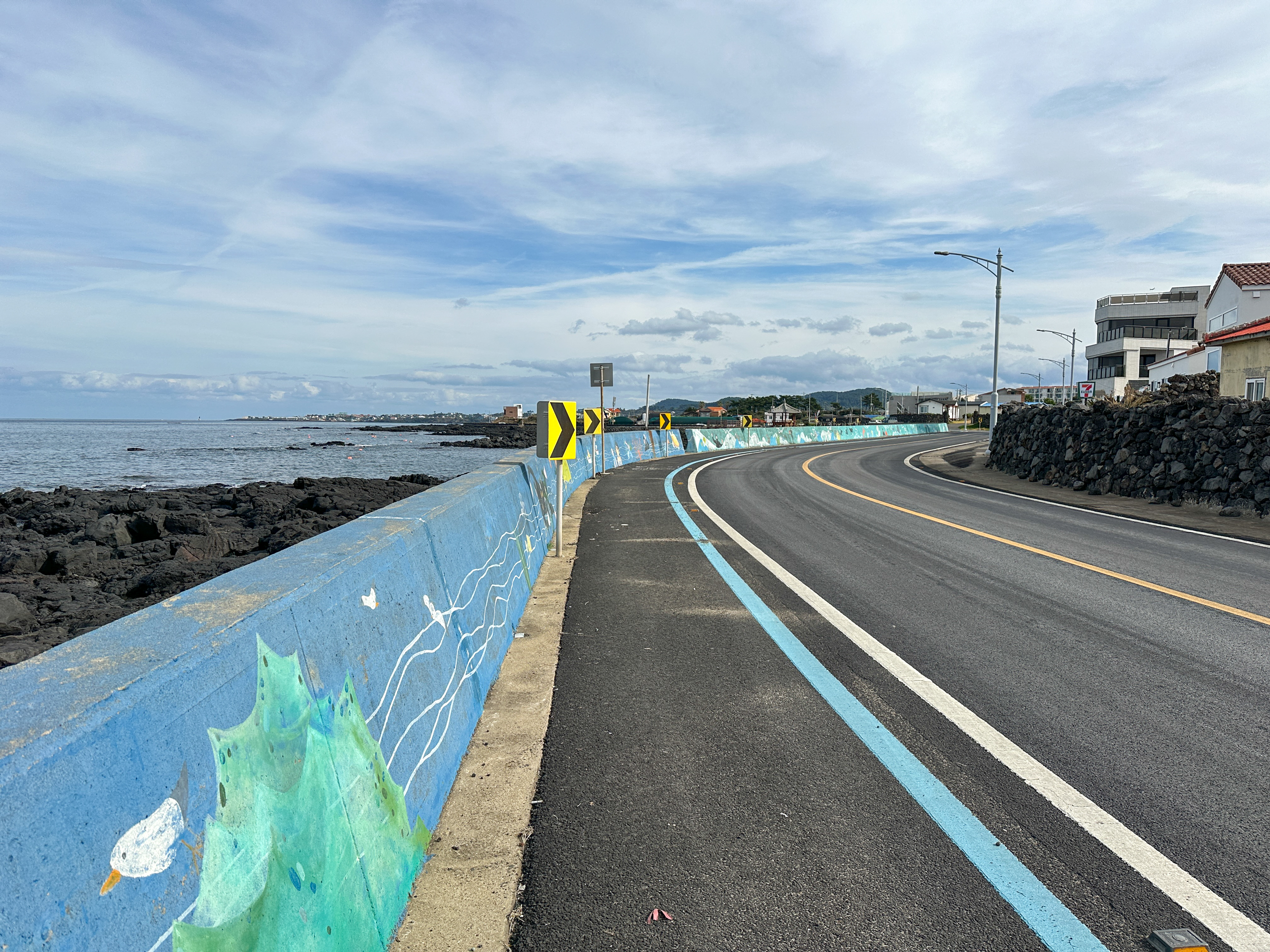 애월항을 지난 후 해안도로를 벗어 나 마을 길로 접어들어 현대오일뱅크 물류센터도 지나간다.
