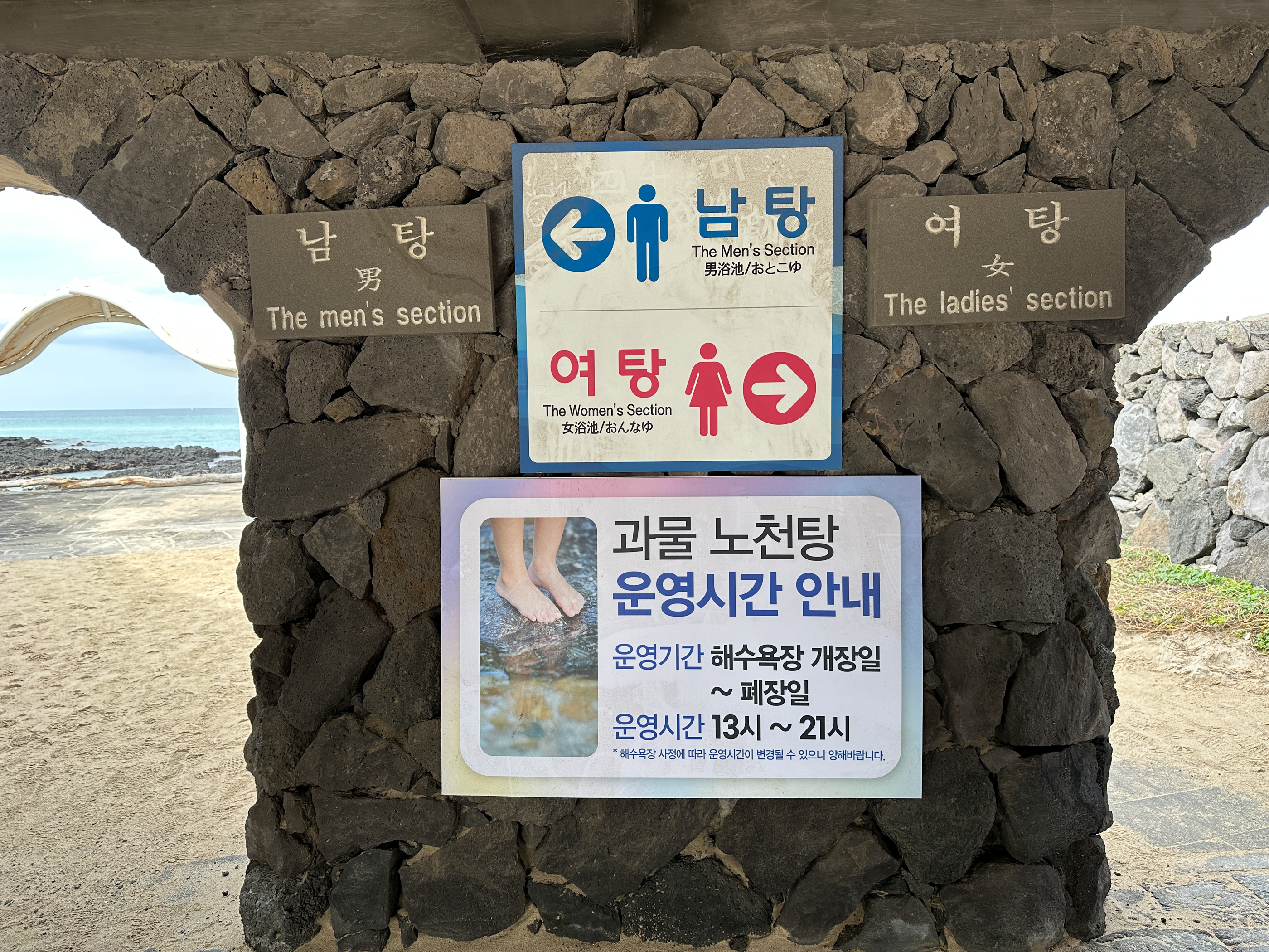 '과물노천탕' 설정이 재미있다. 해수욕장 open시기에만 운영되고 있다. 남탕 입구를 통해 남탕으로 들어 가 봤다.