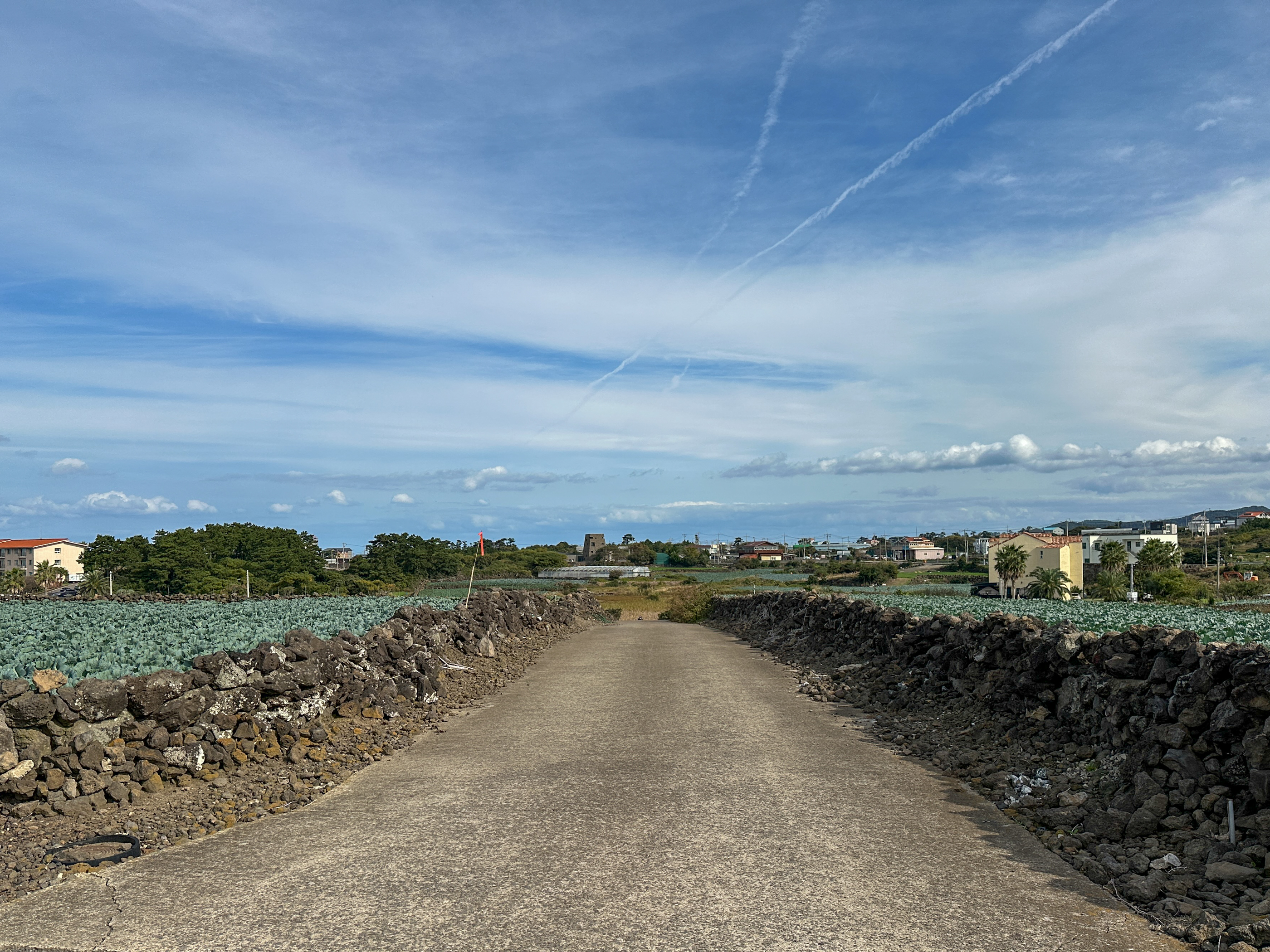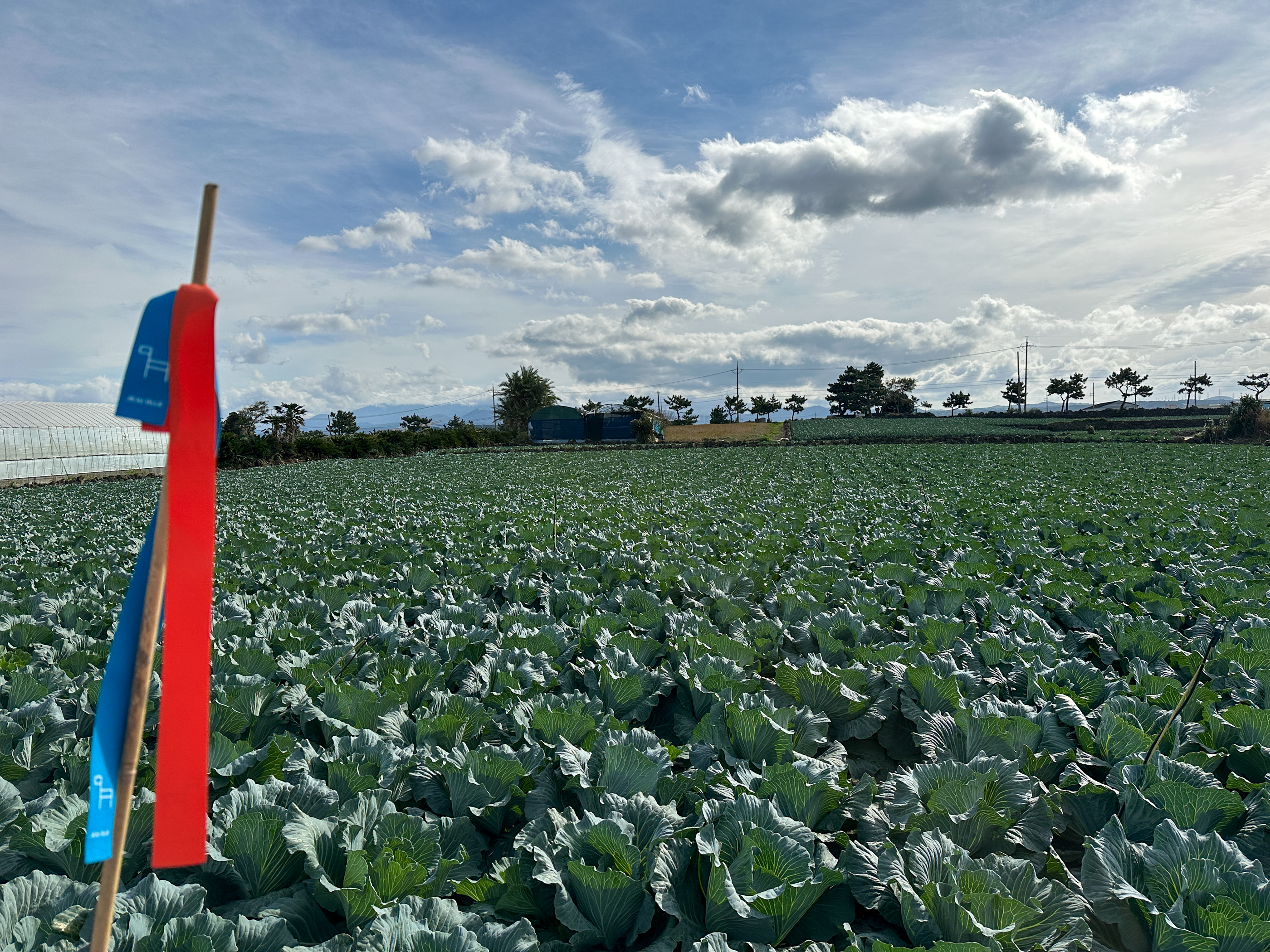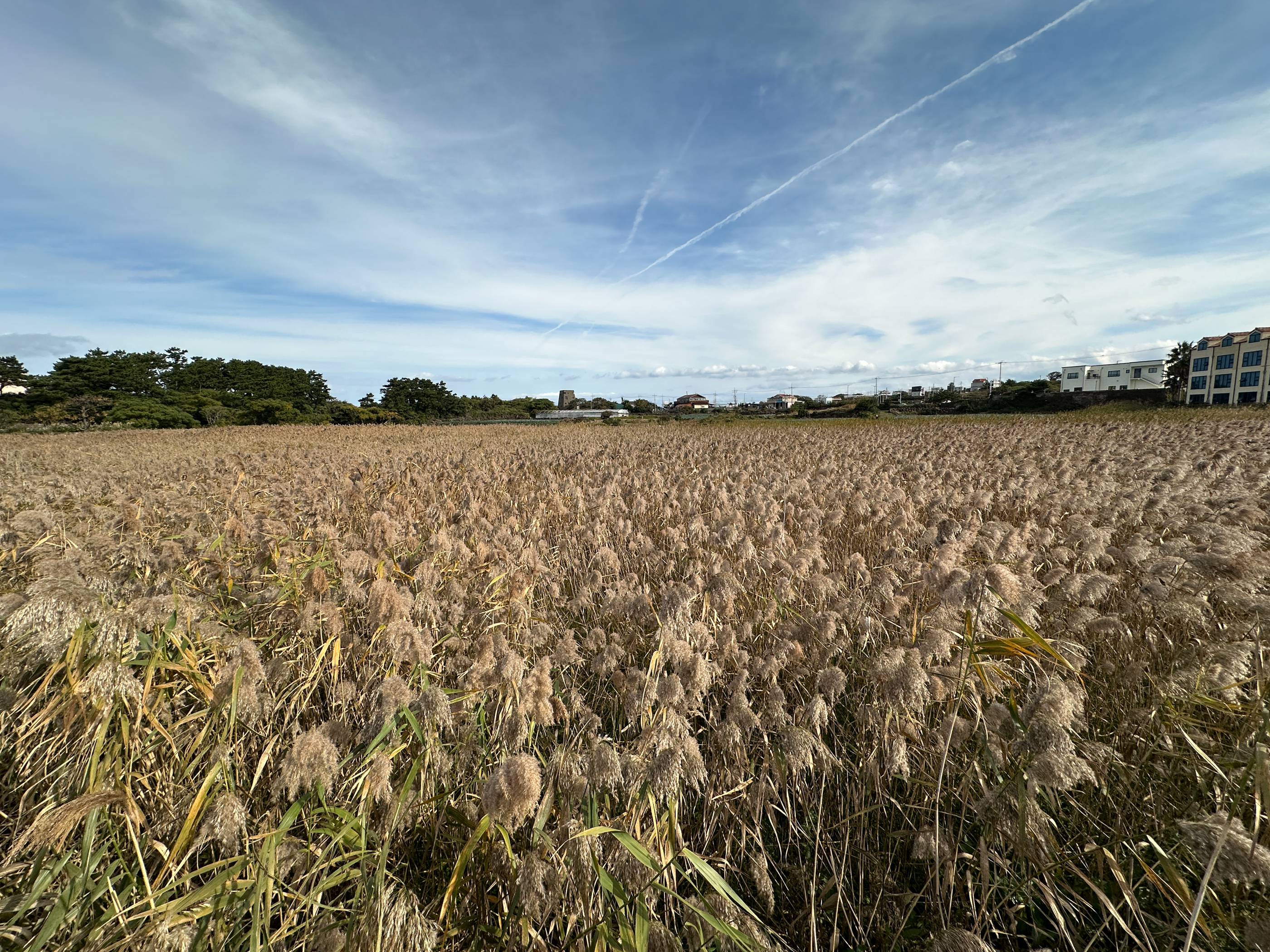 양쪽으로 대규모로 양배추가 심어져 있는 길을 통과한다. 억새가 아닌 갈대밭도 보았다.