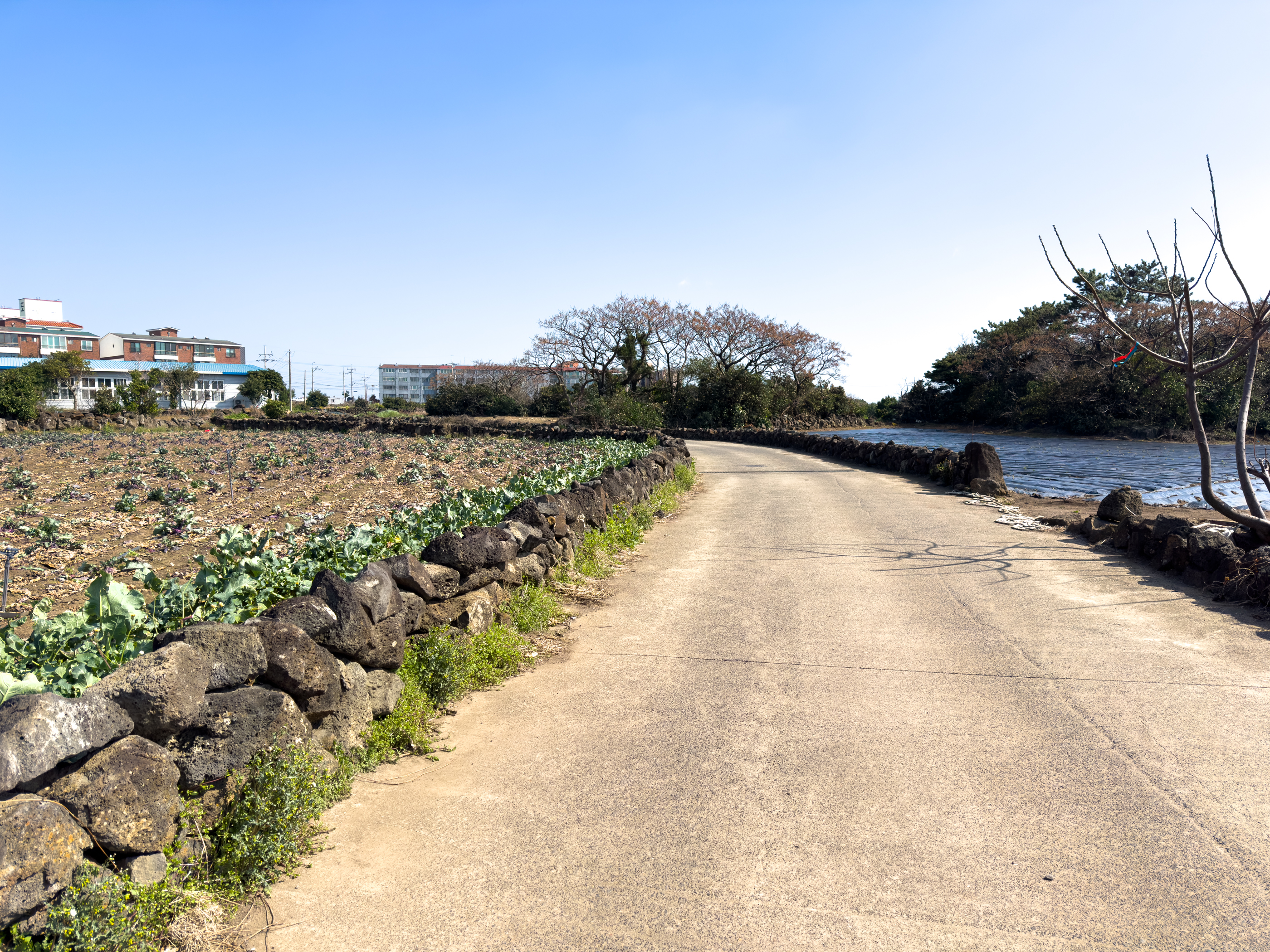 도로를 건너 건널목 우측편 하모1리 마을로 접어드는 길이 2코스 진행방향이다.