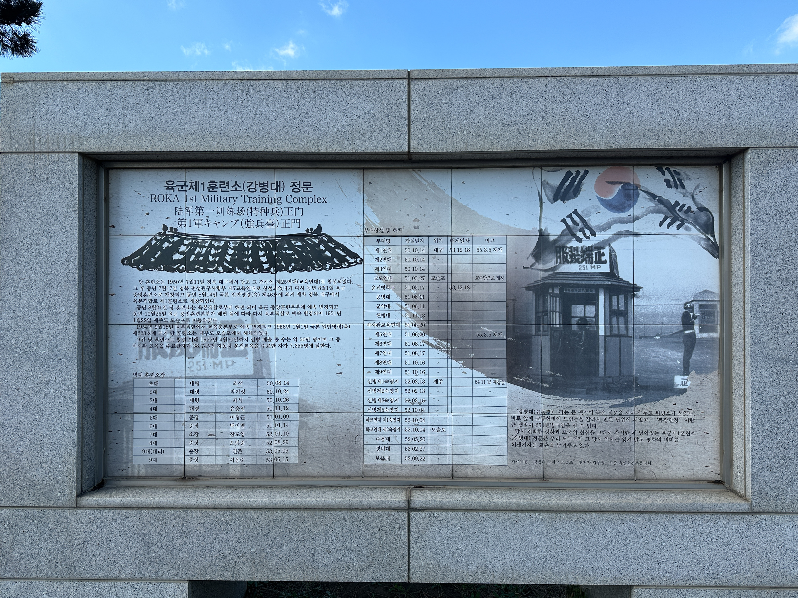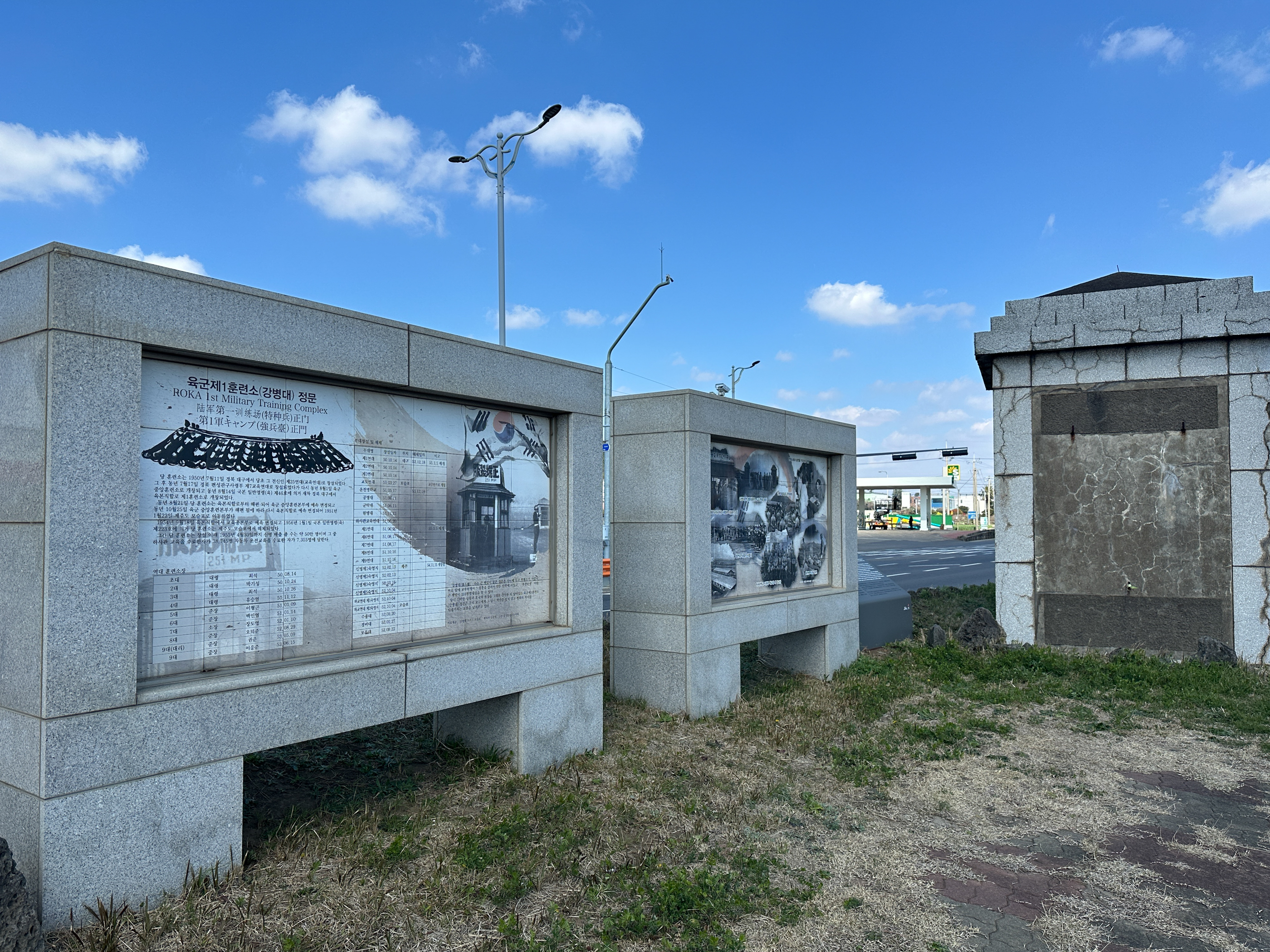 2. 6.25길 안내표지를 따라 가면 길 건너편으로 '舊 육군 제1훈련소 정문'으로 사용하던 기둥 이 보인다.