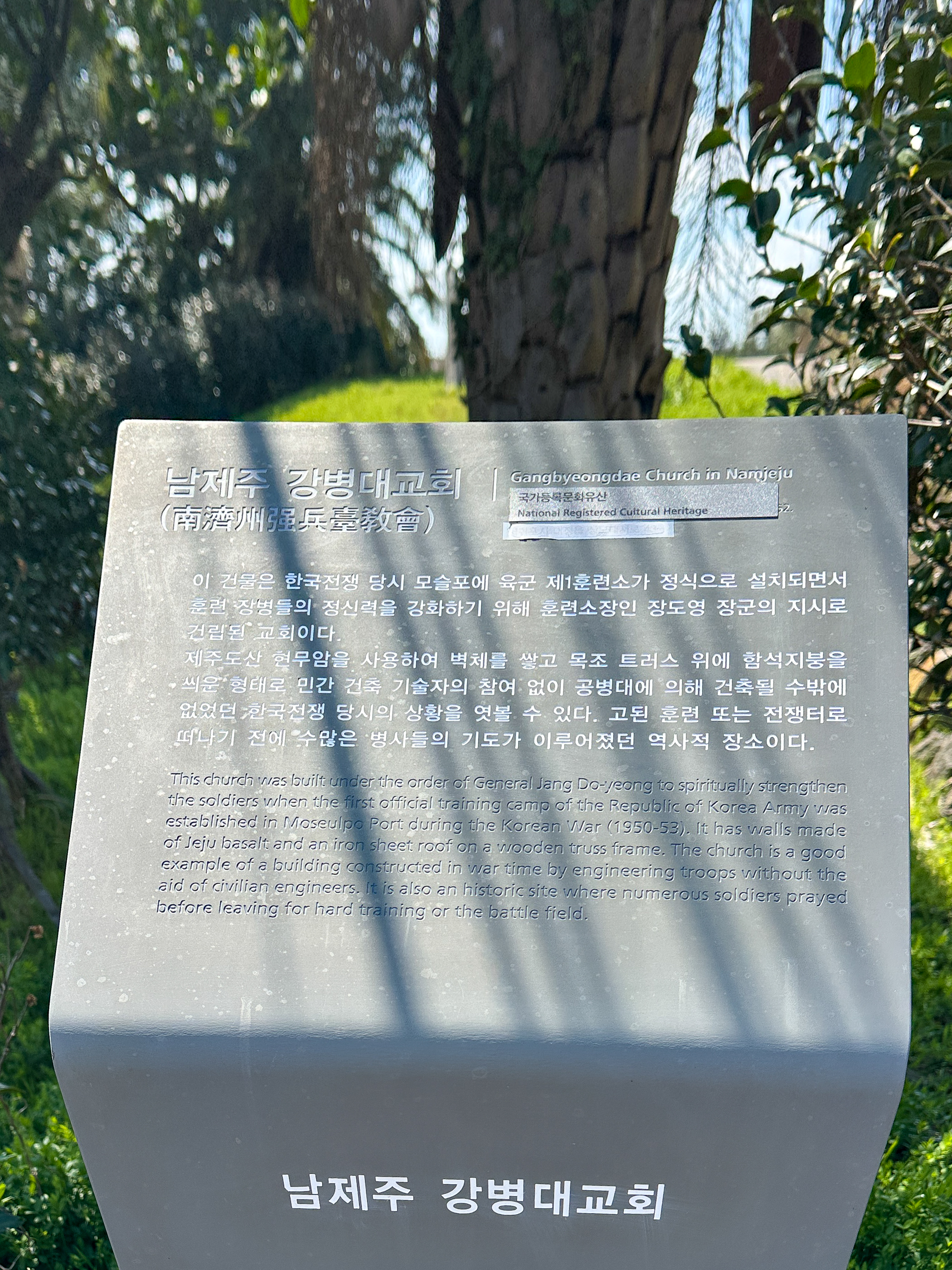 4. 호국관을 빠져 나와 다시 대정읍내 쪽으로 가다보면 우측으로 '강병대교회'가 있다.