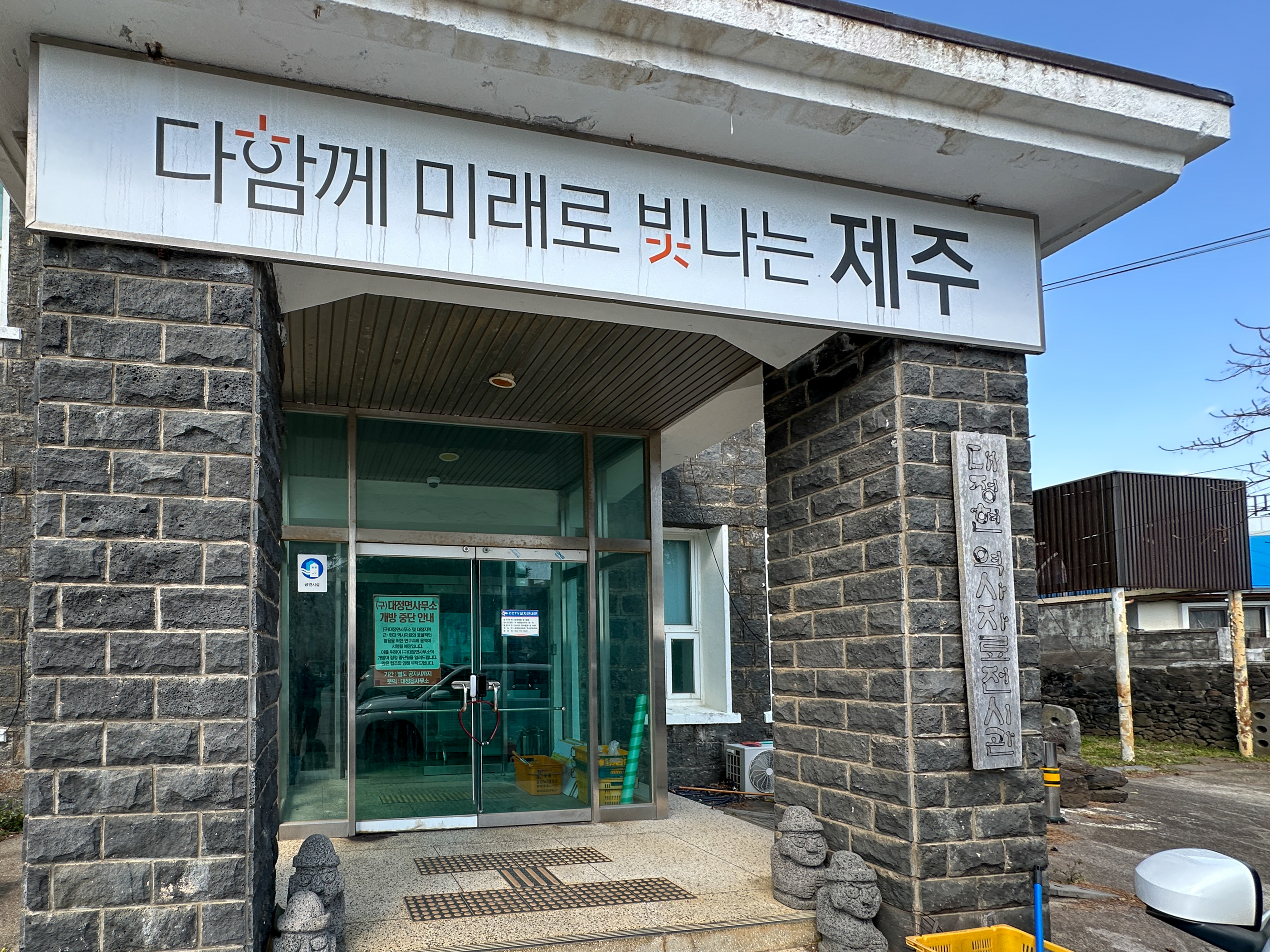 5. 강병대교회에서 읍내쪽으로 들어오면 우측으로 ' 舊 대정면 사무소'가 있다.