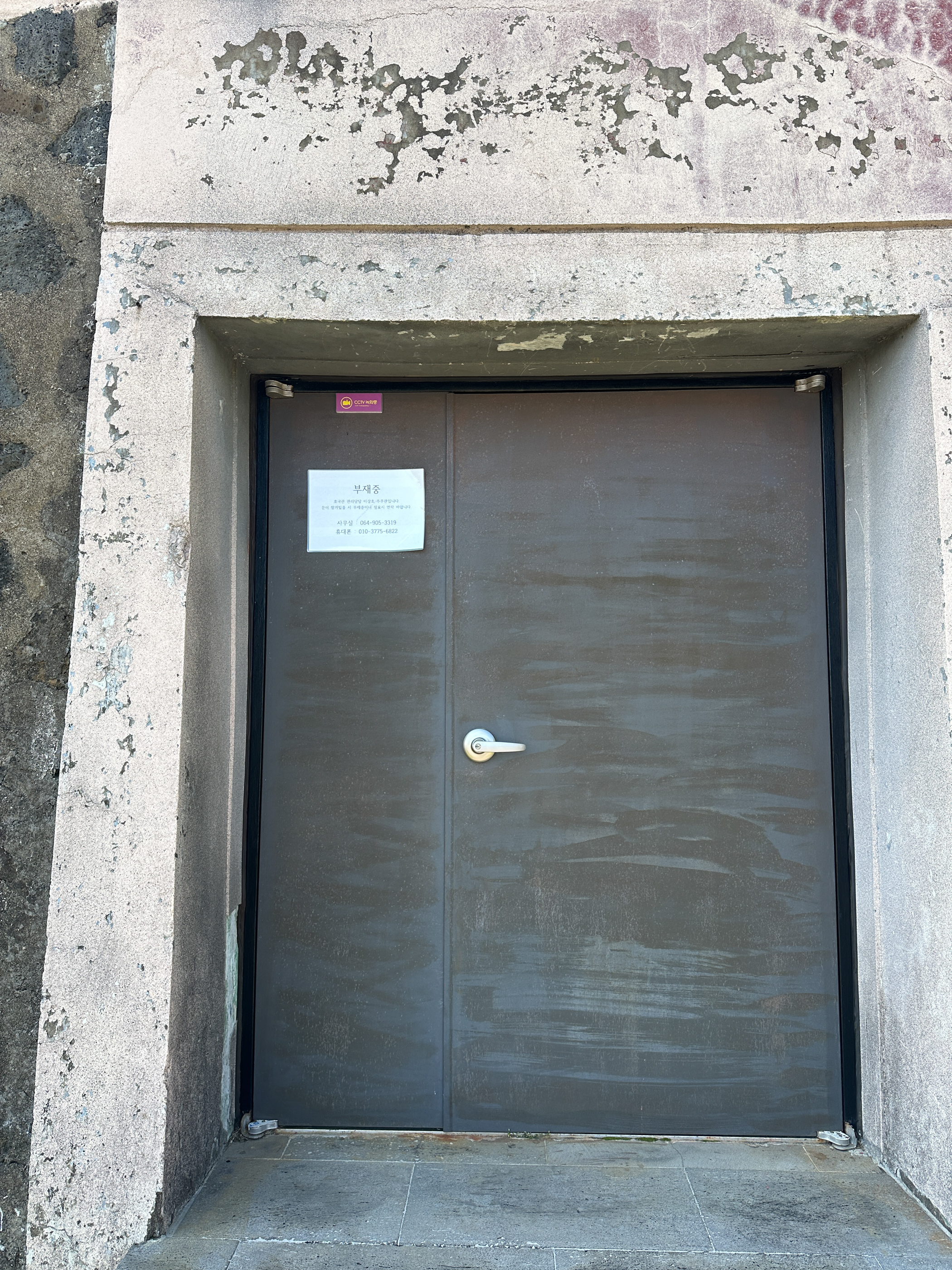 건물에 들어갈 수는 없다. 옆 출입구 유리 문을 통해 내부 현황판을 찍었다.