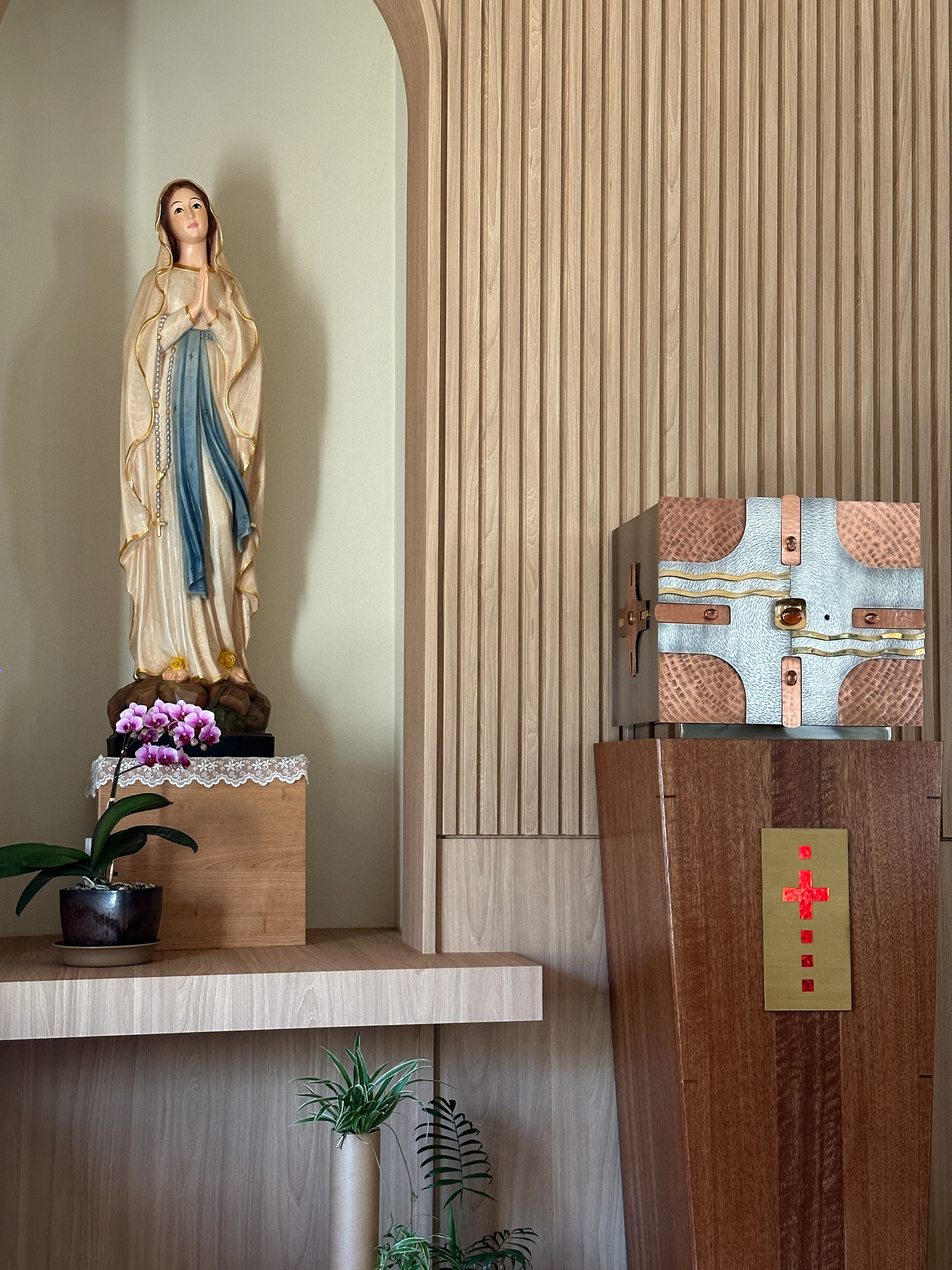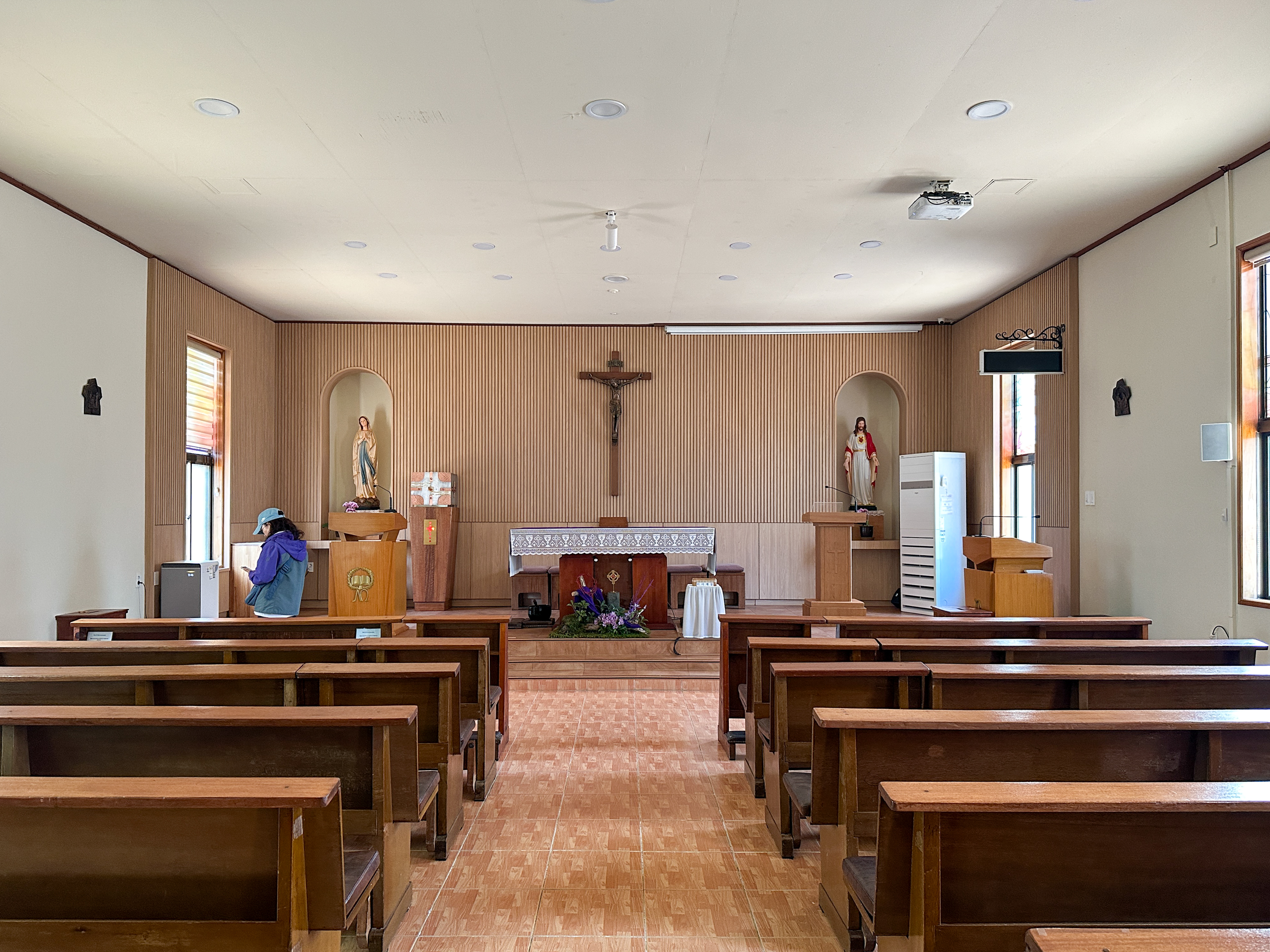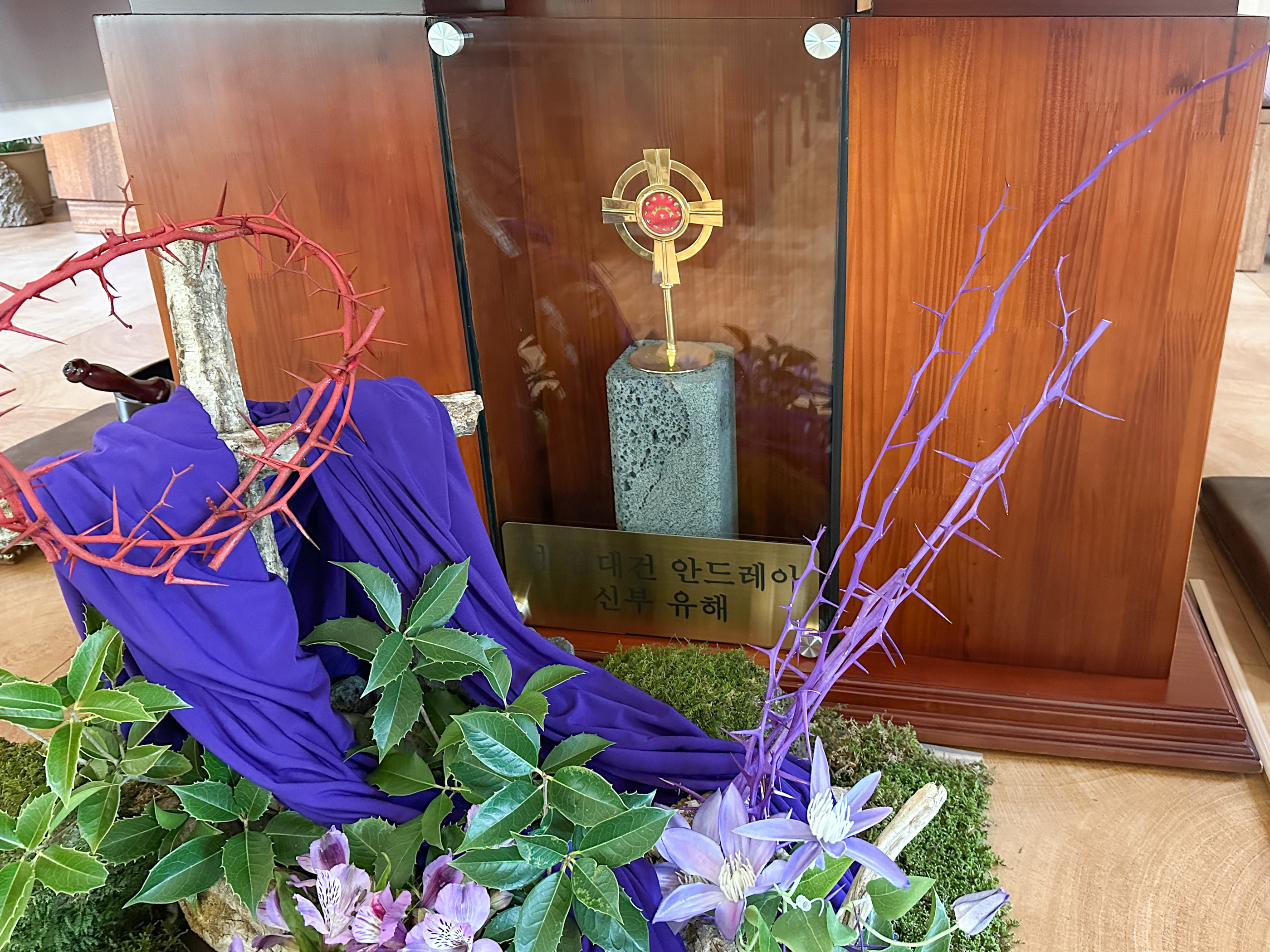 제대 앞에 김대건신부님의 유해가 모셔져 있다. 오랜된 성당도 아닌데 이외였다.