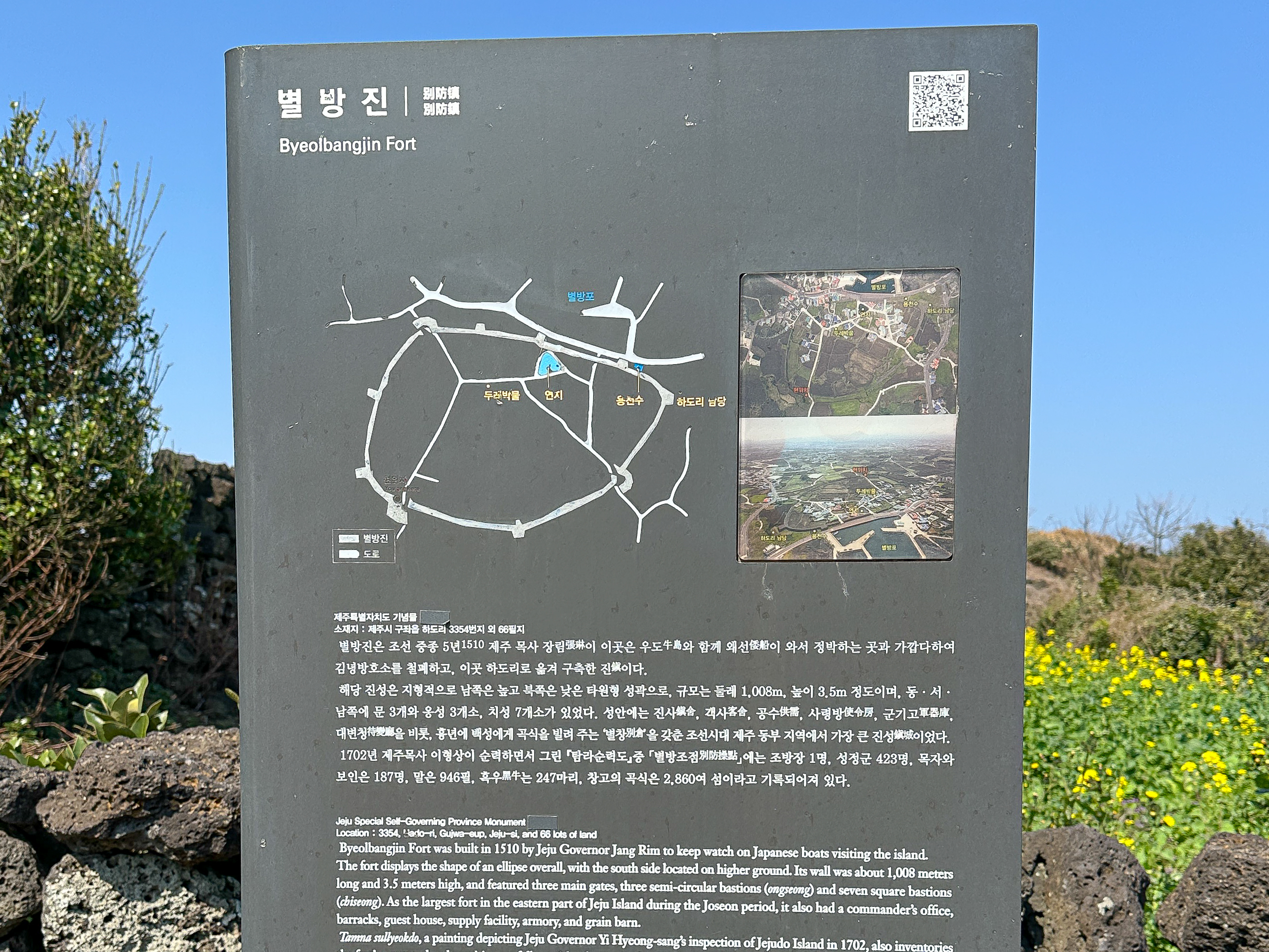 '별방진'을 통과 한다. 하도리에 구축한 별방진은 조선시대 제주 동부지역에서 가장 큰 진성(鎭城)이었다.