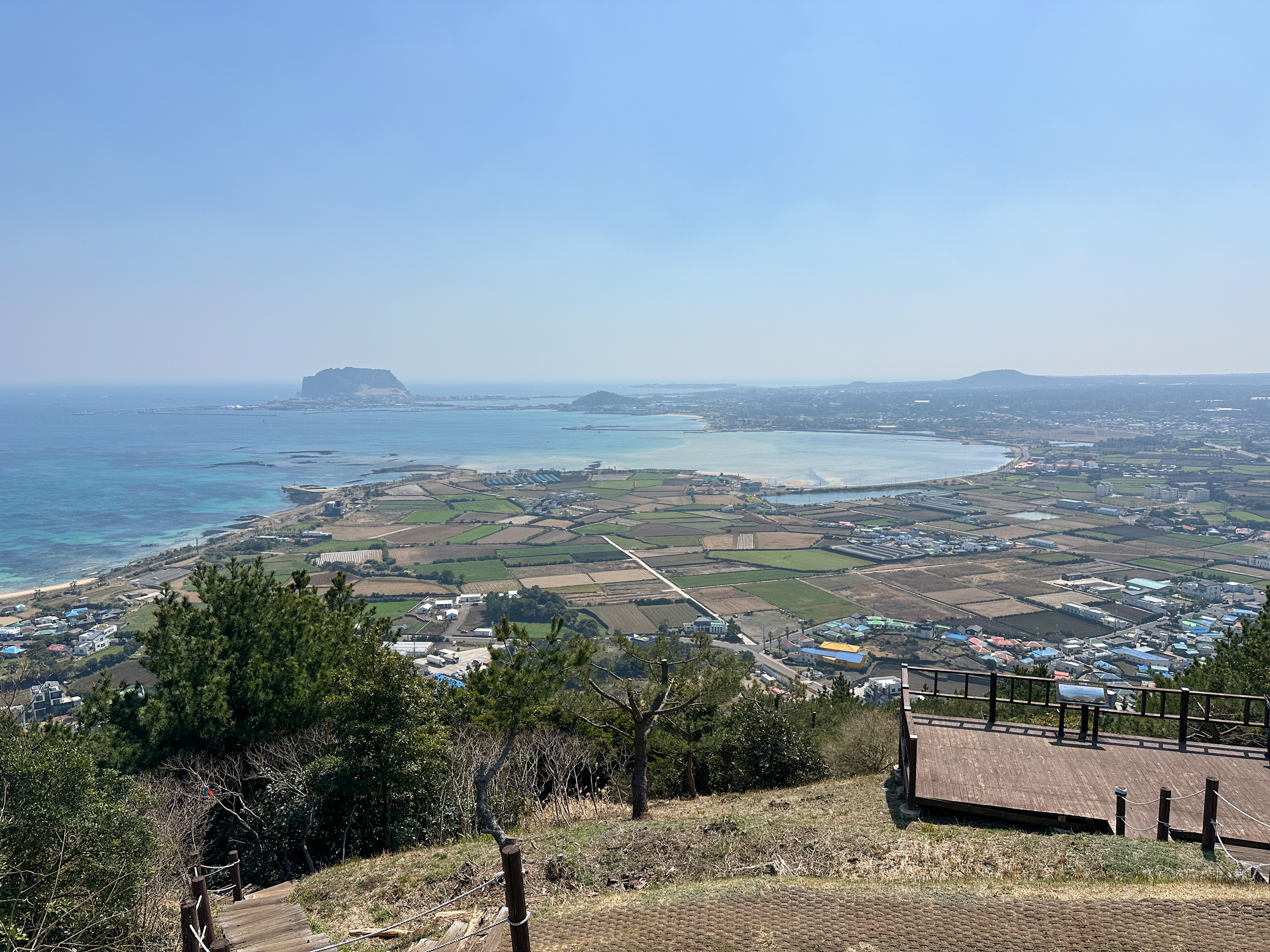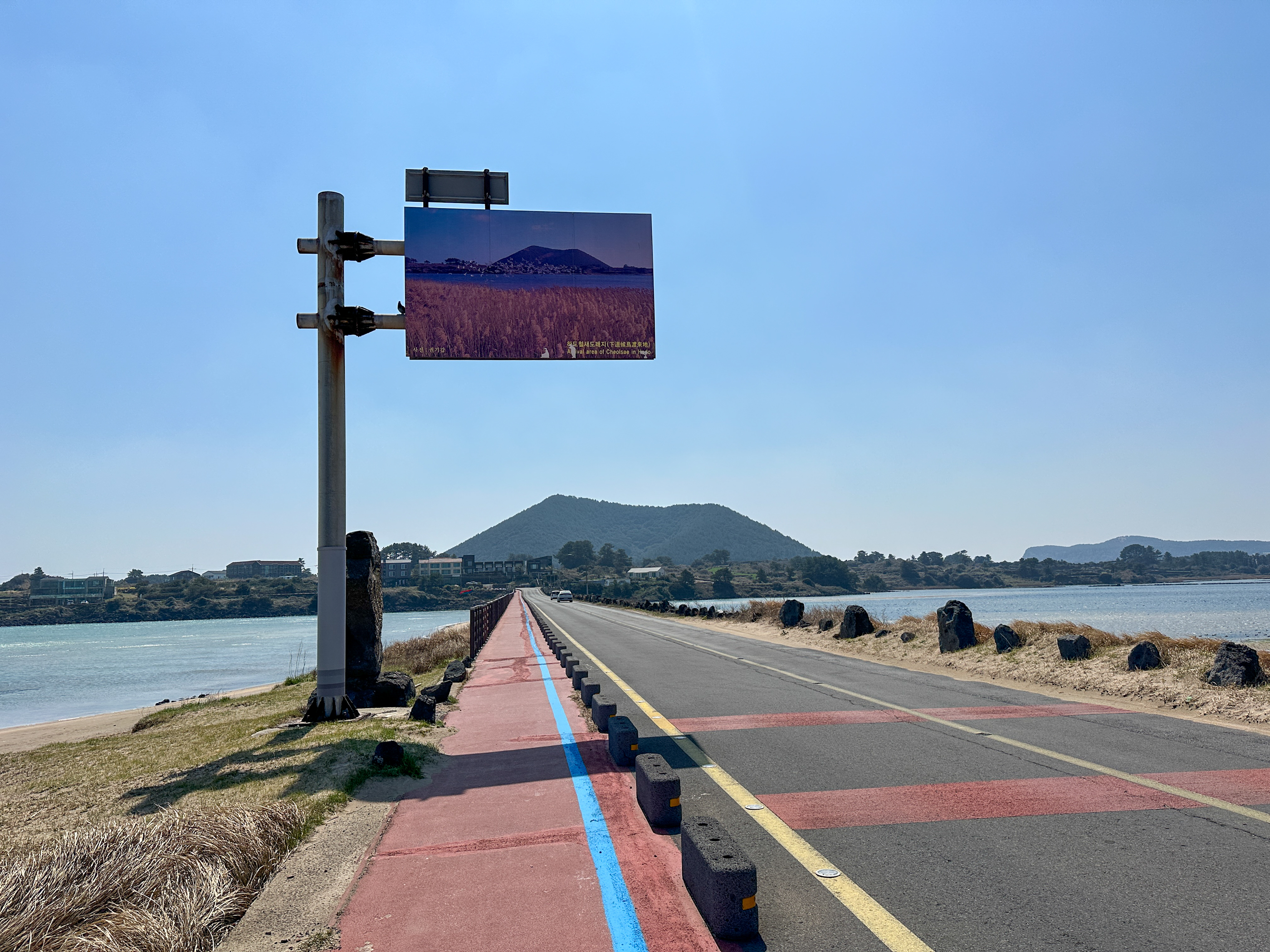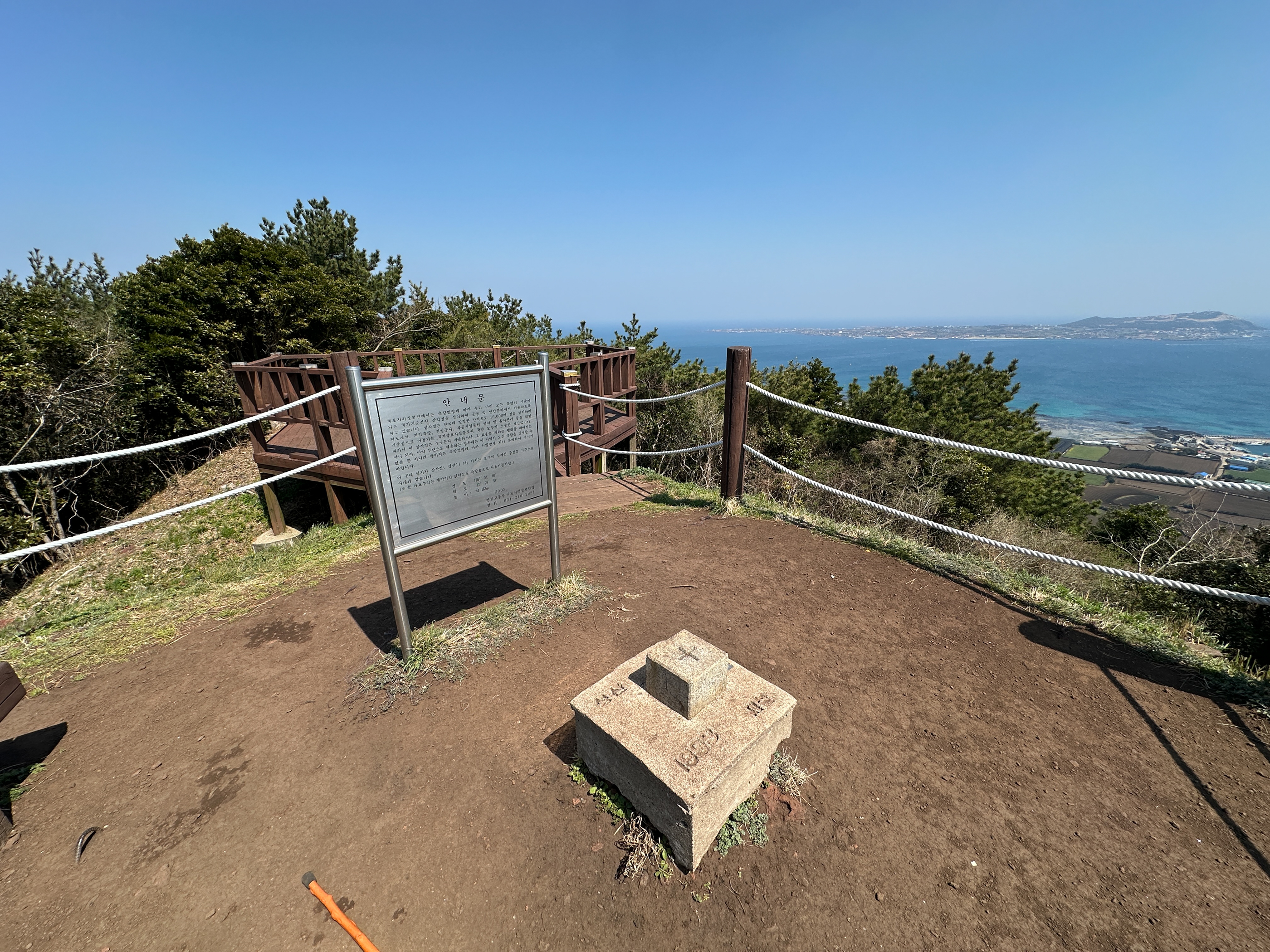 멀리 지미봉 정상이 보인다. '당근 조형물' , 역시 구좌읍이다.