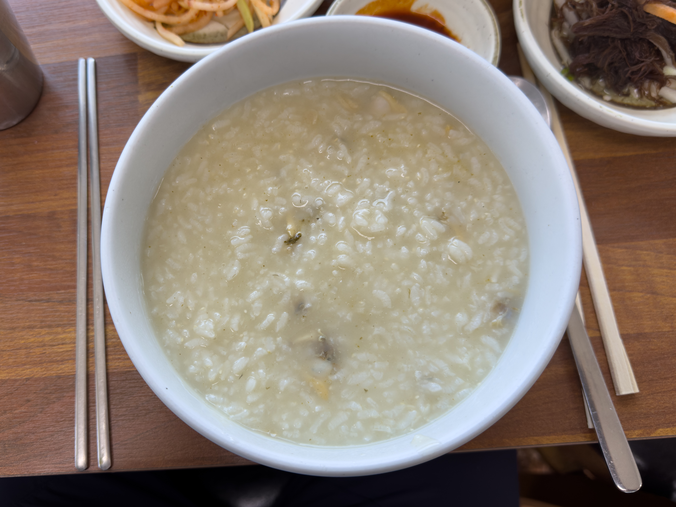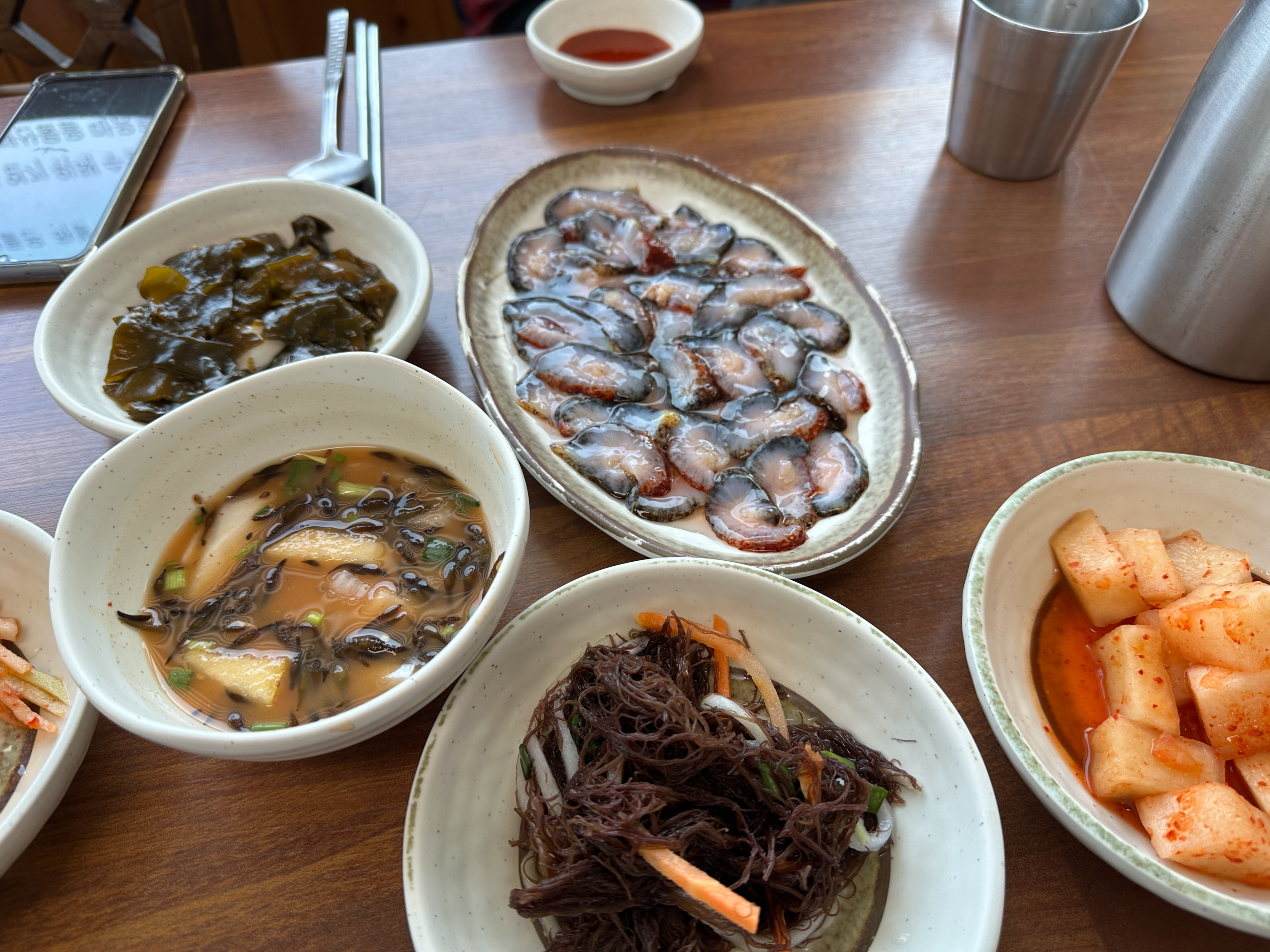 홍해삼 1접시와 조개죽, 가성비 좋은 식당이다. 주차장도 넓다.