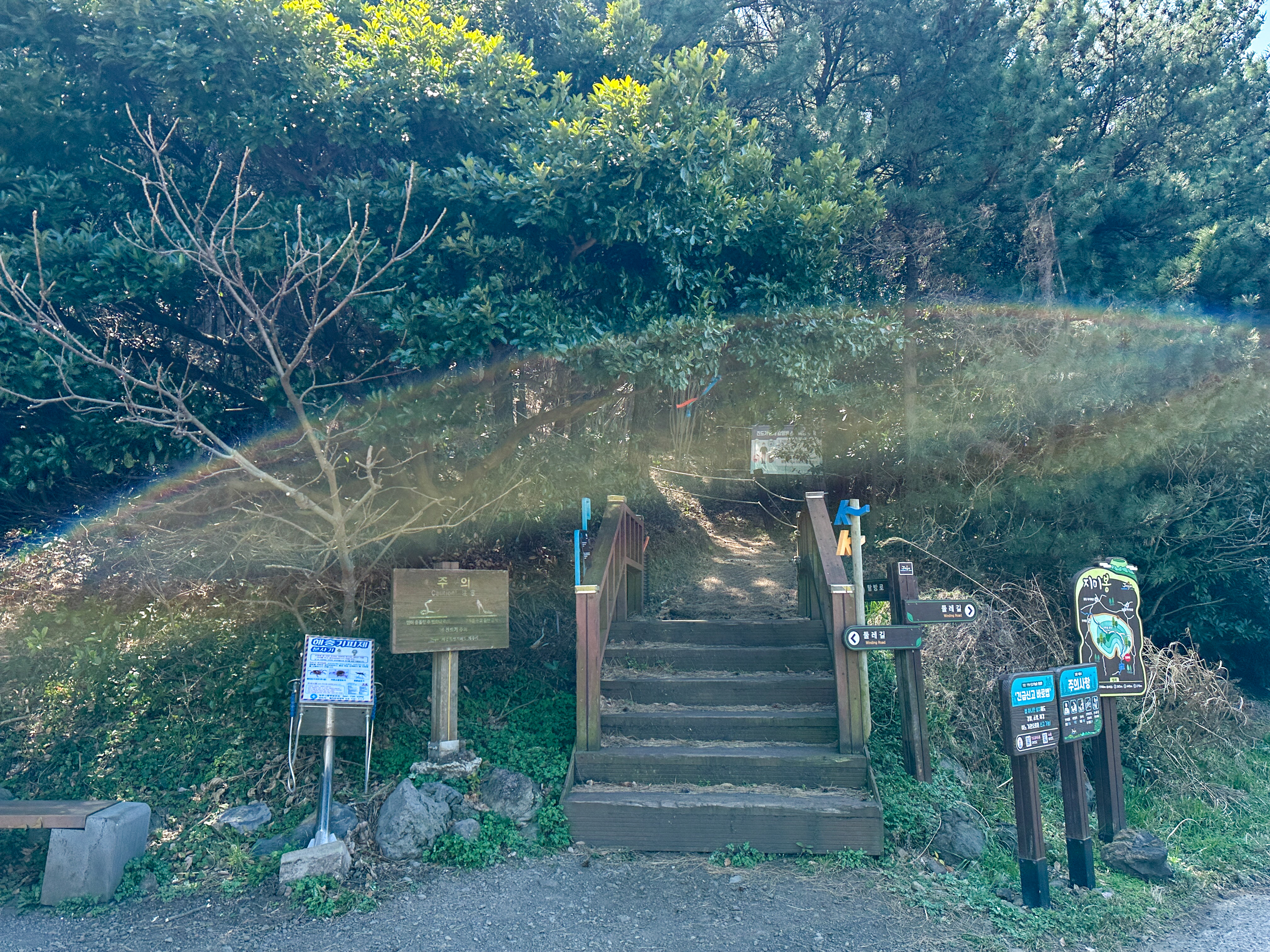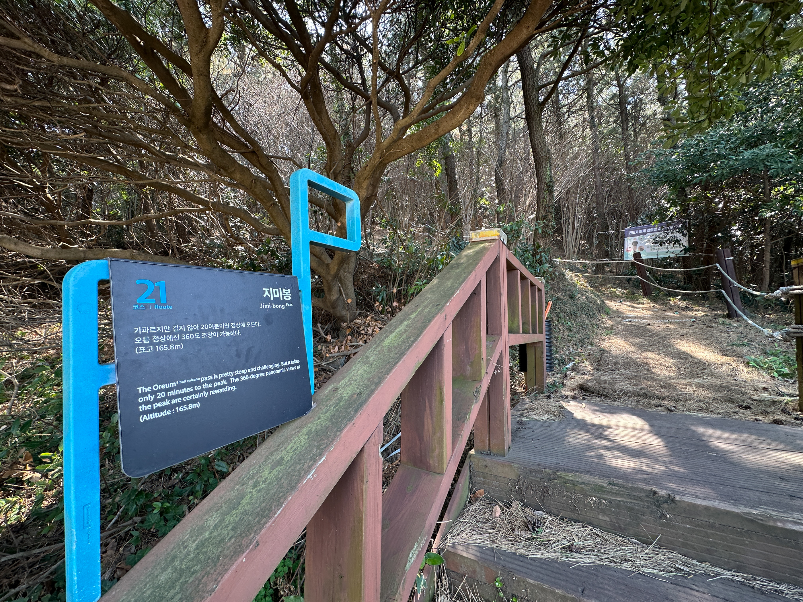 지미봉 주차장 맞은편 숲 길로 접어든다.